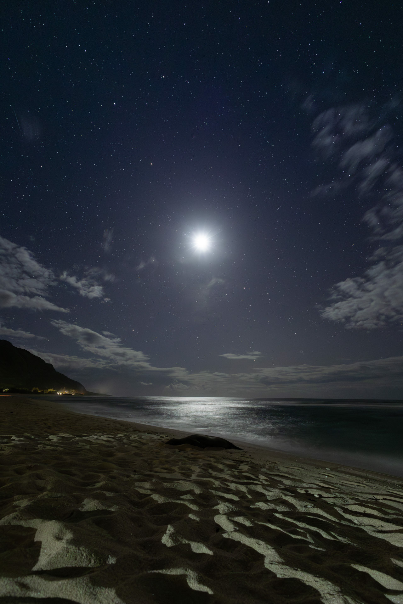 Hawaiian Monk Seal Resting Under Moonlight. Canon R8 - 8 secs - f/4.5 - ISO 1600 - RF 16mm f/2.8