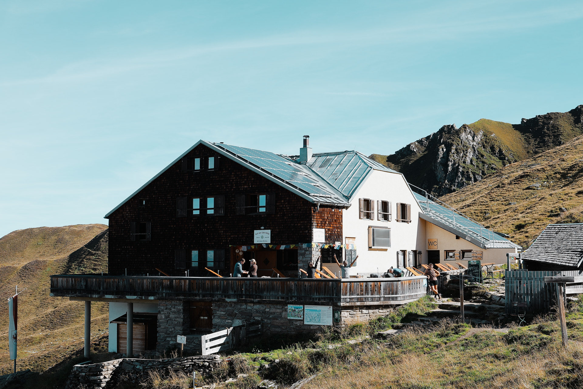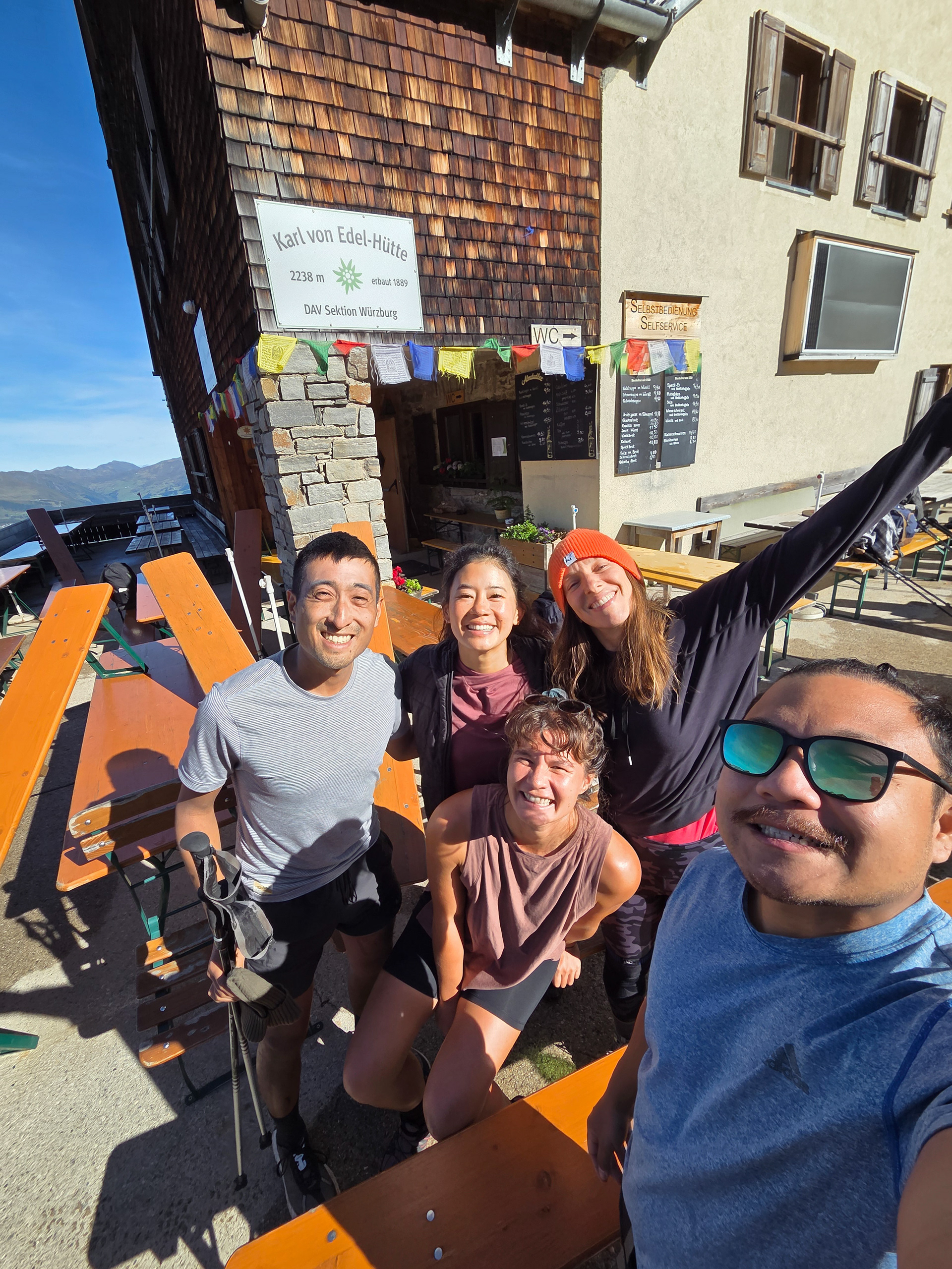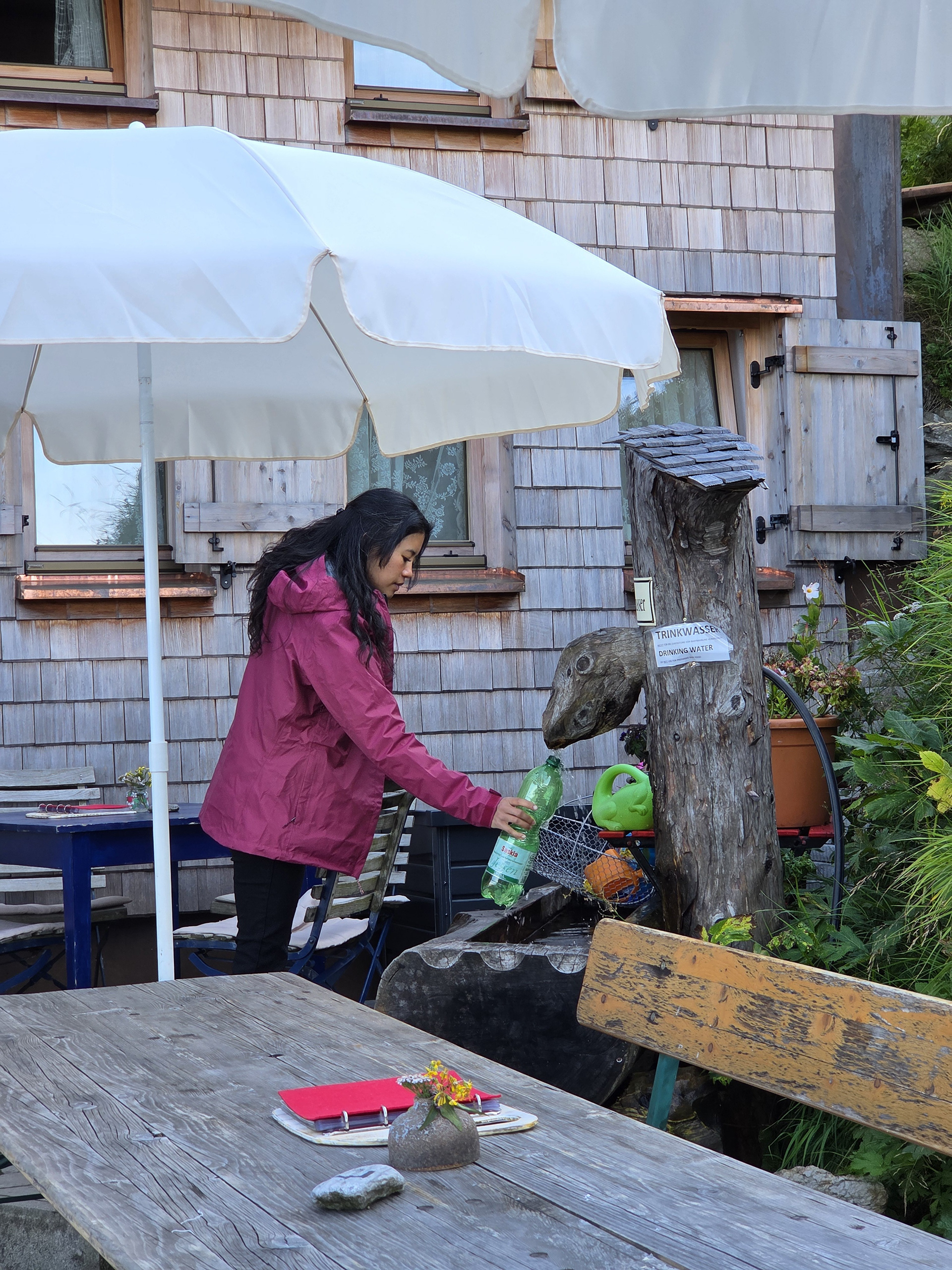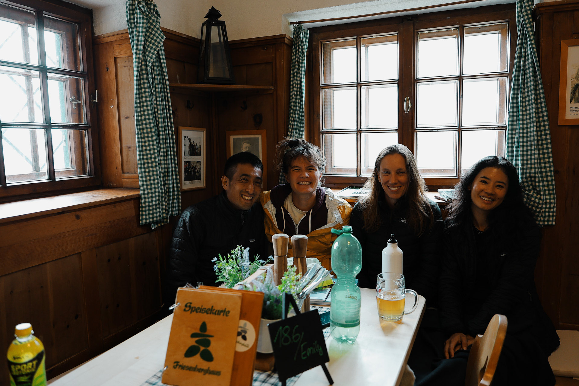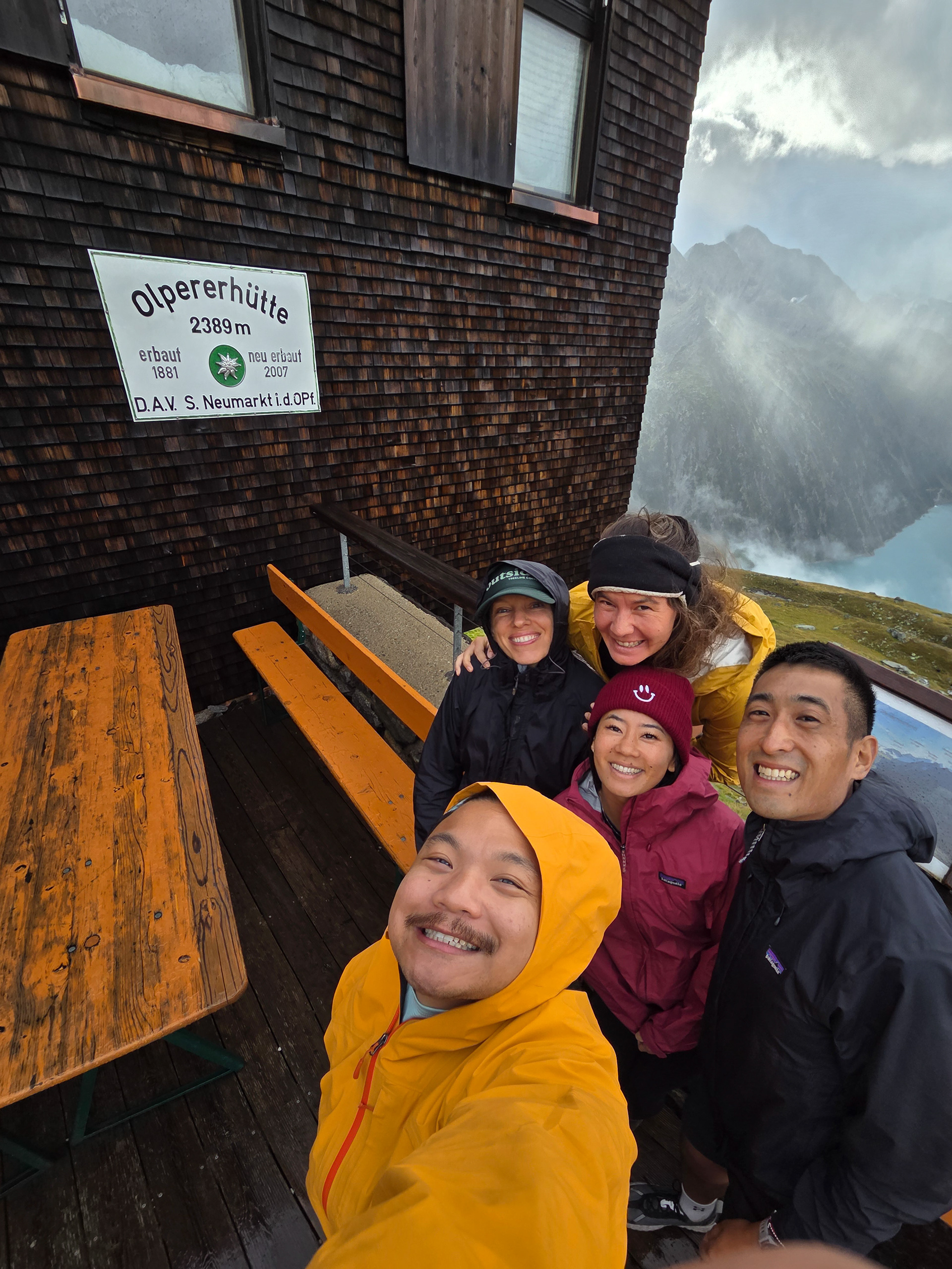 Friesenberghaus has some outdoor seating. When we arrived, it was still sunny and people were hanging outside. By the time, we wanted to hang out on the deck, it had started drizzling and the tables emptied.