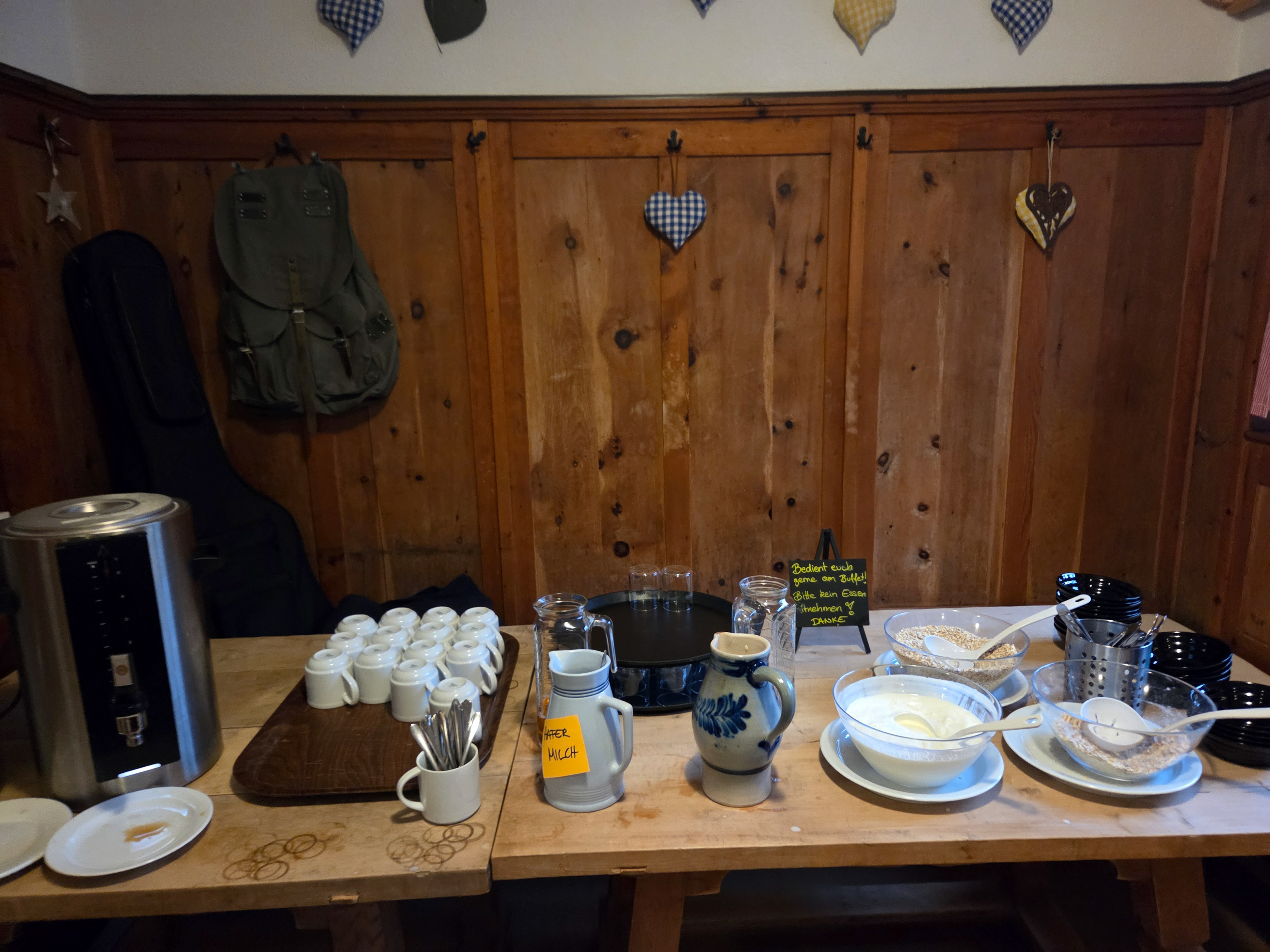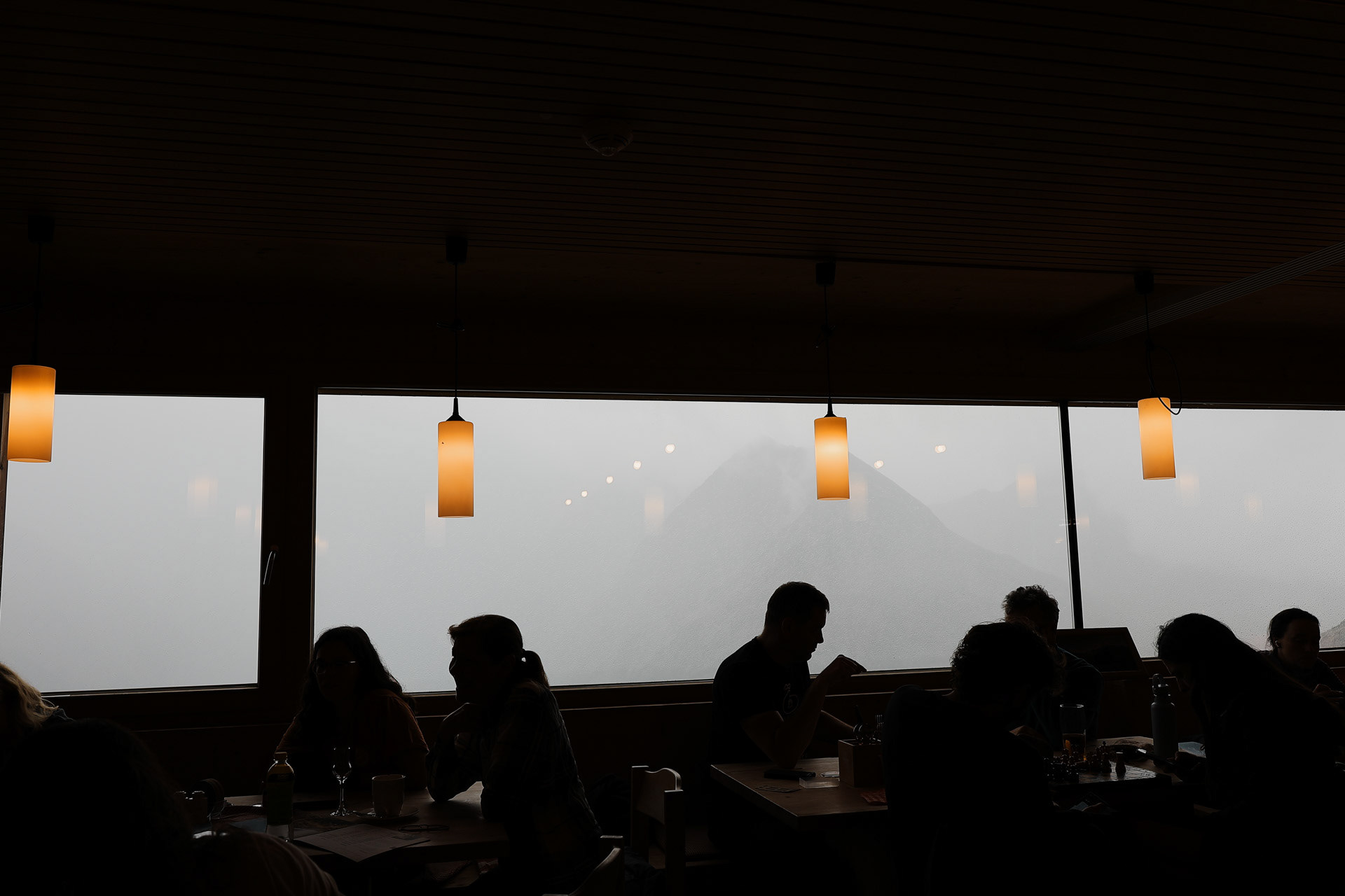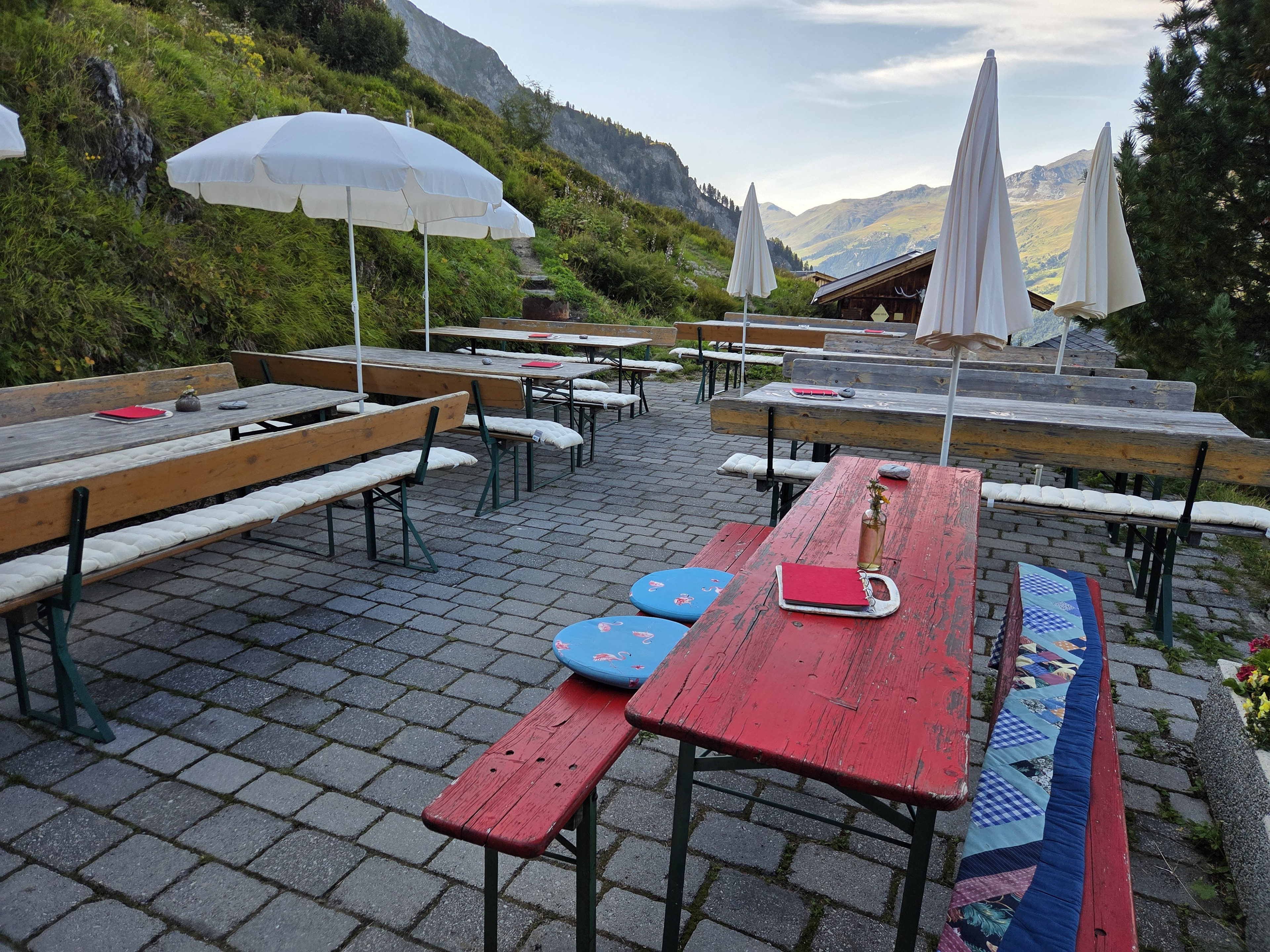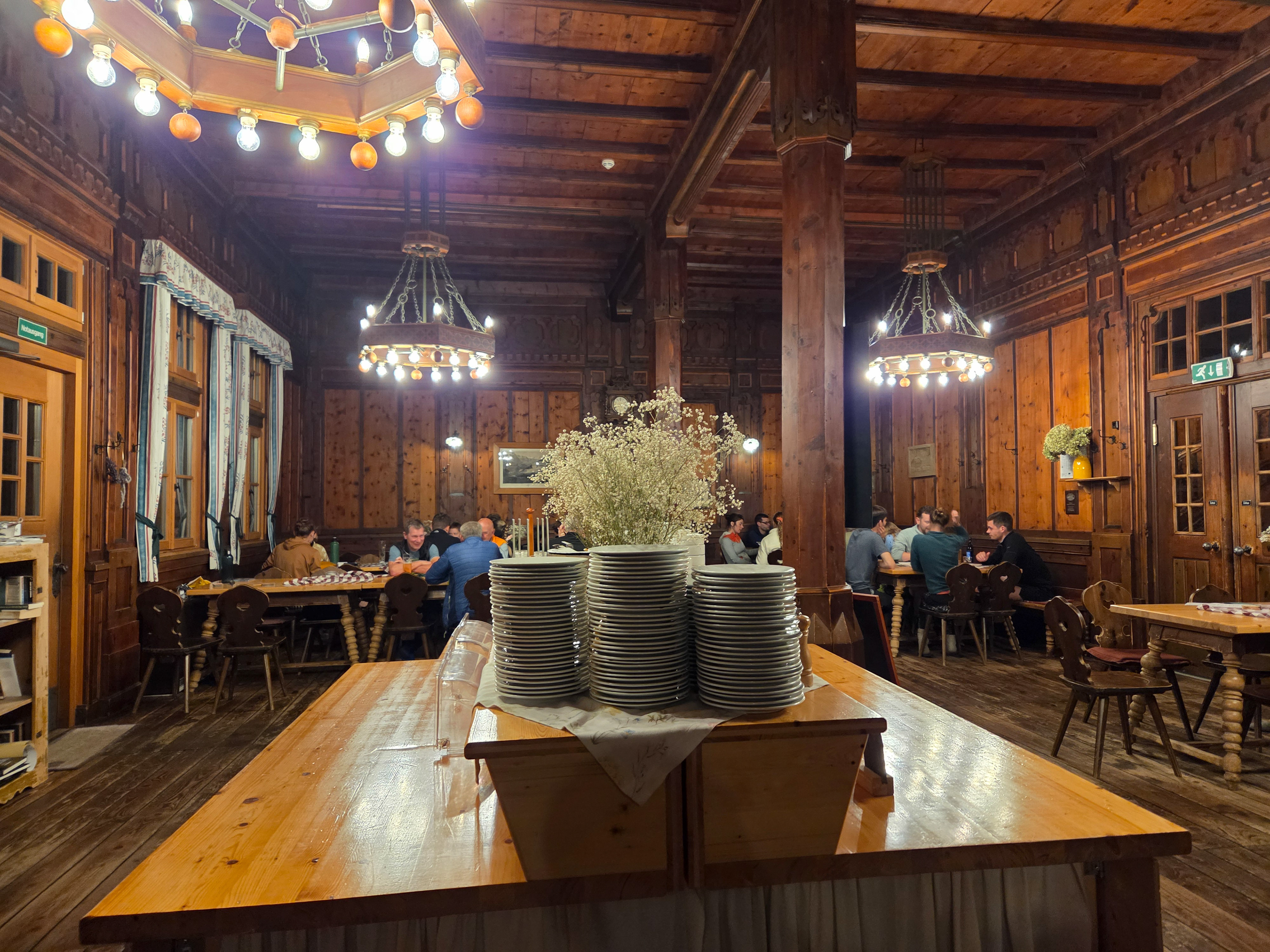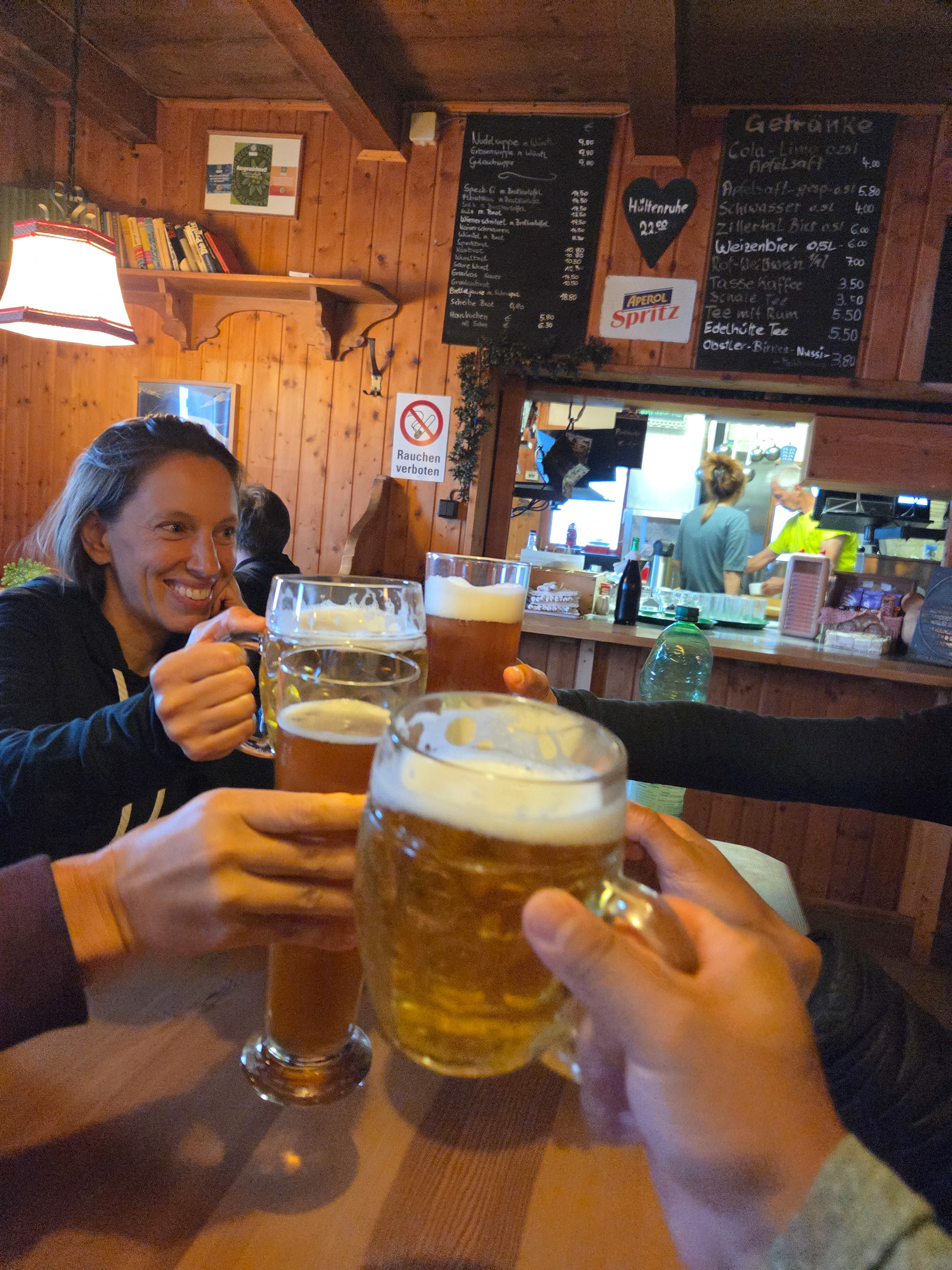 Friesenberghaus has some outdoor seating. When we arrived, it was still sunny and people were hanging outside. By the time, we wanted to hang out on the deck, it had started drizzling and the tables emptied.