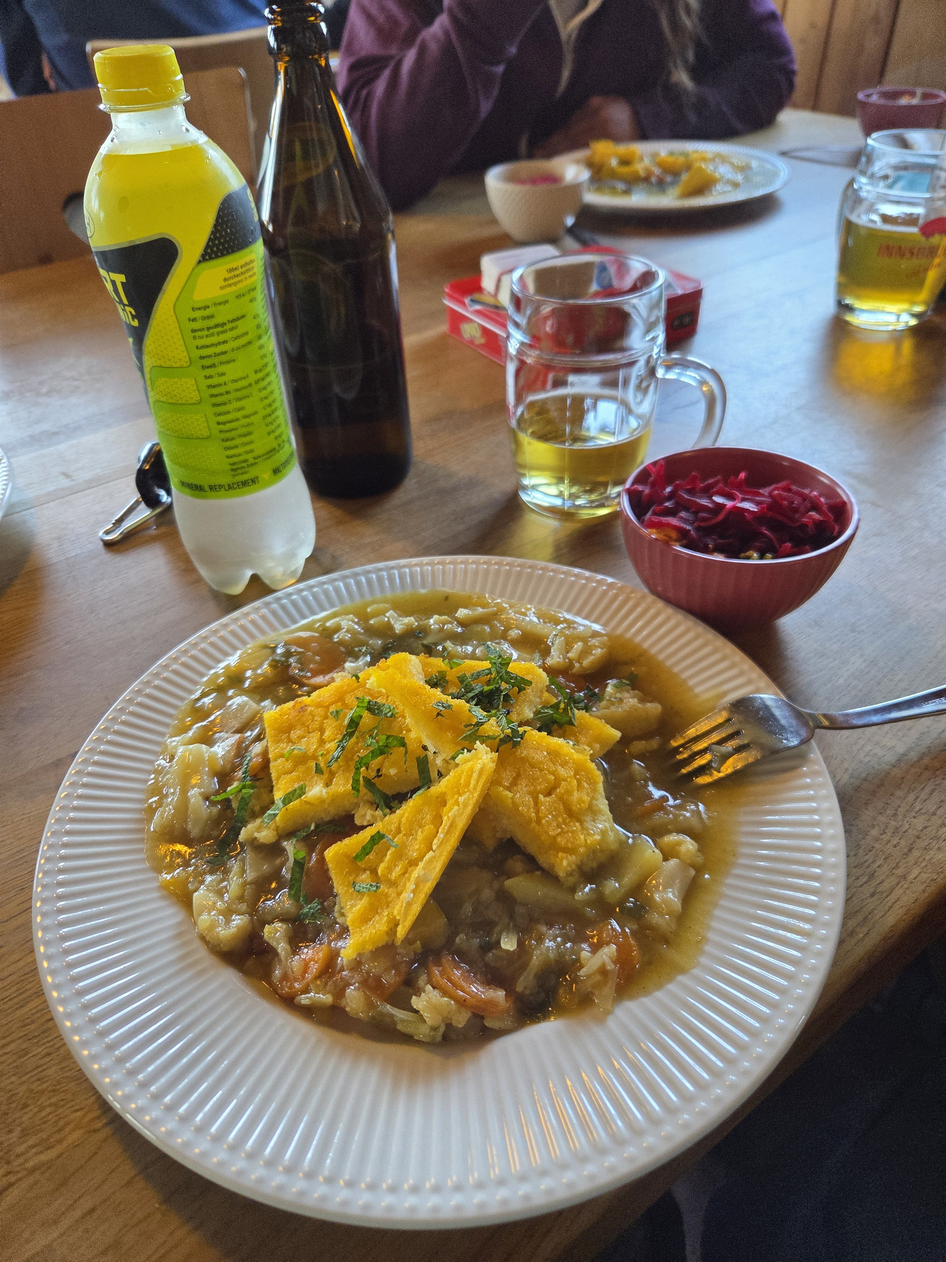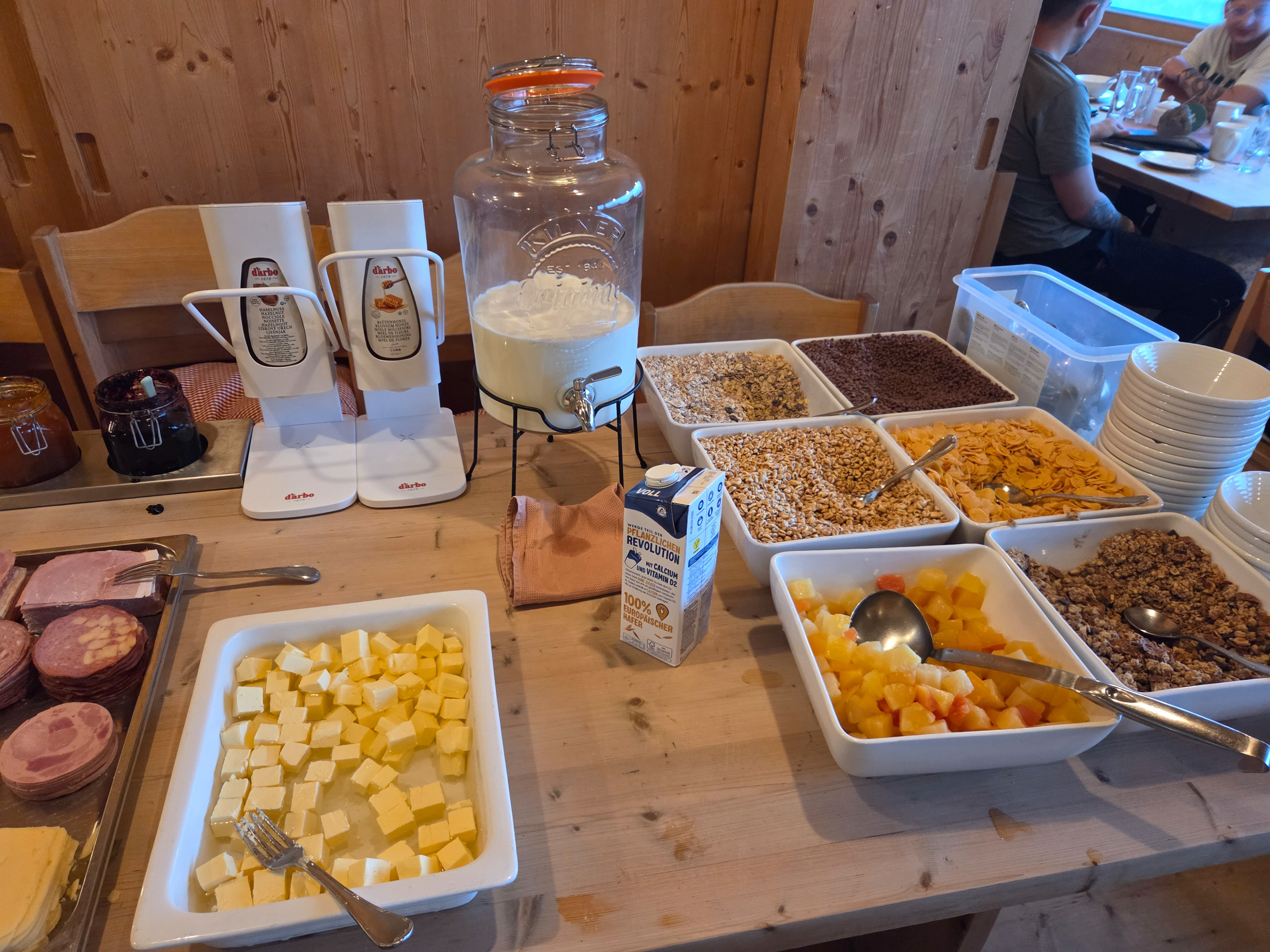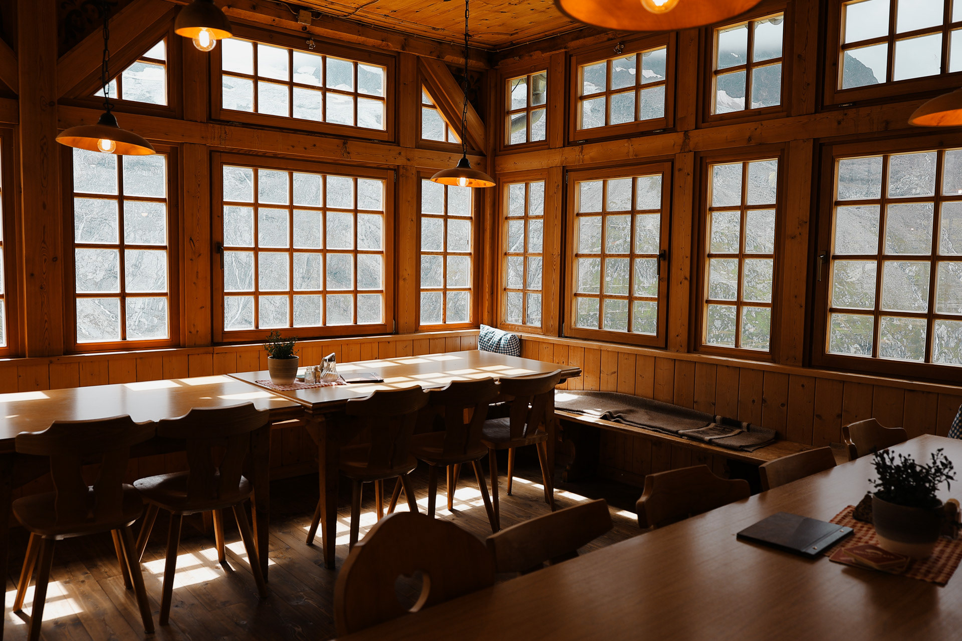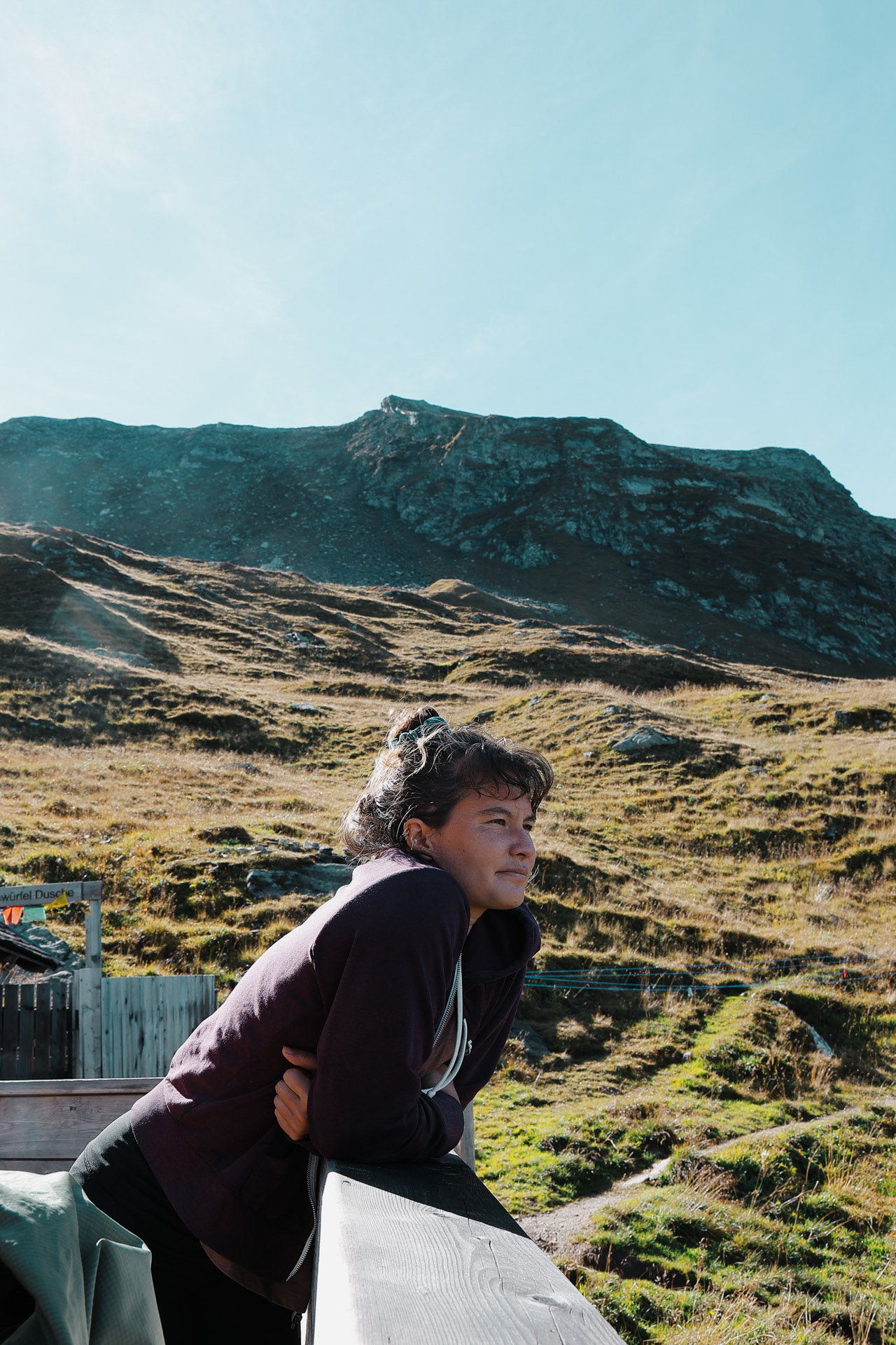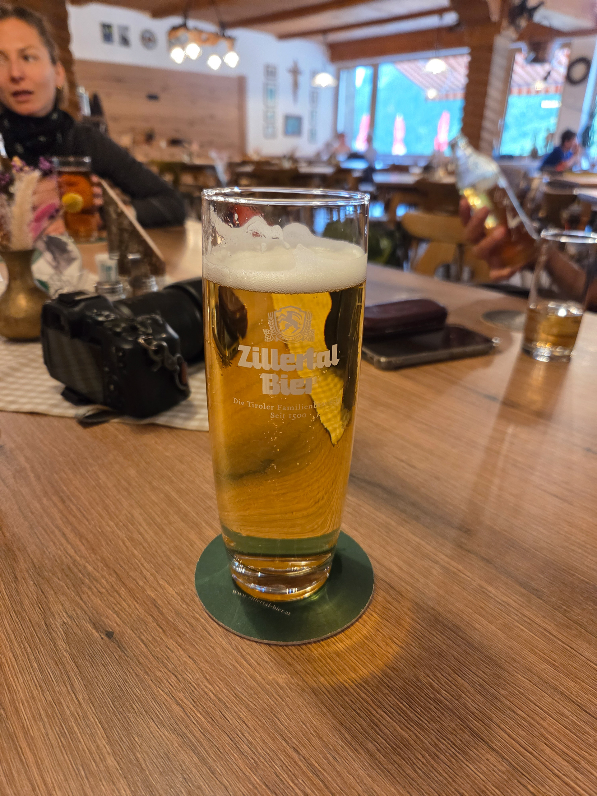 Friesenberghaus has some outdoor seating. When we arrived, it was still sunny and people were hanging outside. By the time, we wanted to hang out on the deck, it had started drizzling and the tables emptied.