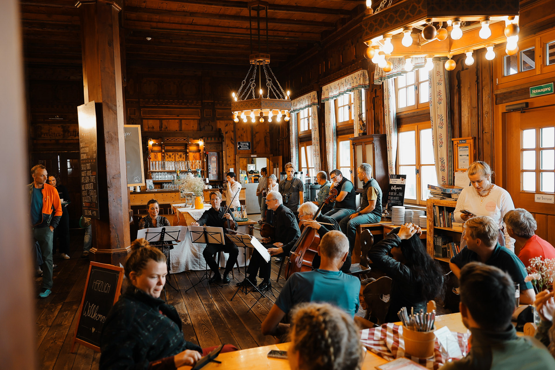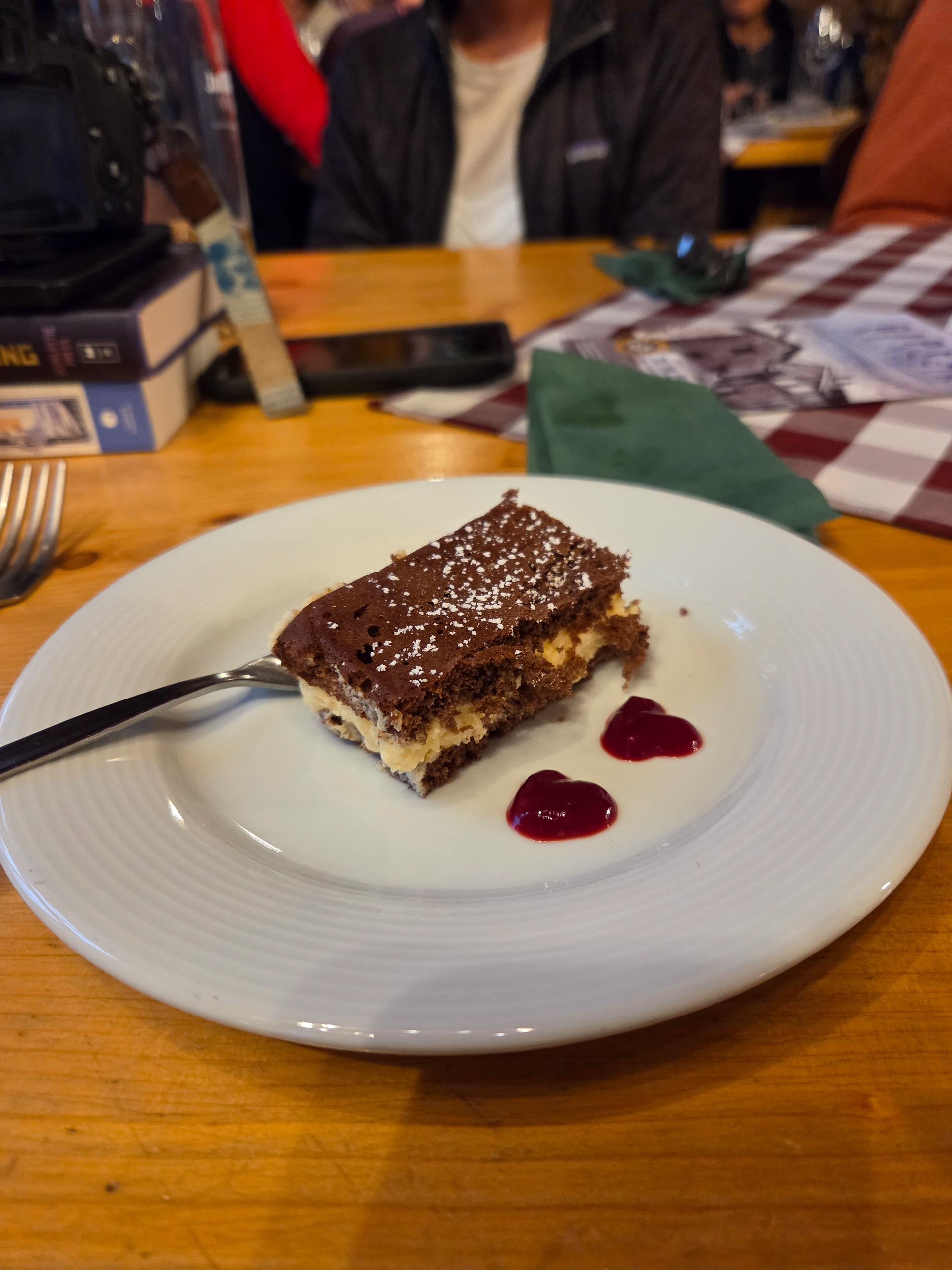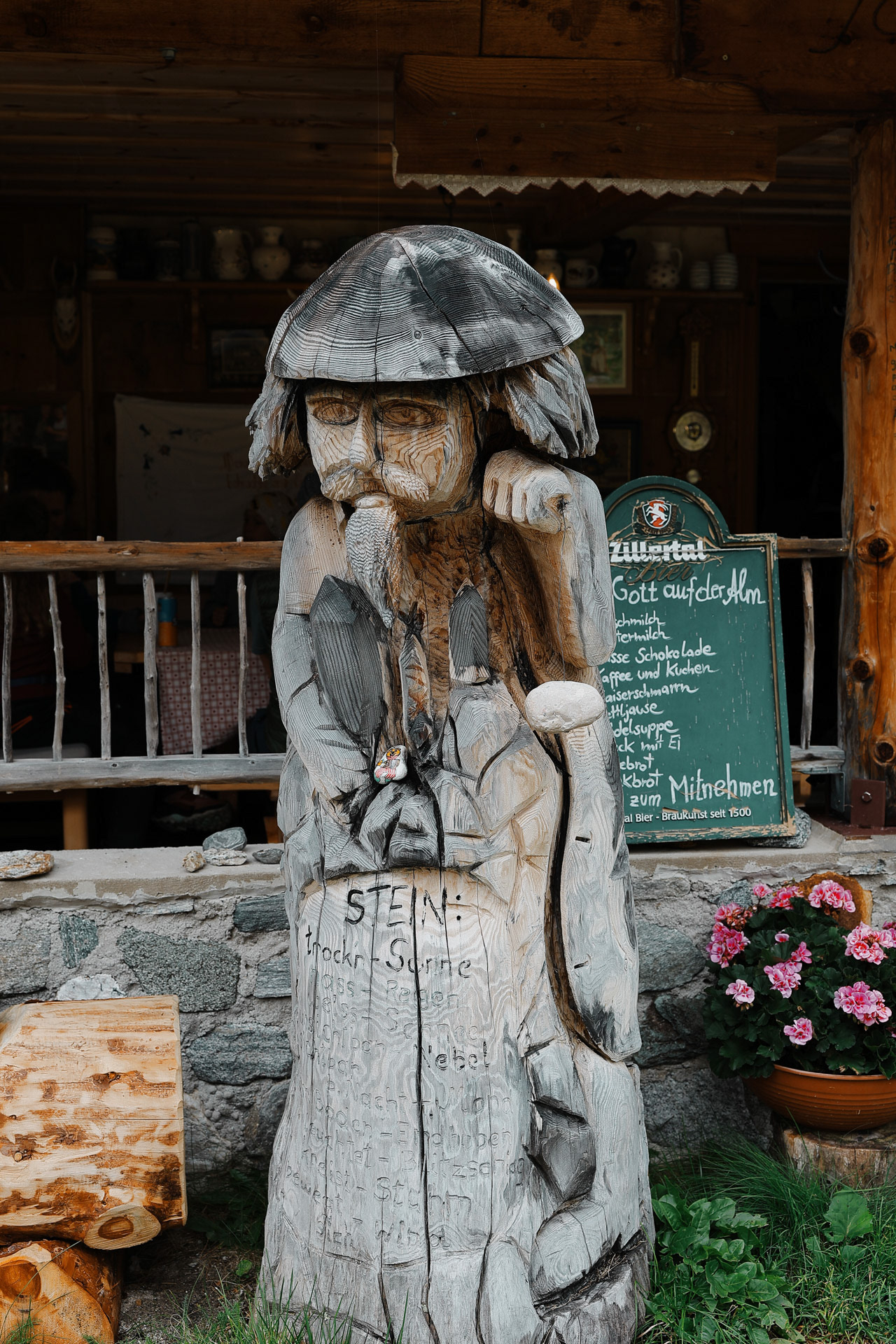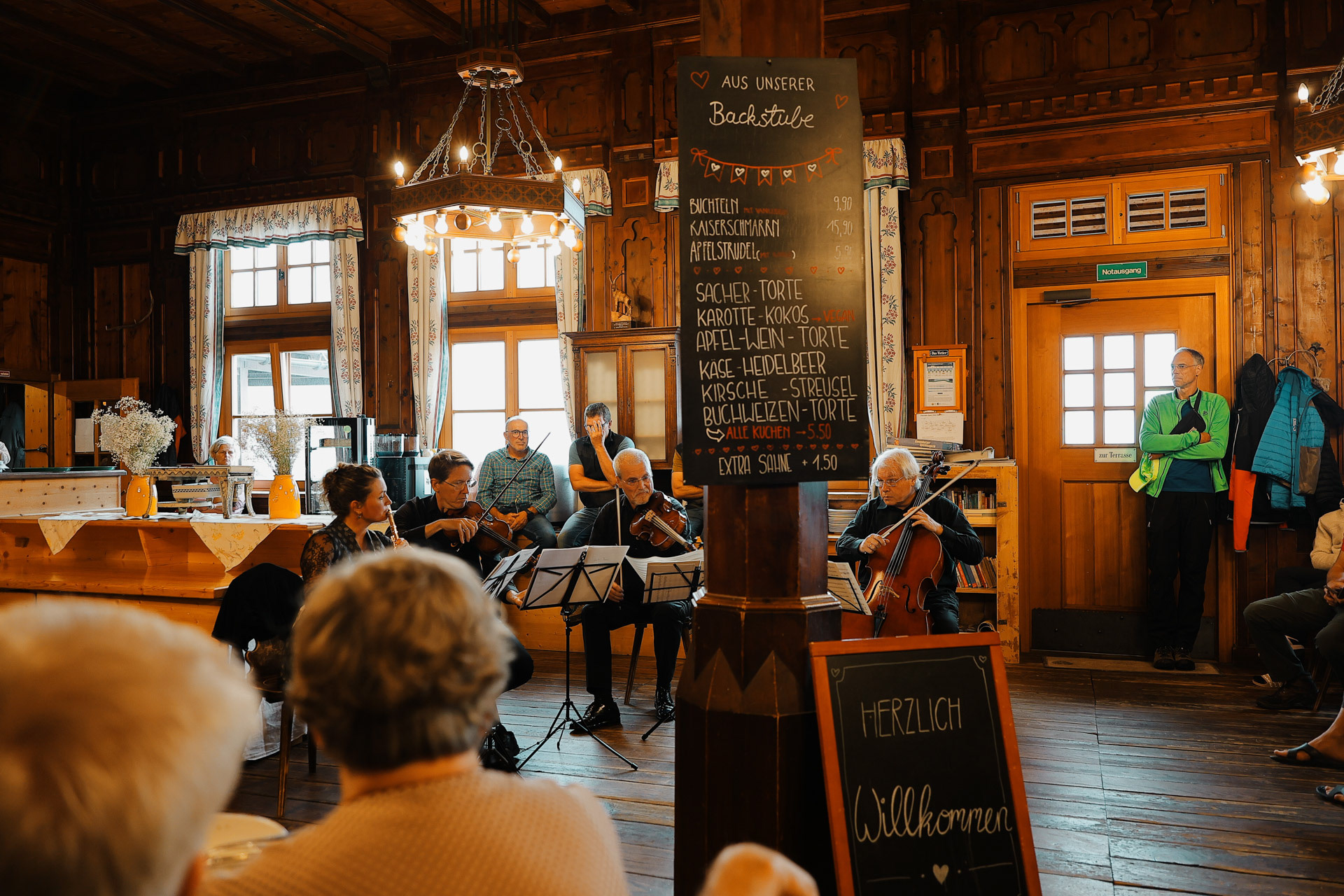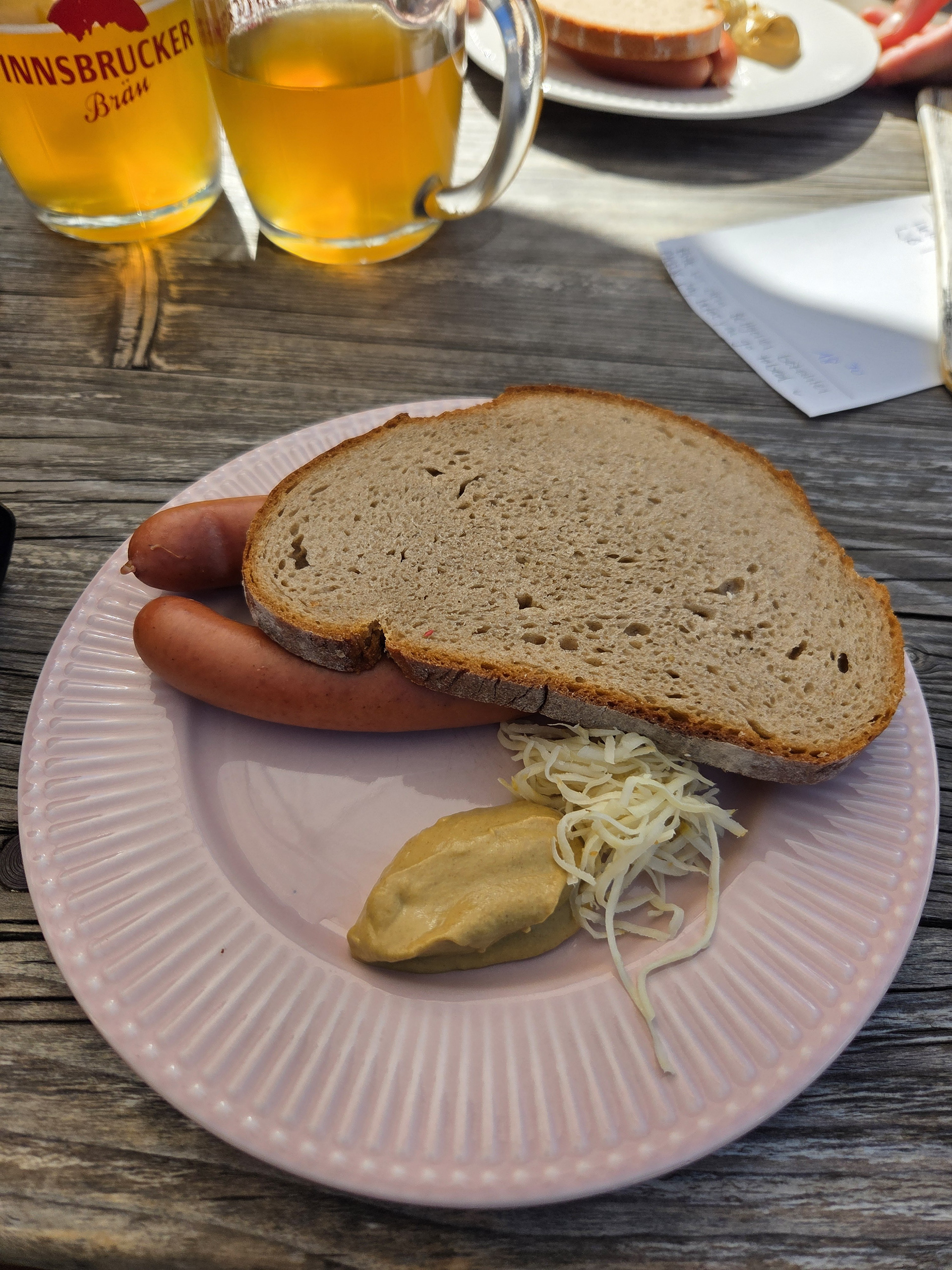 Friesenberghaus has some outdoor seating. When we arrived, it was still sunny and people were hanging outside. By the time, we wanted to hang out on the deck, it had started drizzling and the tables emptied.