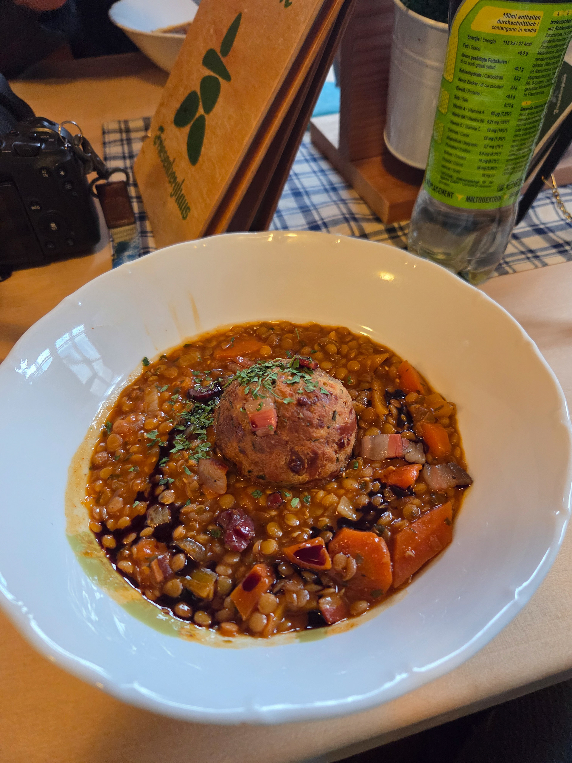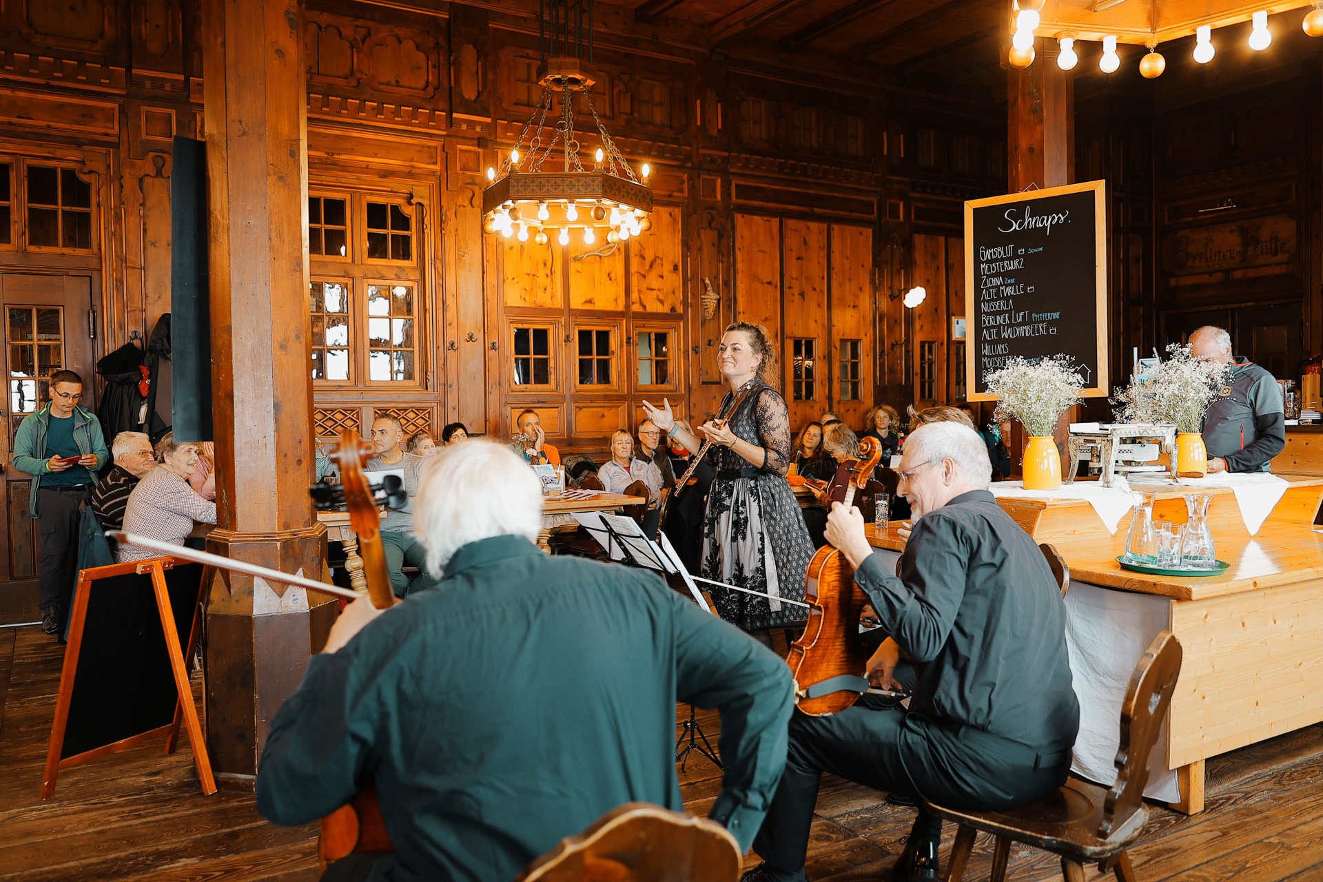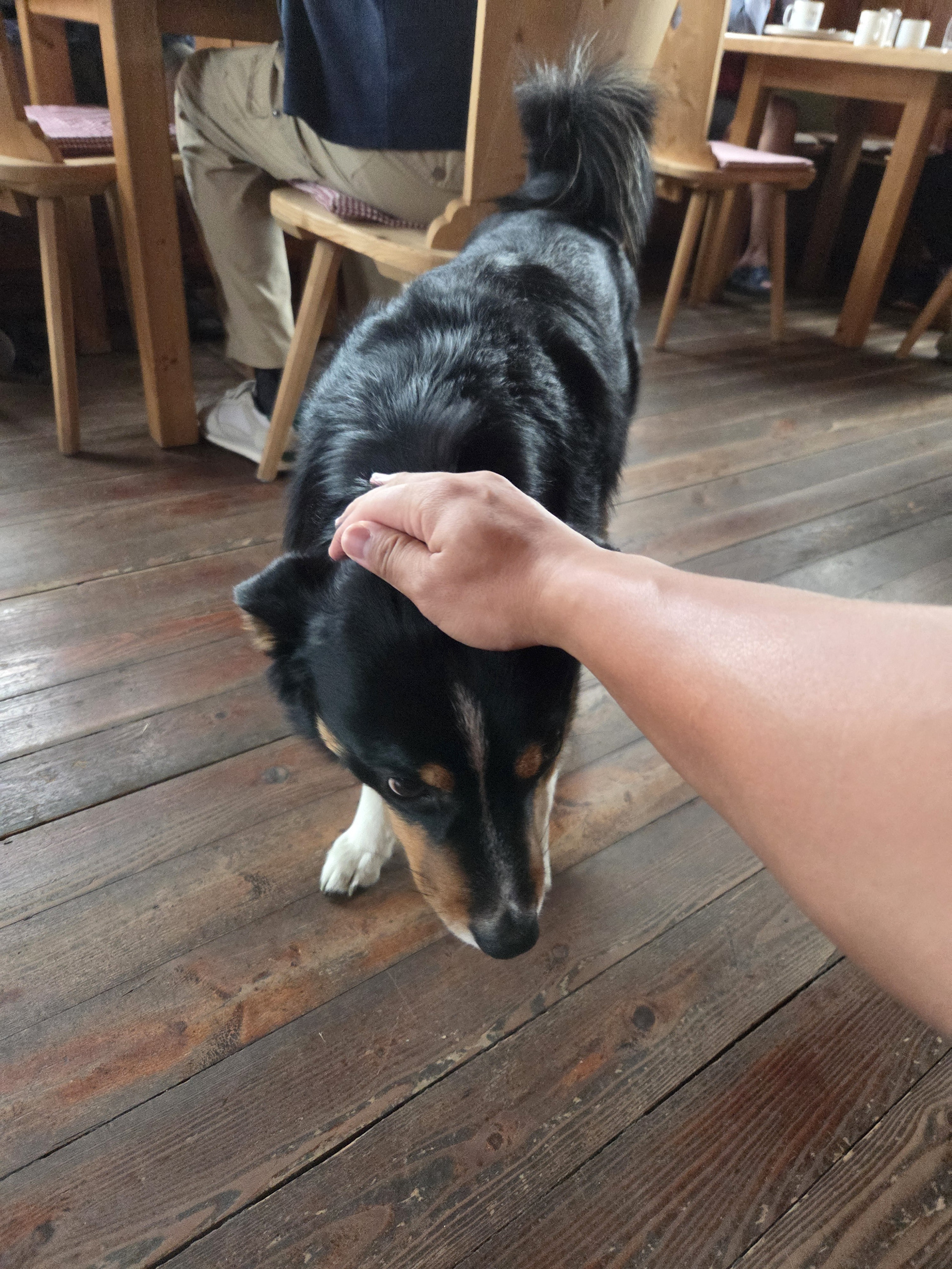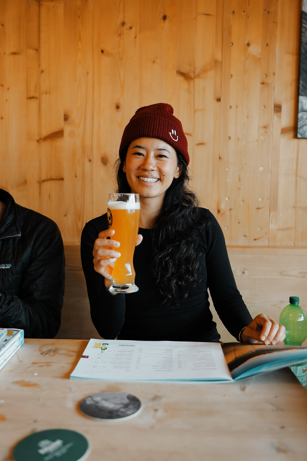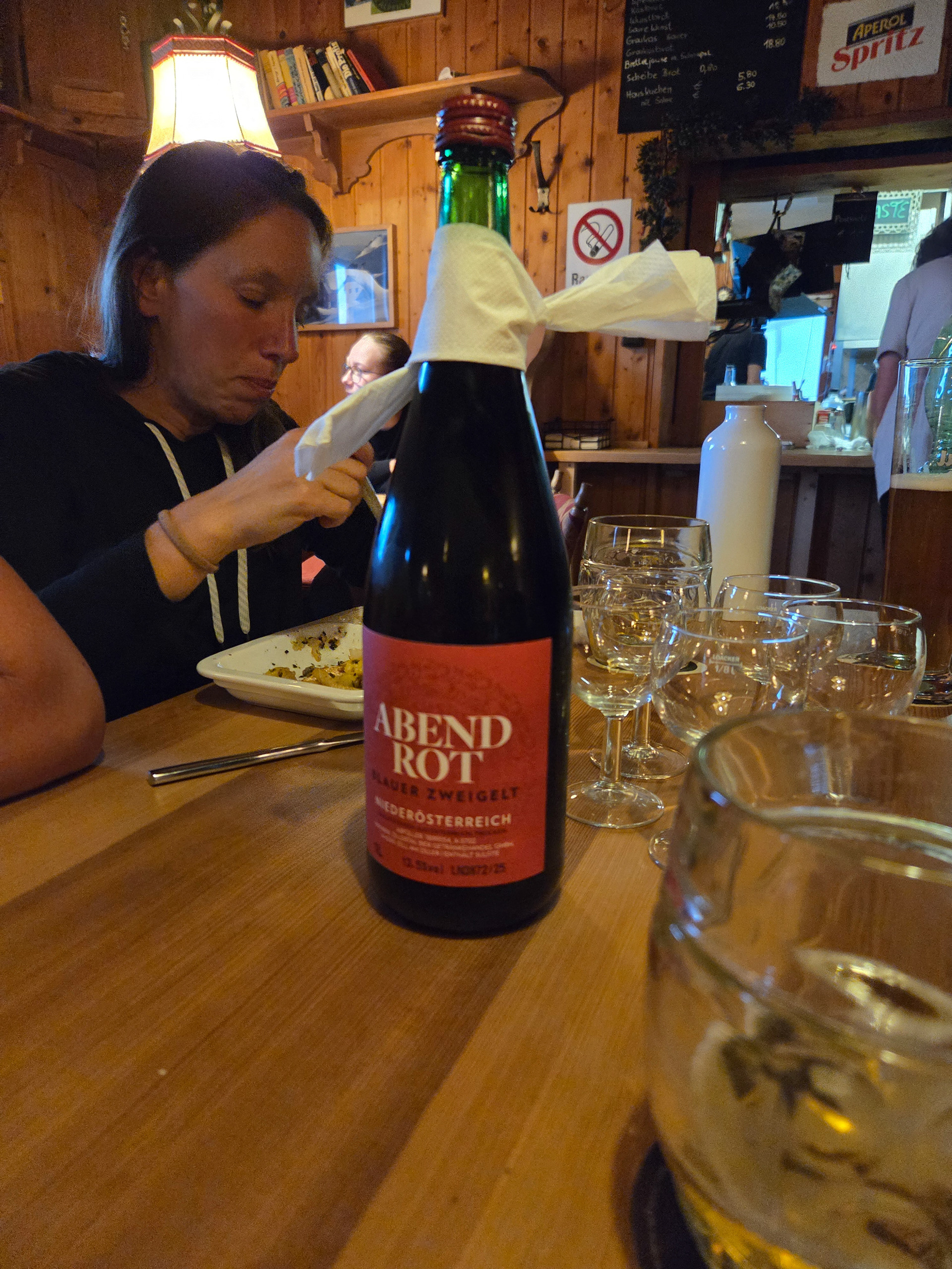 Friesenberghaus has some outdoor seating. When we arrived, it was still sunny and people were hanging outside. By the time, we wanted to hang out on the deck, it had started drizzling and the tables emptied.