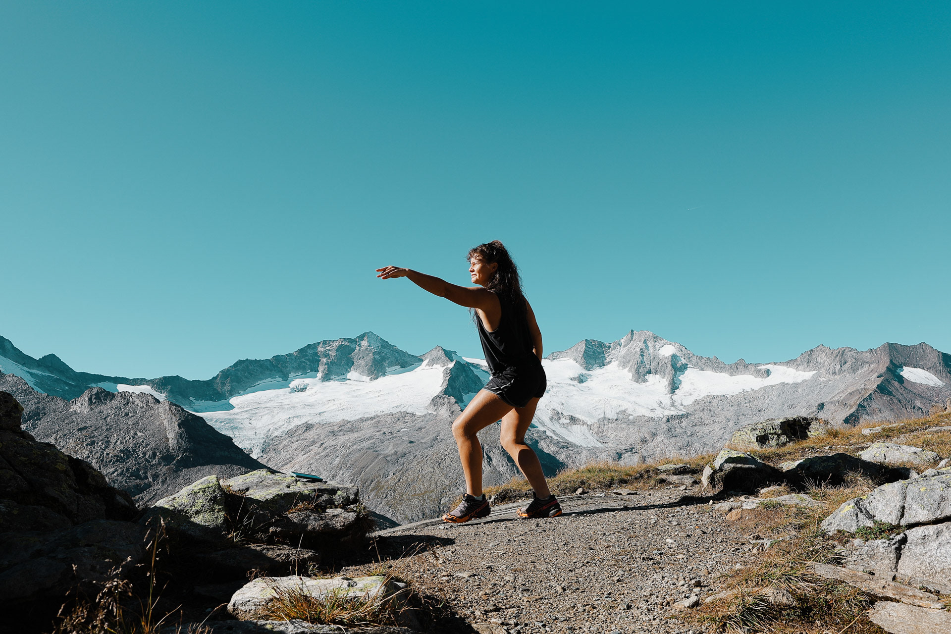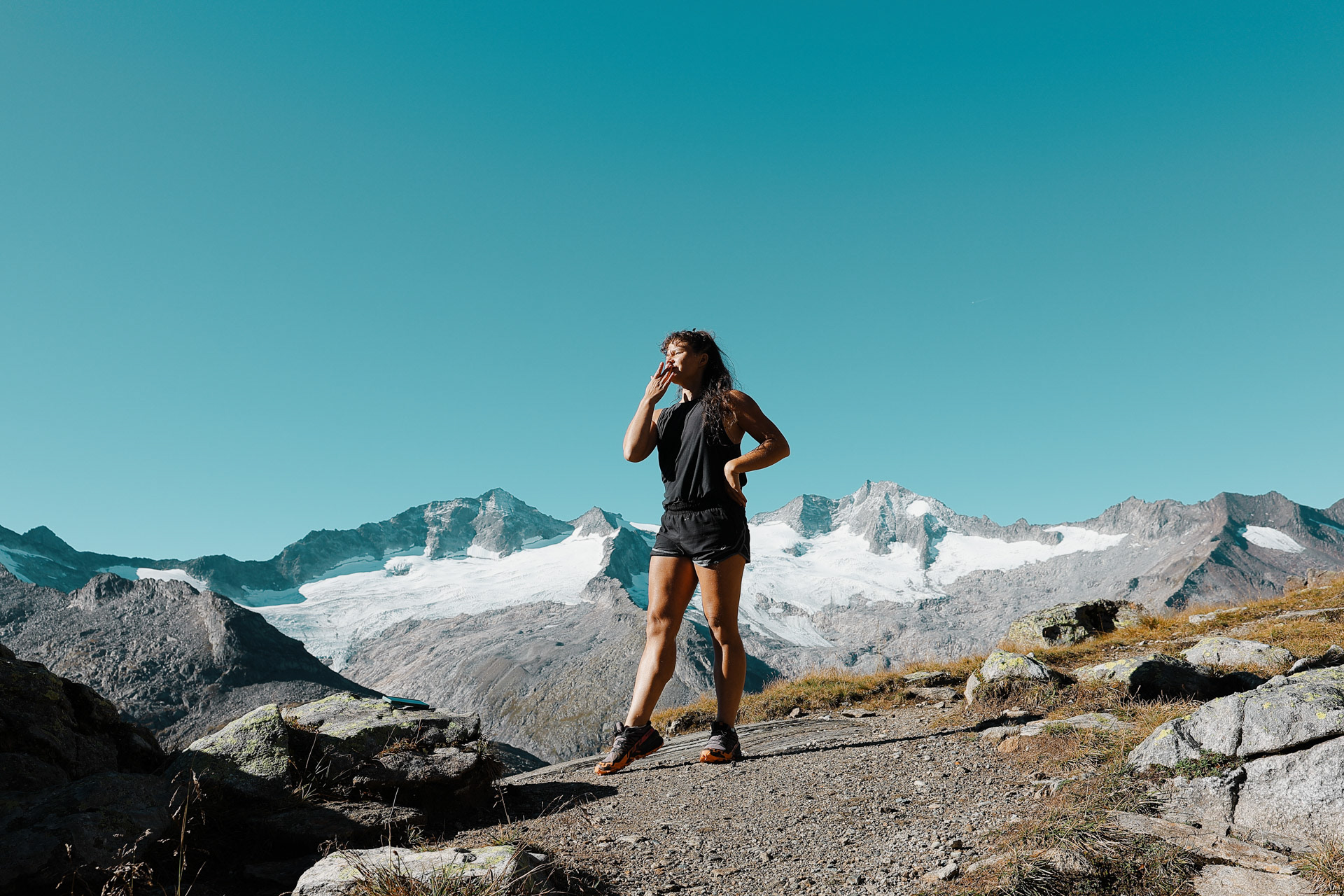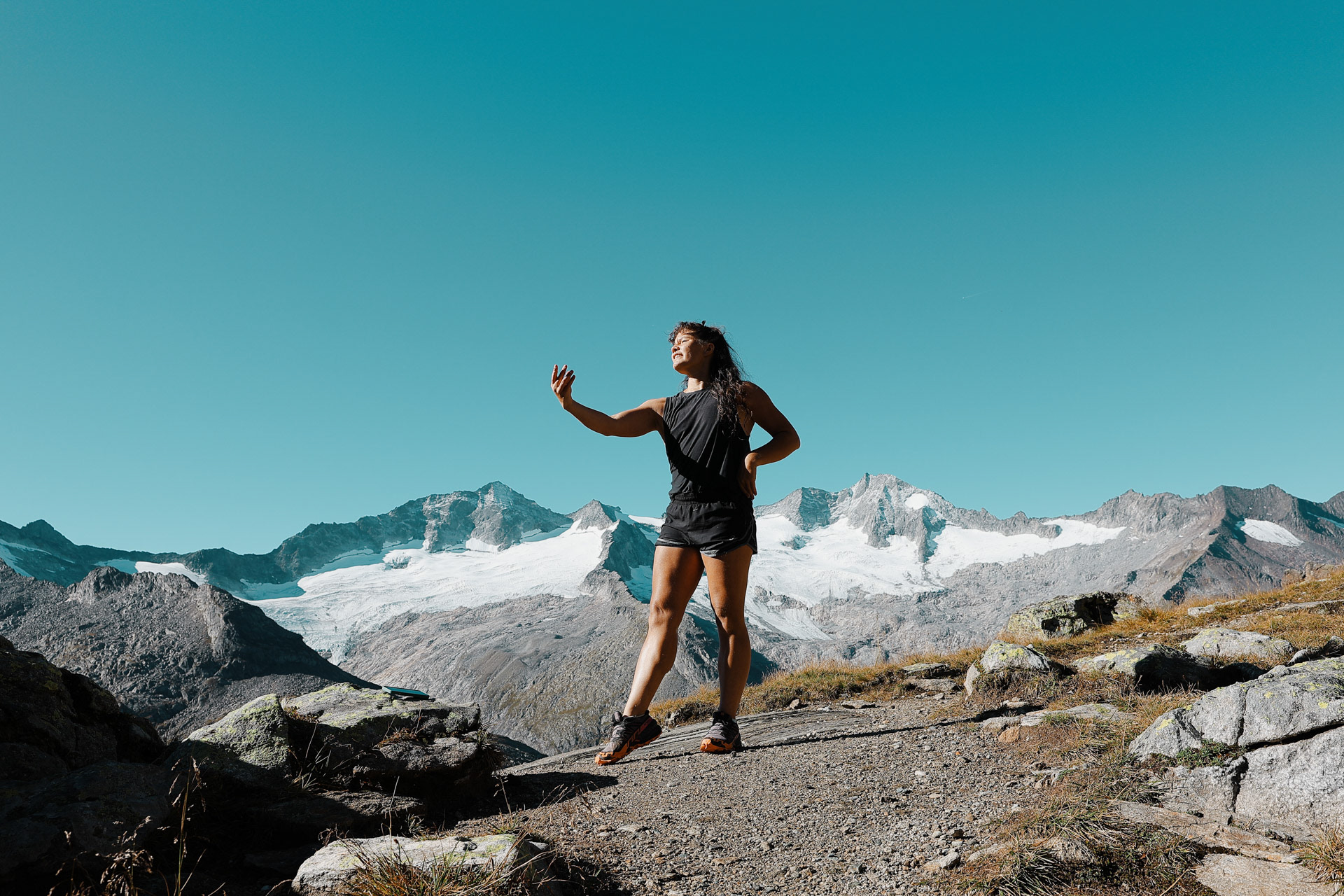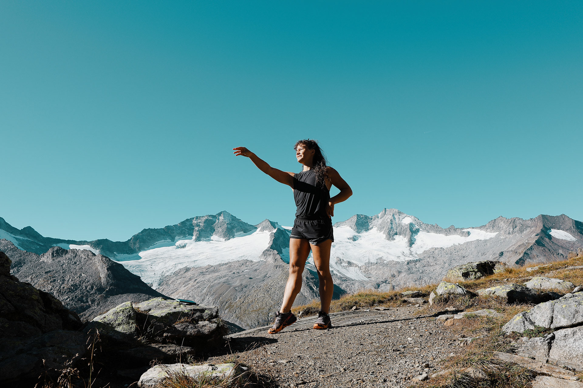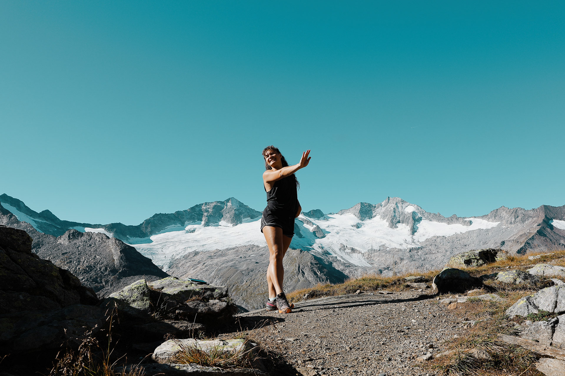Greizer Hutte at the bottom, still in the shadow of the valley. This hut has been the hut closest to snow on the glacier. You can definitely feel it too! I did feel it as I was close to the open window in the room and only had one blanket (I was too tired to get another one in the middle of the night).