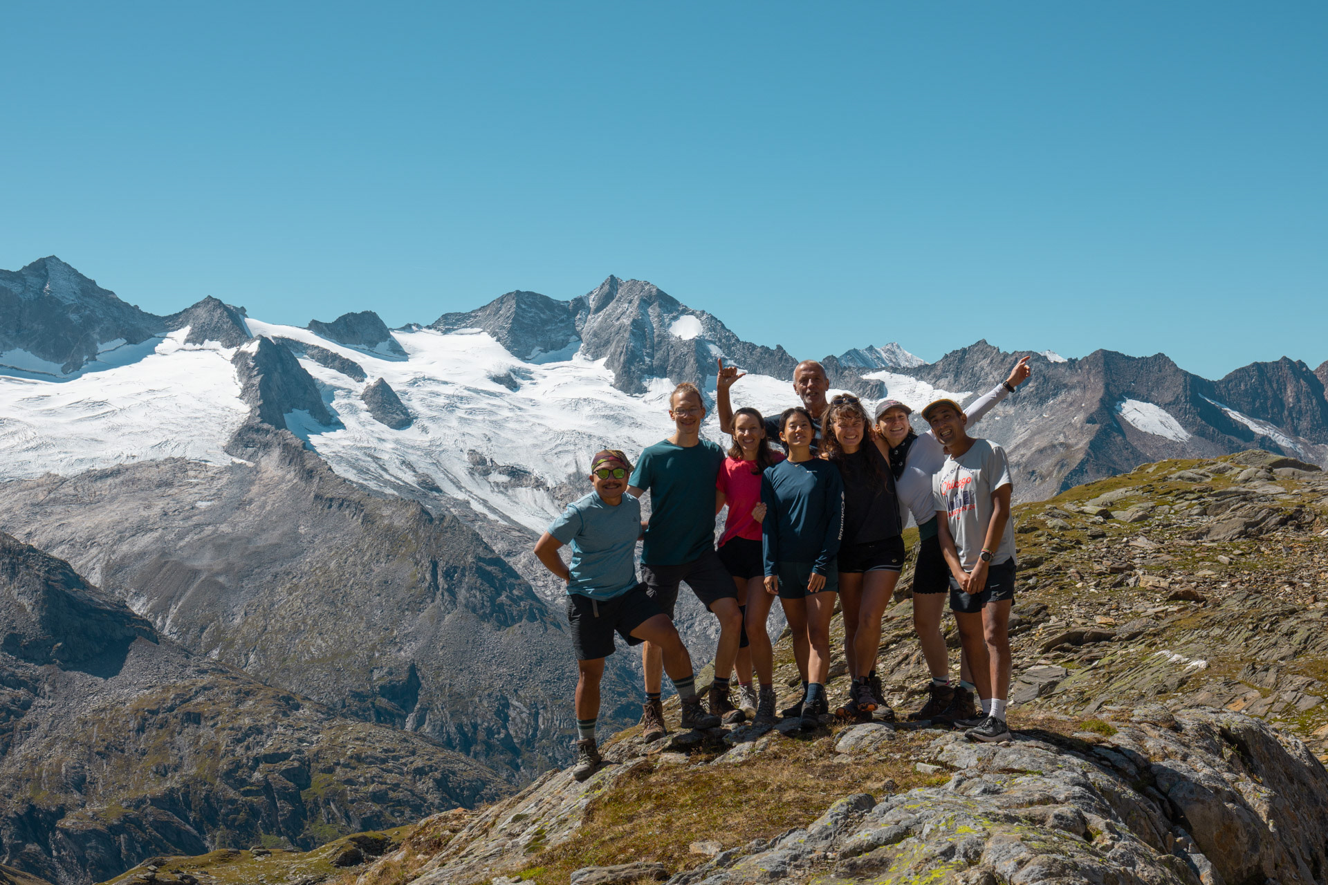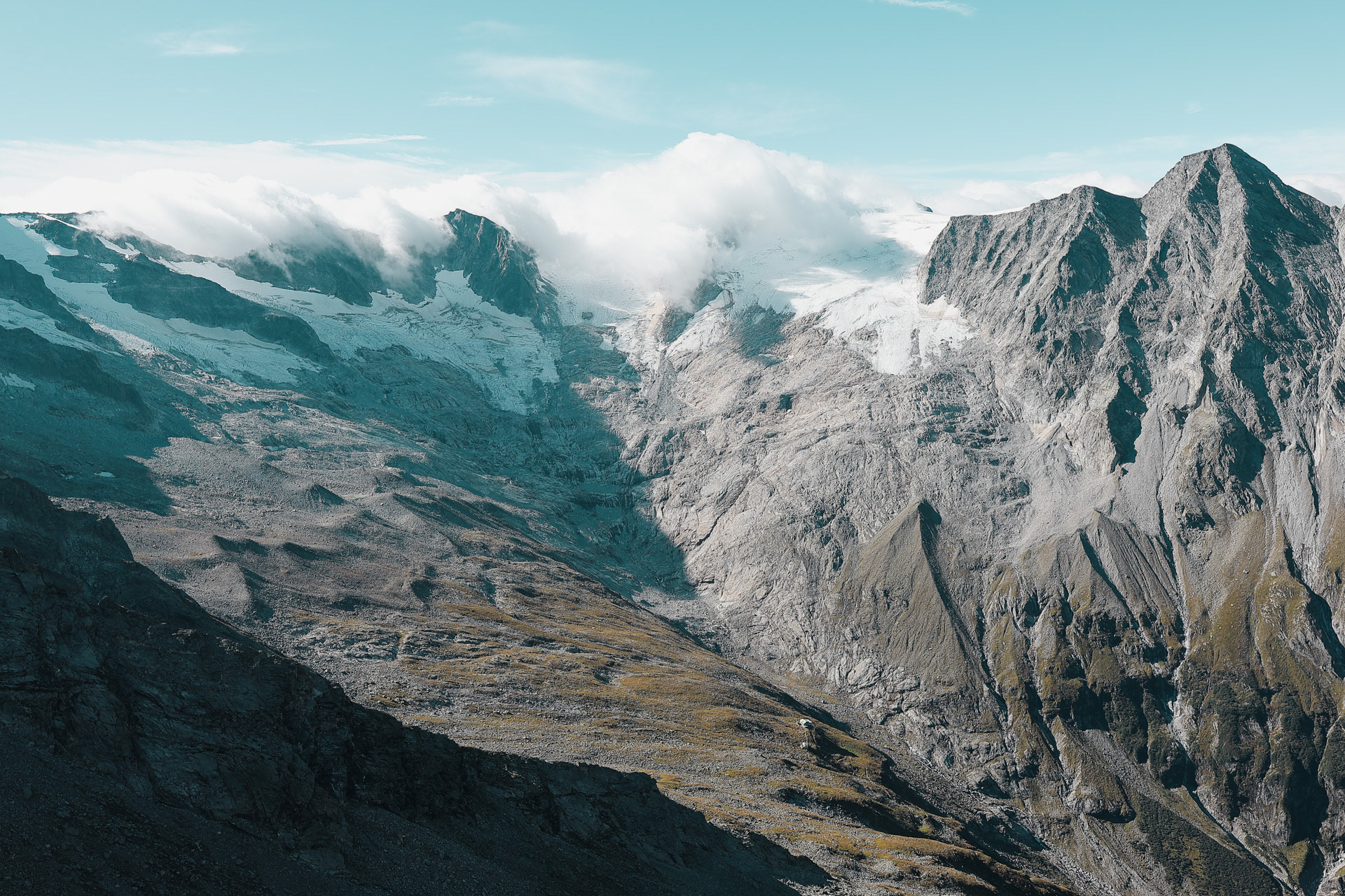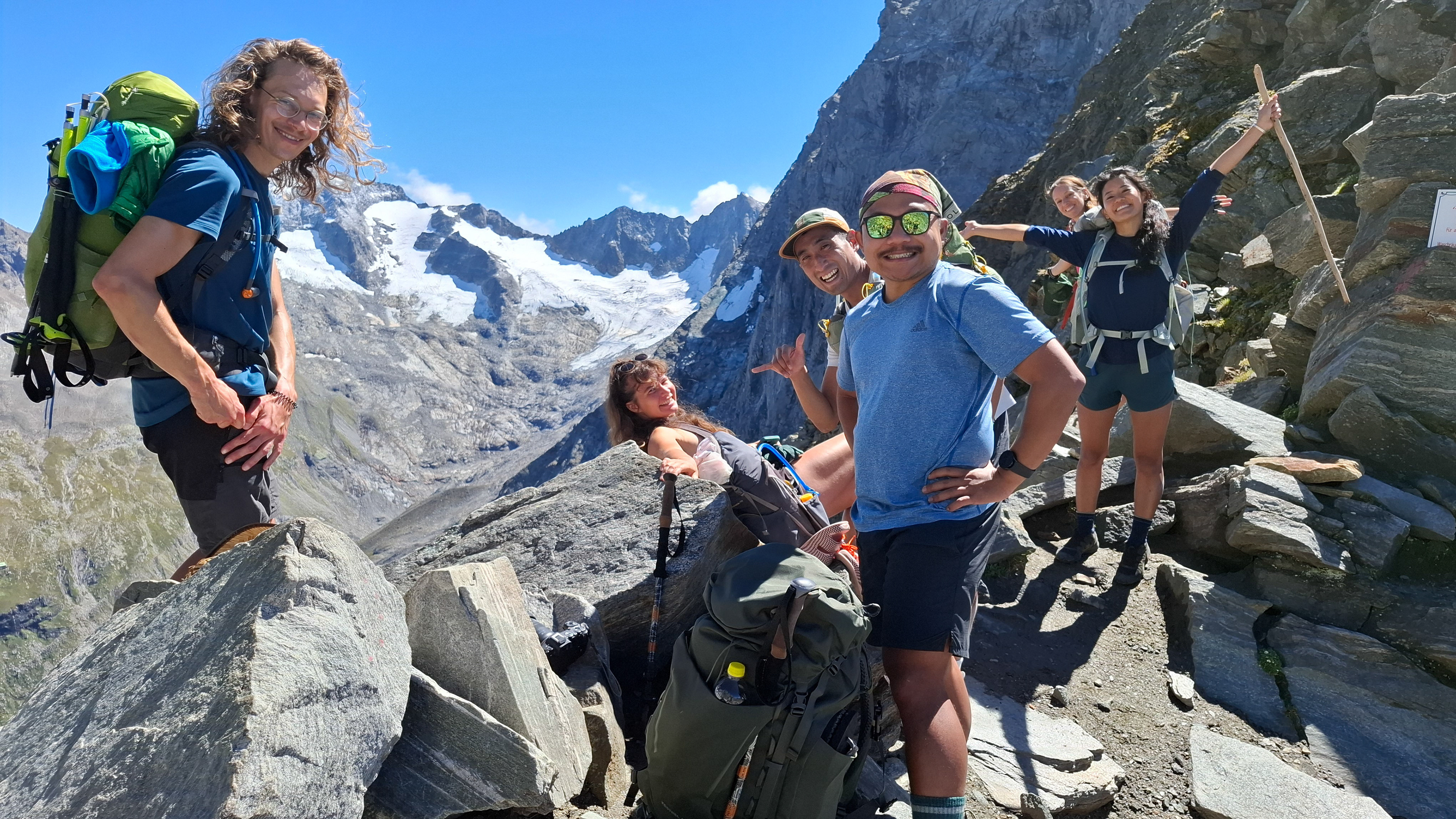 Glaciers in the morning. Middle tallest peak is the Großer Möseler. Green peak on the right is the Schönbichler Horn that we got hailed/rained/winded on in Day 4!