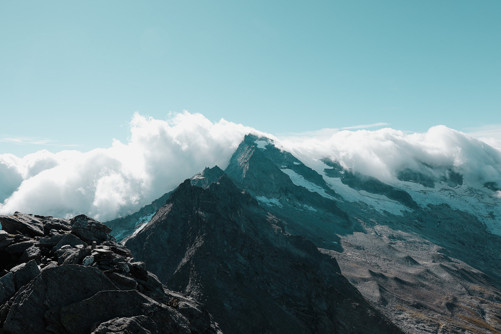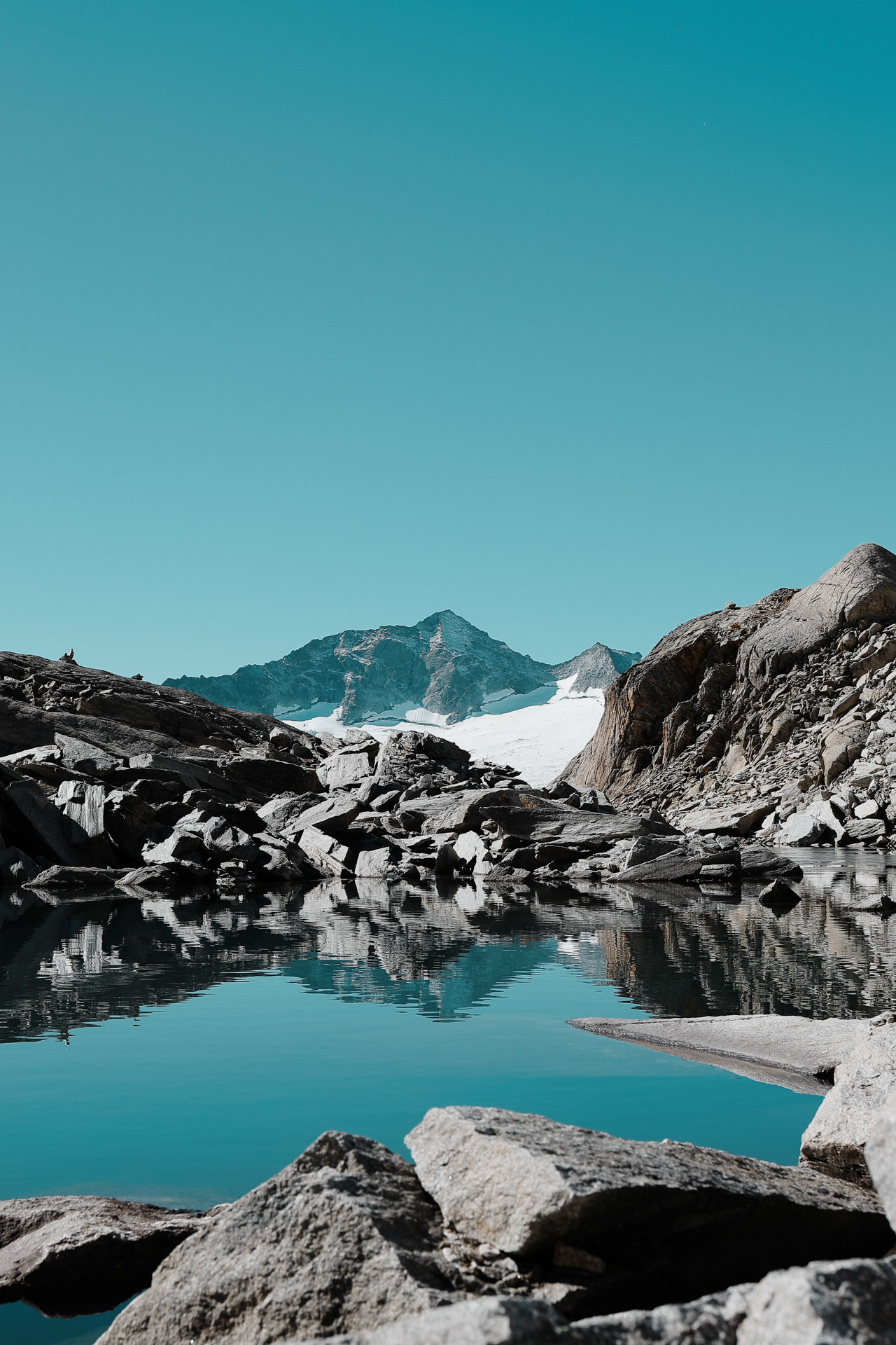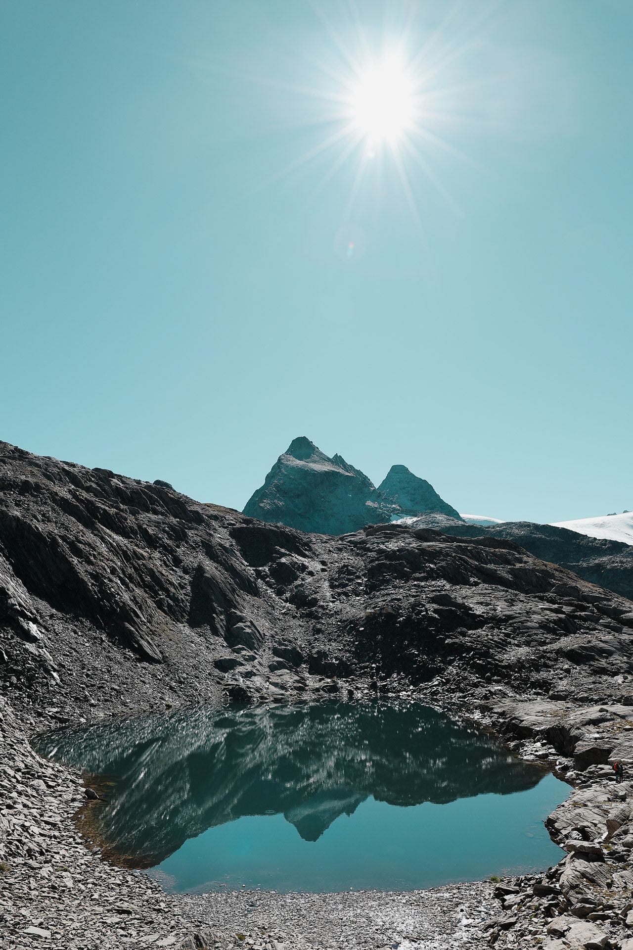 Glaciers in the morning. Middle tallest peak is the Großer Möseler. Green peak on the right is the Schönbichler Horn that we got hailed/rained/winded on in Day 4!