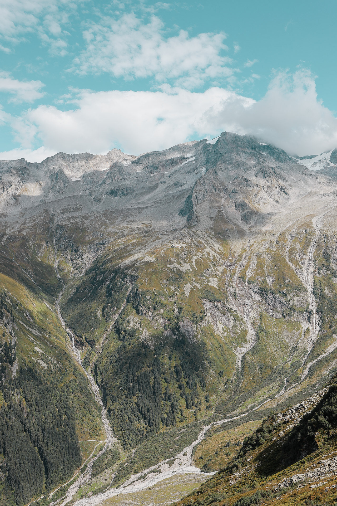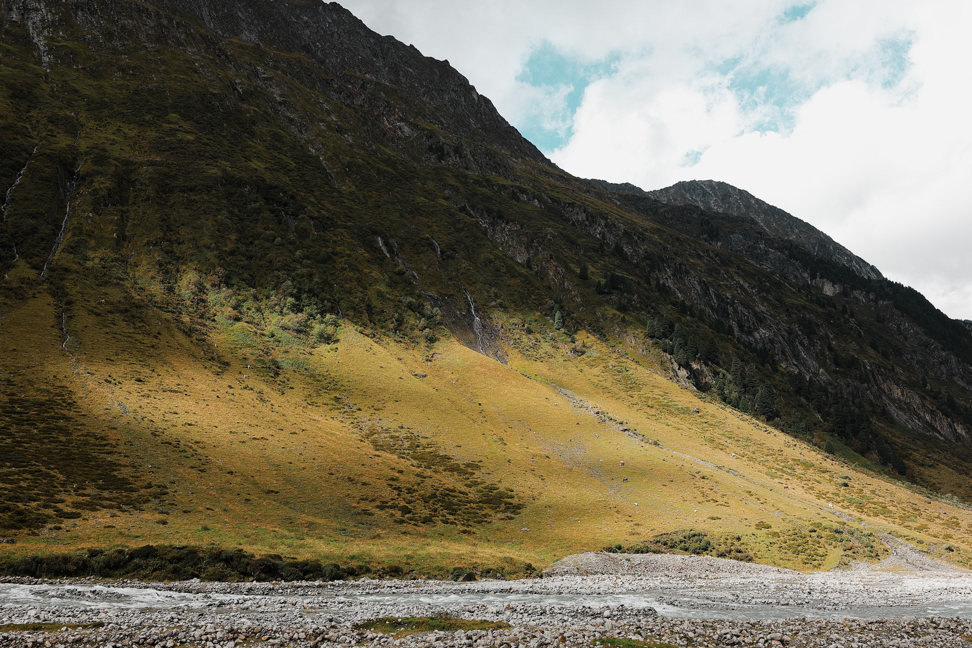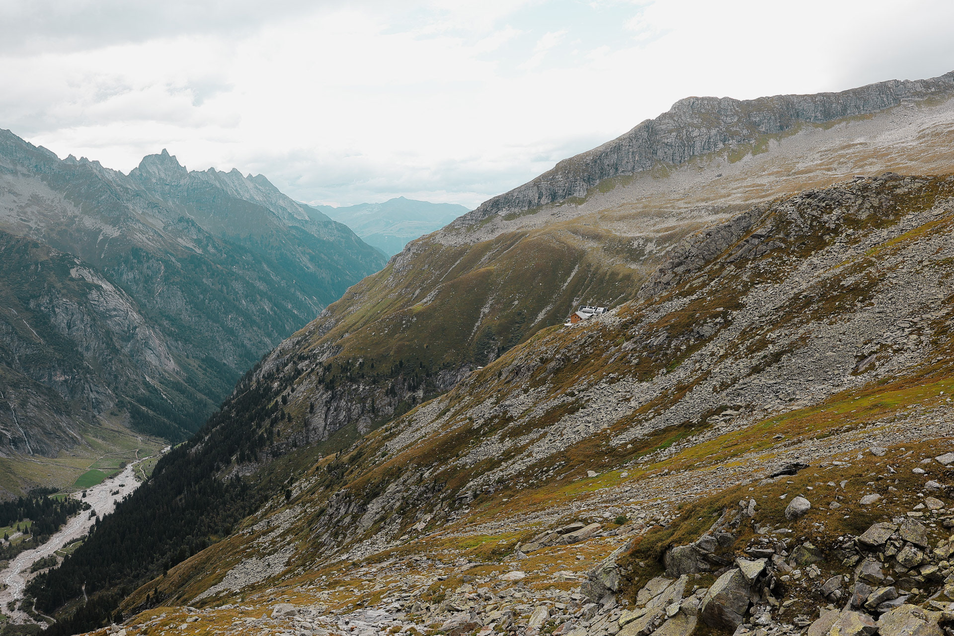 We are now in the Floitengrund subvalley which is the view we were looking at from the first hut, Gamshütte. This means that Gamshütte is somewhere in the back of this picture!