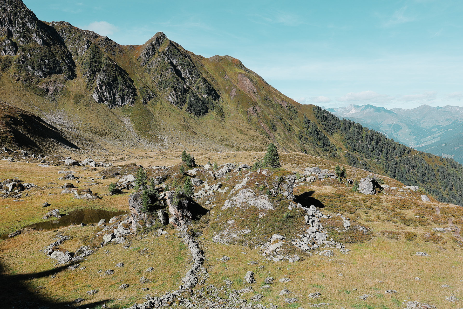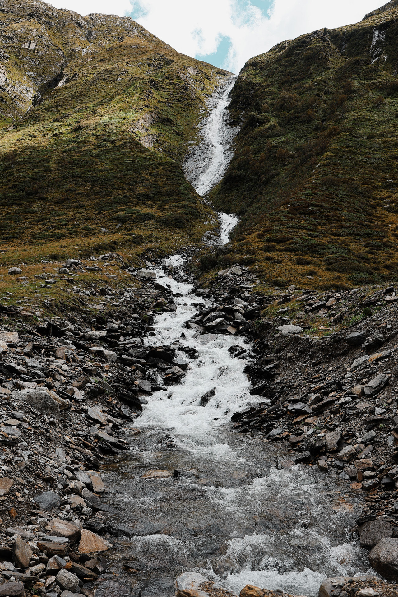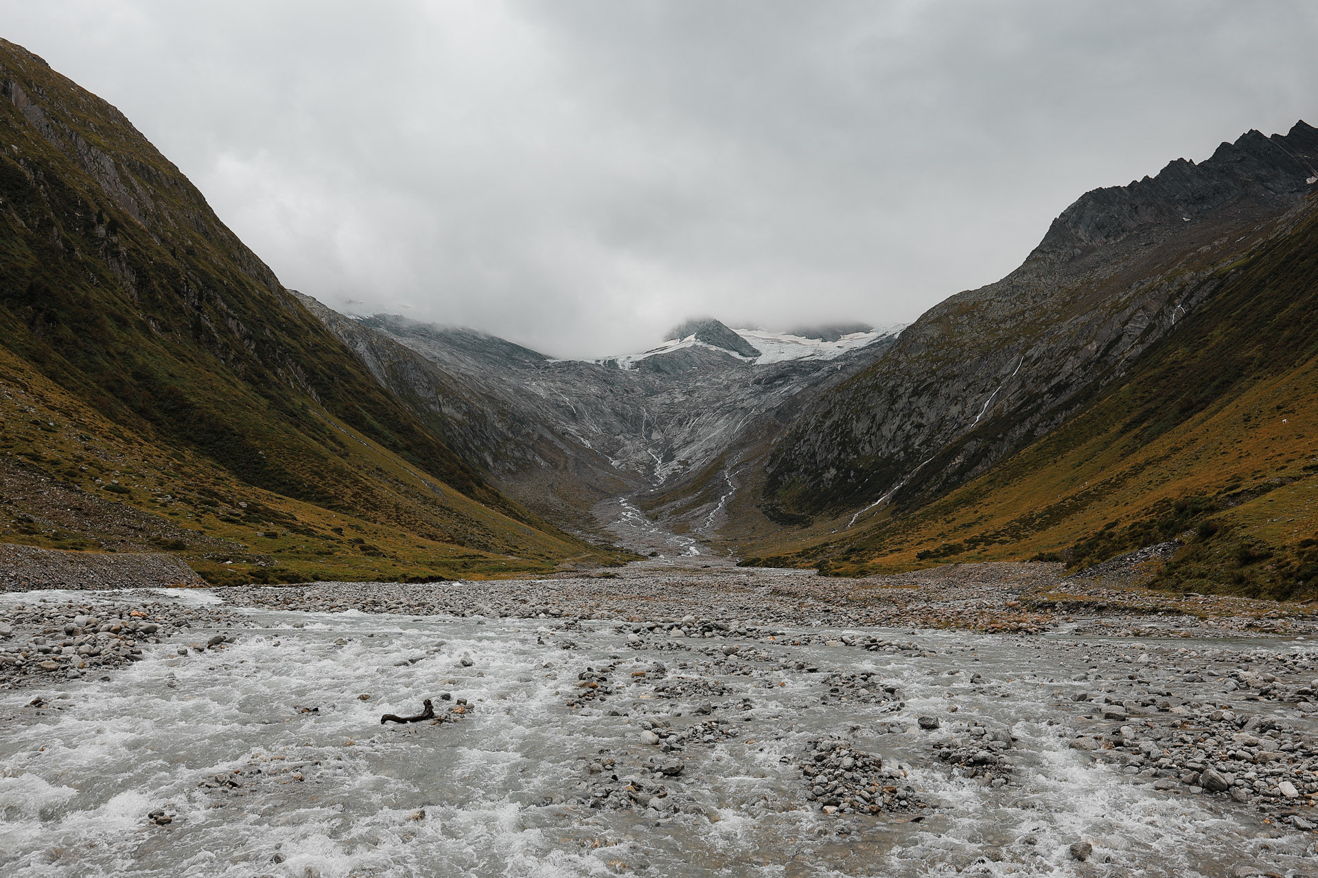 We are now in the Floitengrund subvalley which is the view we were looking at from the first hut, Gamshütte. This means that Gamshütte is somewhere in the back of this picture!