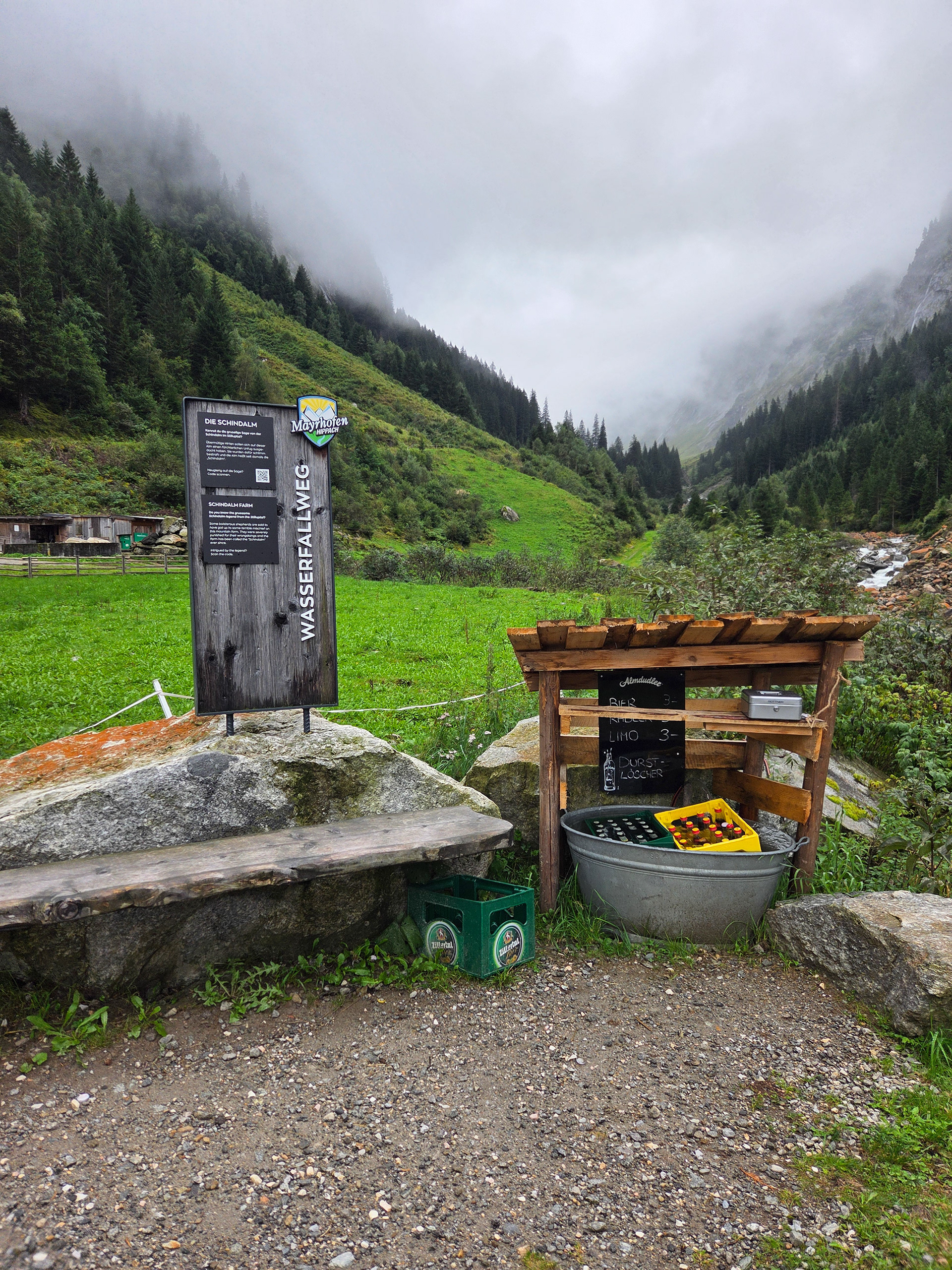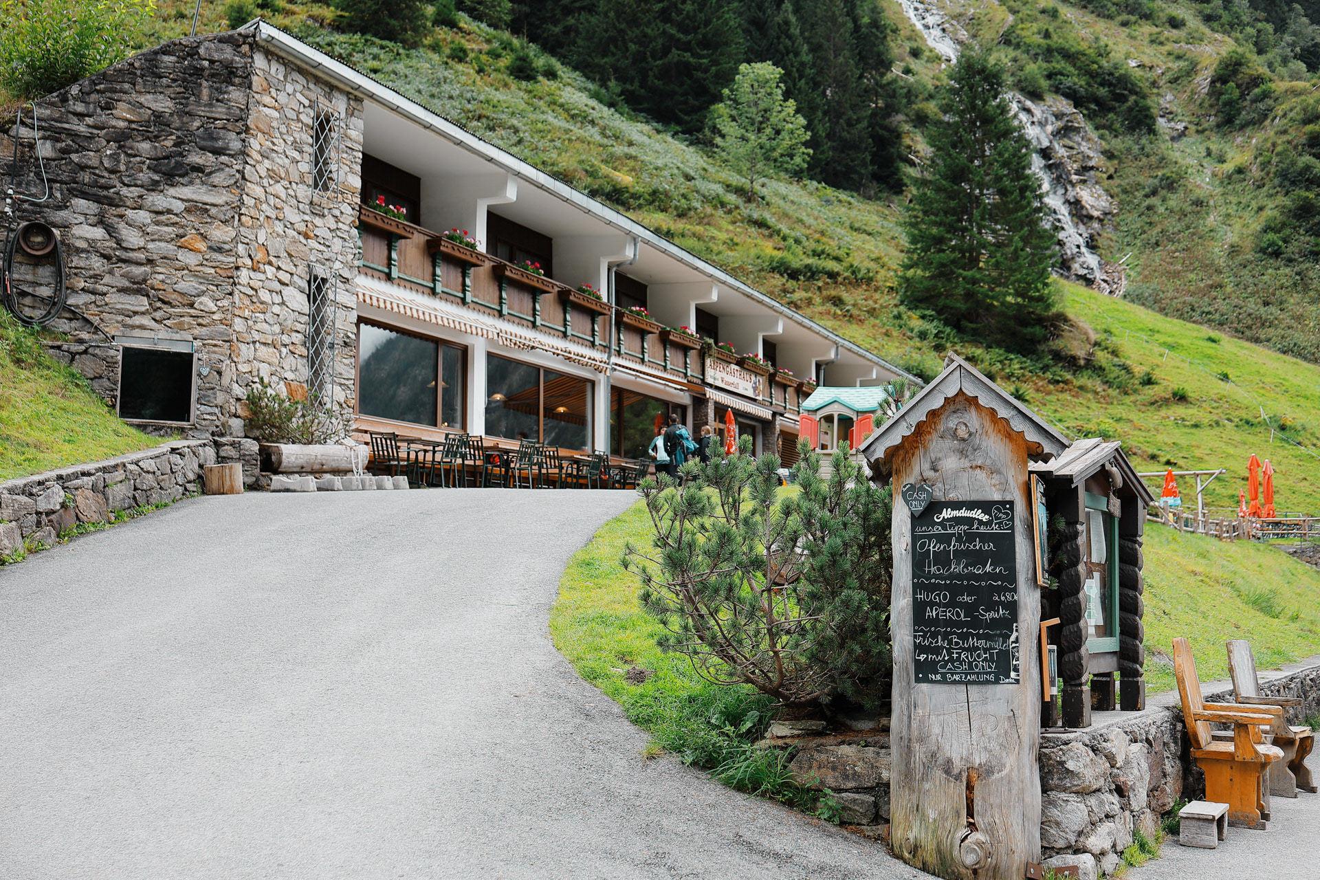 Alas we get to the final destination of our octet! Alpengasthaus Wasserfall, or Waterfall Alpine Guesthouse as you can probably guess, has a bus that runs to Mayrhofen. We decide to grab a quick bite since it was an hour before the next bus runs.