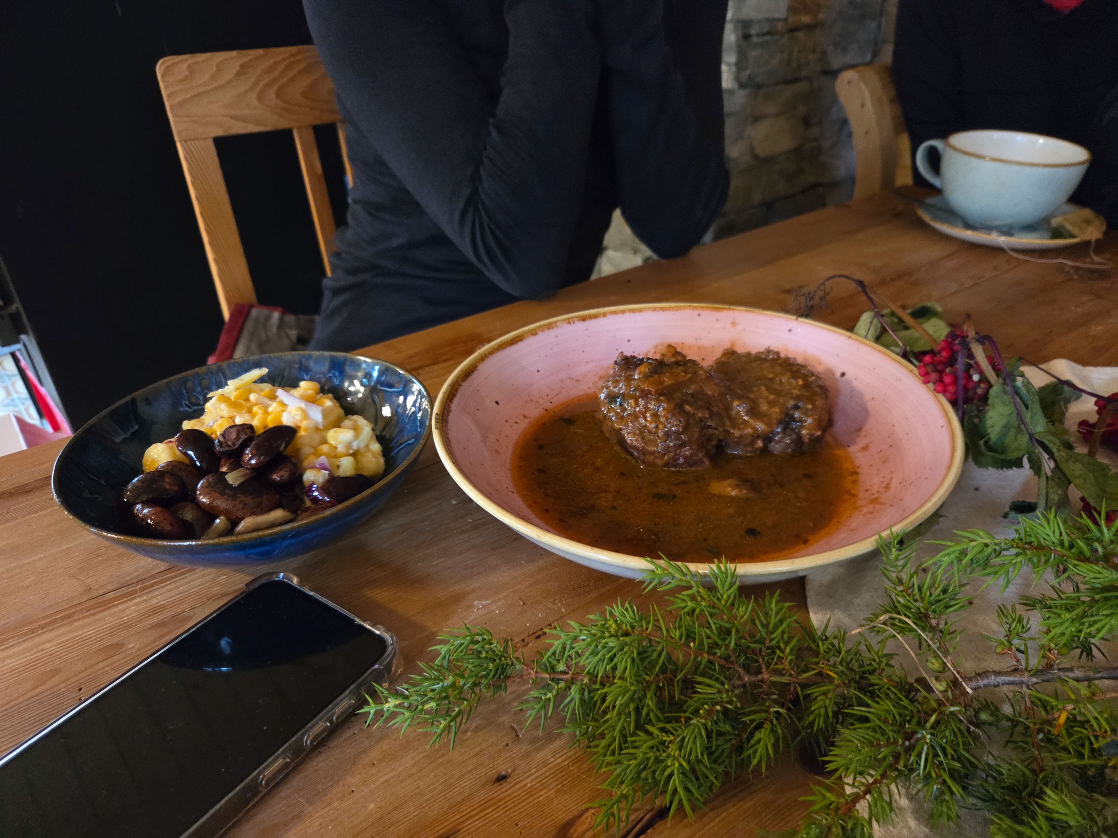 Dinner at dining room No. 2. At this hut you get assigned tables and you only get to sit in the main dining room if you arrive early. Who is Emily?