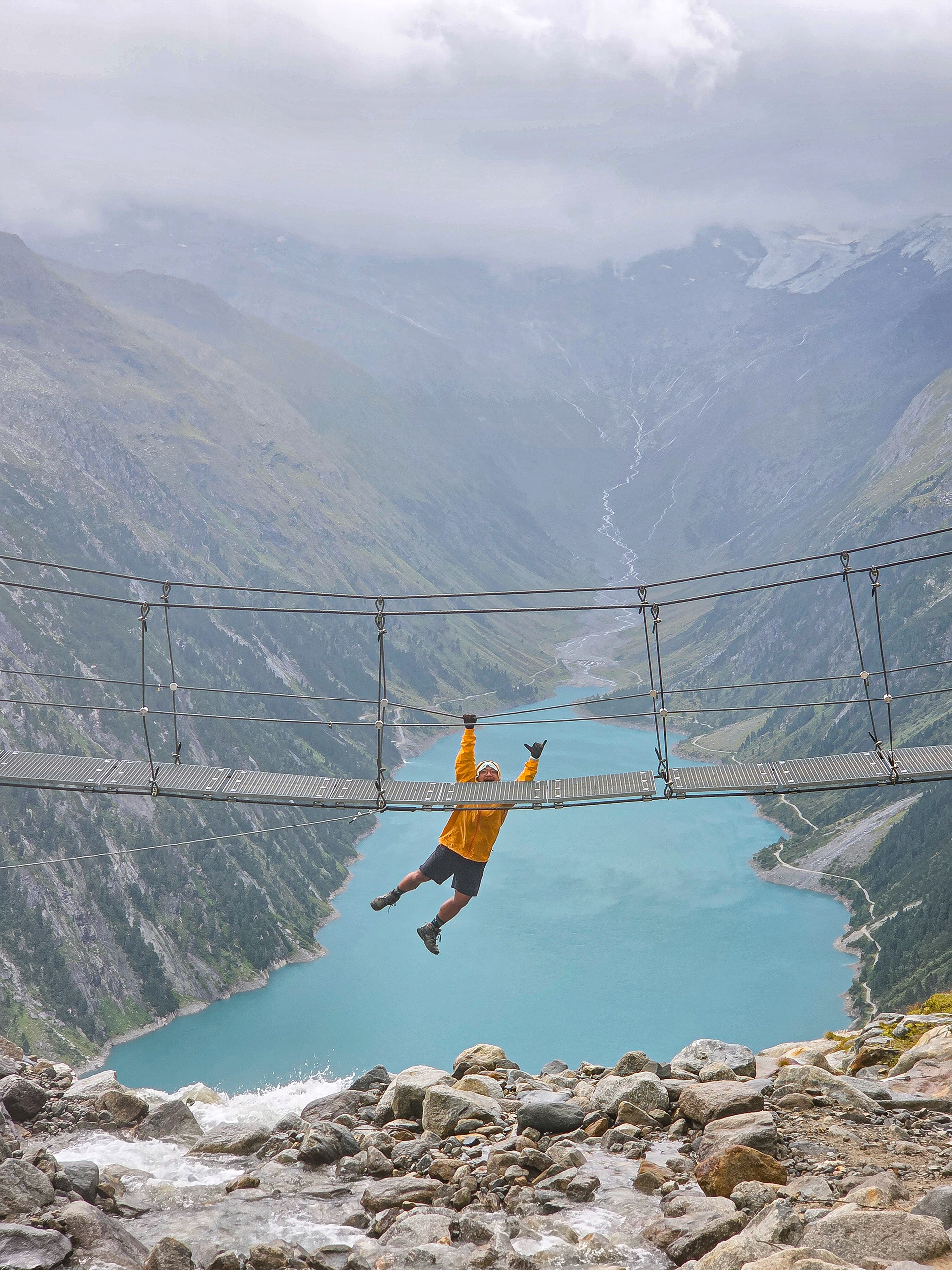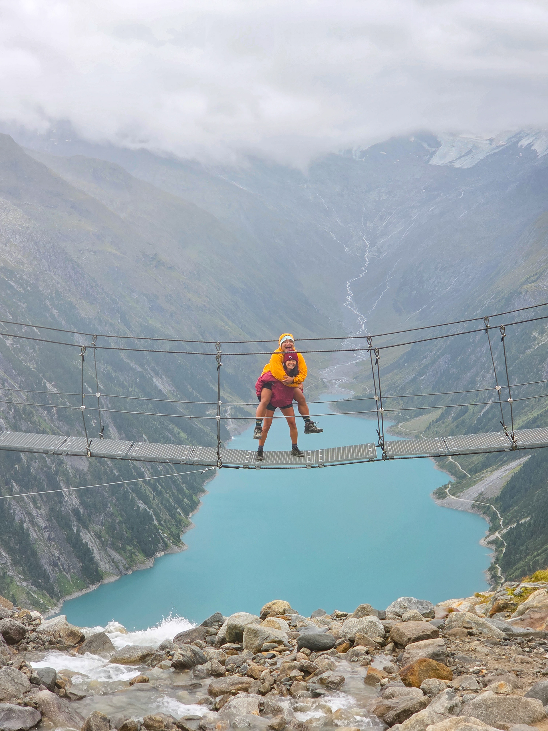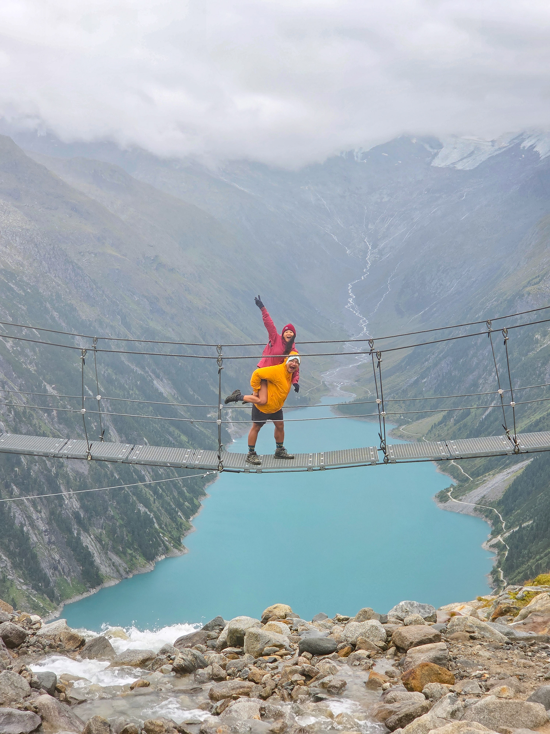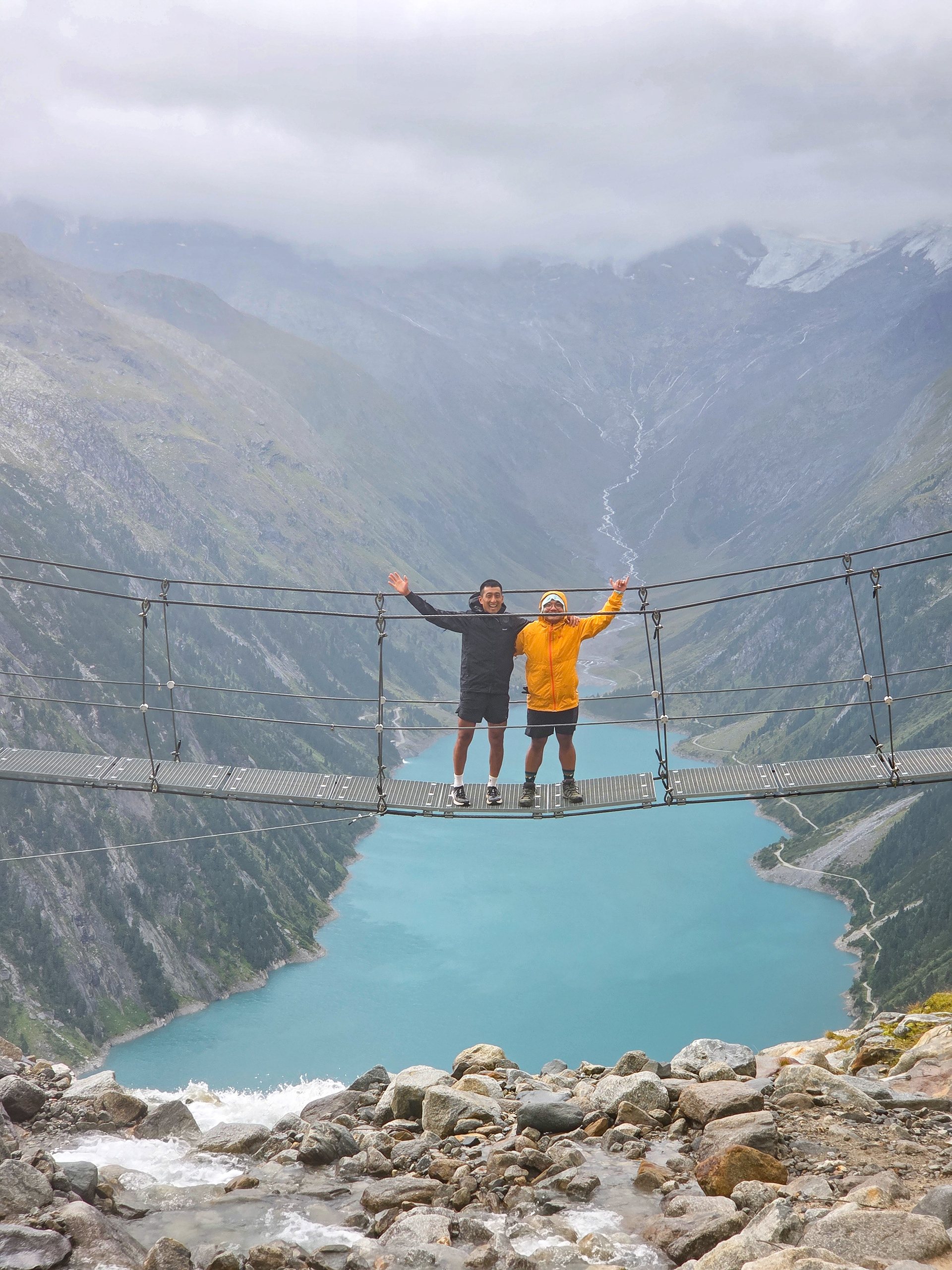 Another suspension bridge! This is constructed similar to the one by Olpererutte but not as famous probably since this is harder to get to, and there's no lake in the background. Han stayed back to take pictures of us.