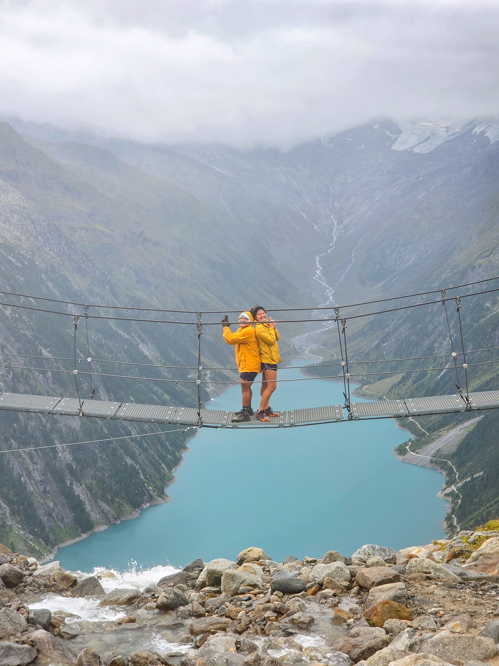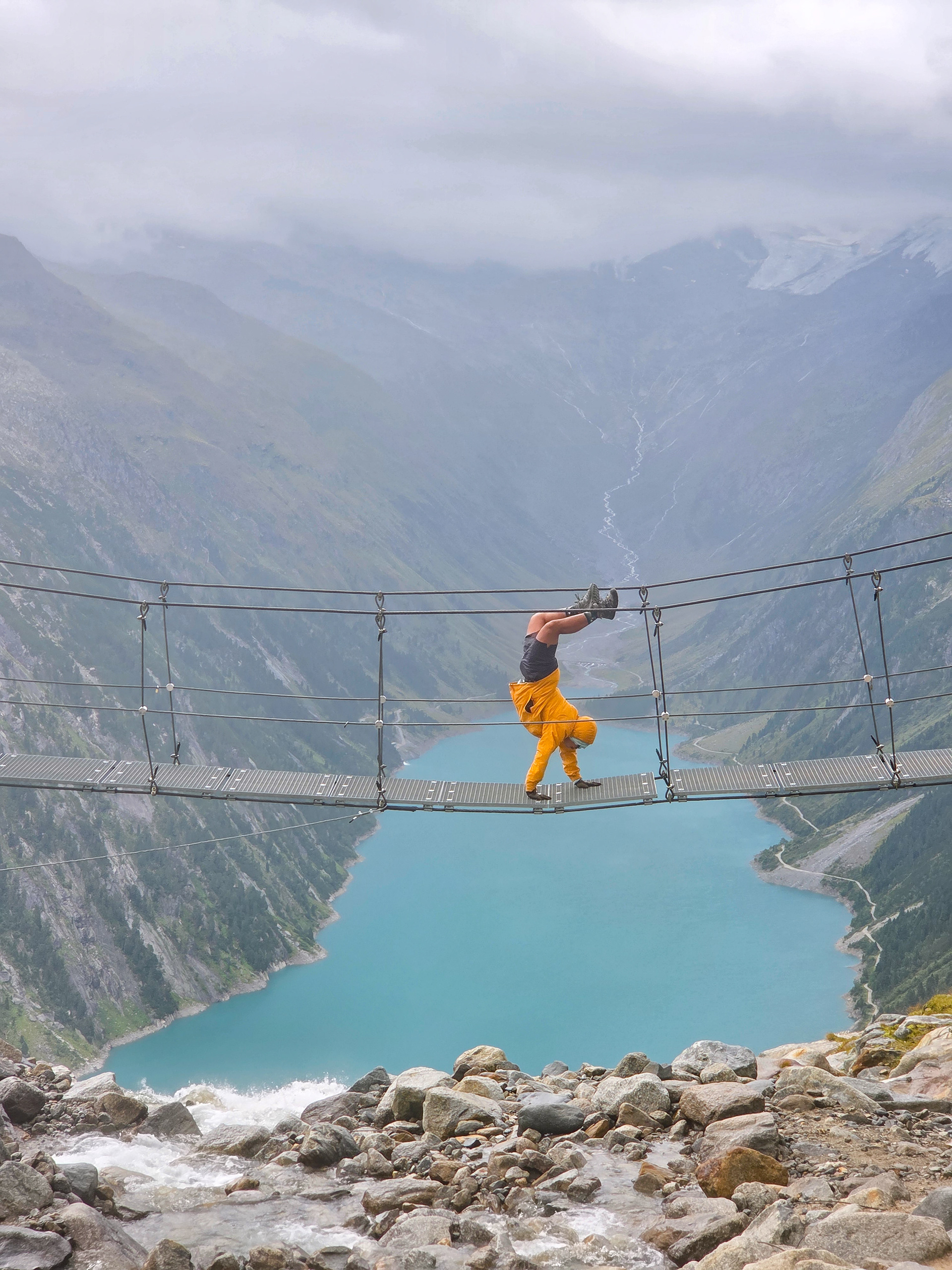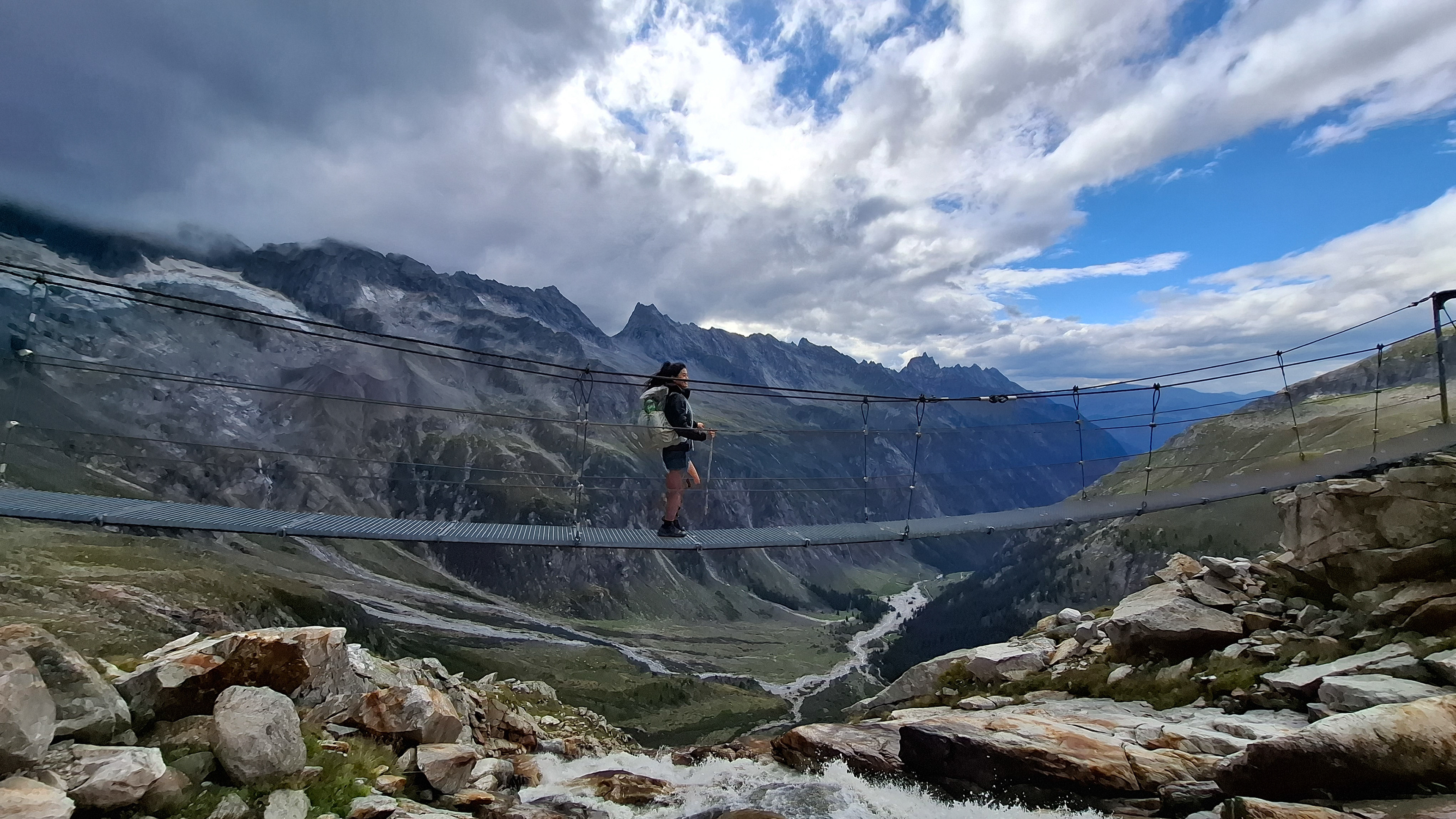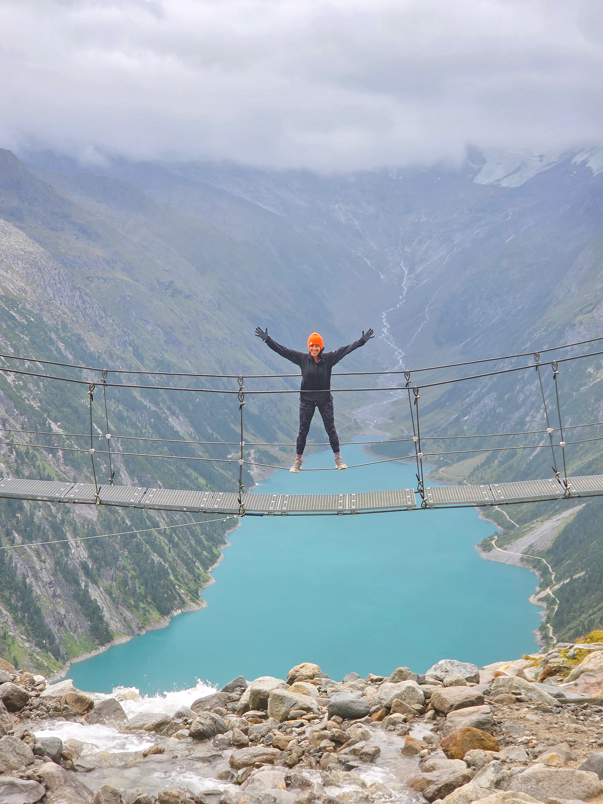 Another suspension bridge! This is constructed similar to the one by Olpererutte but not as famous probably since this is harder to get to, and there's no lake in the background. Han stayed back to take pictures of us.