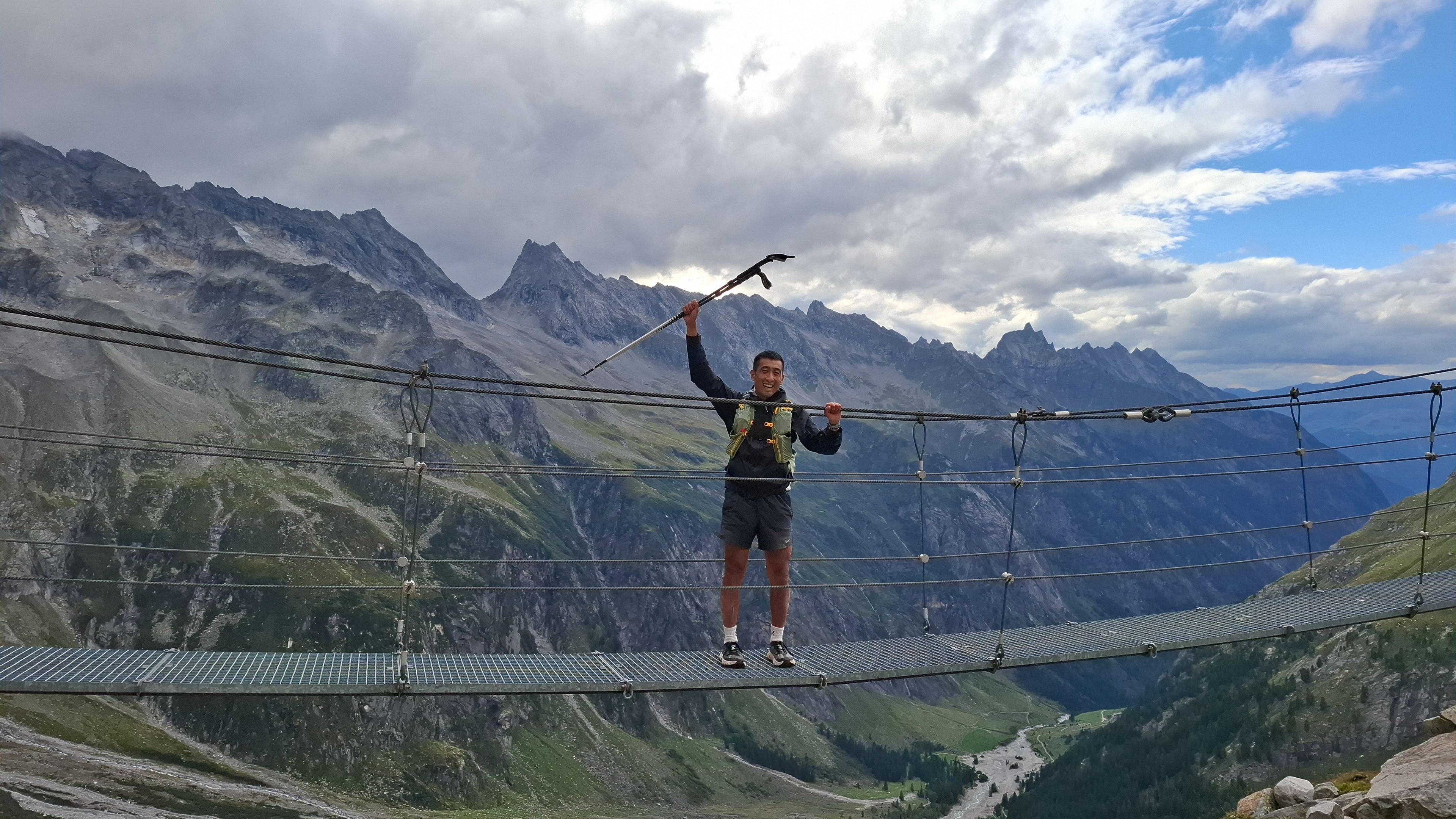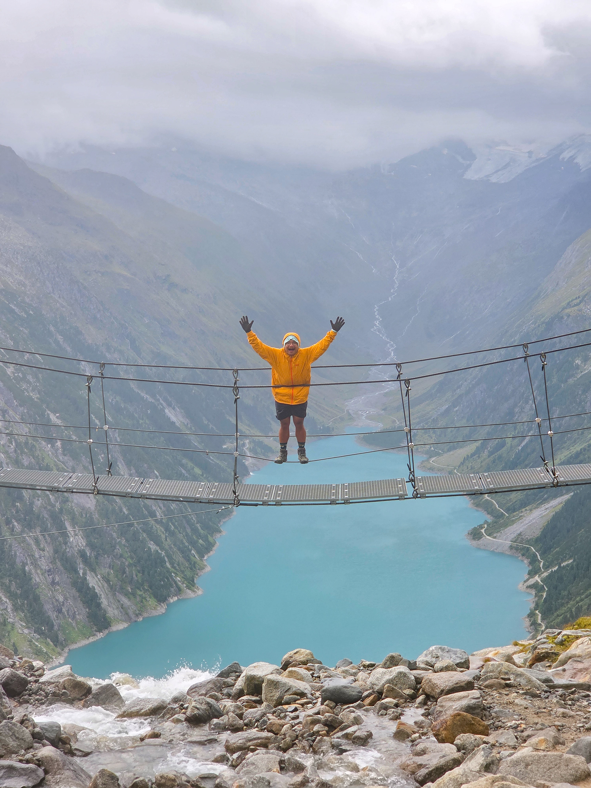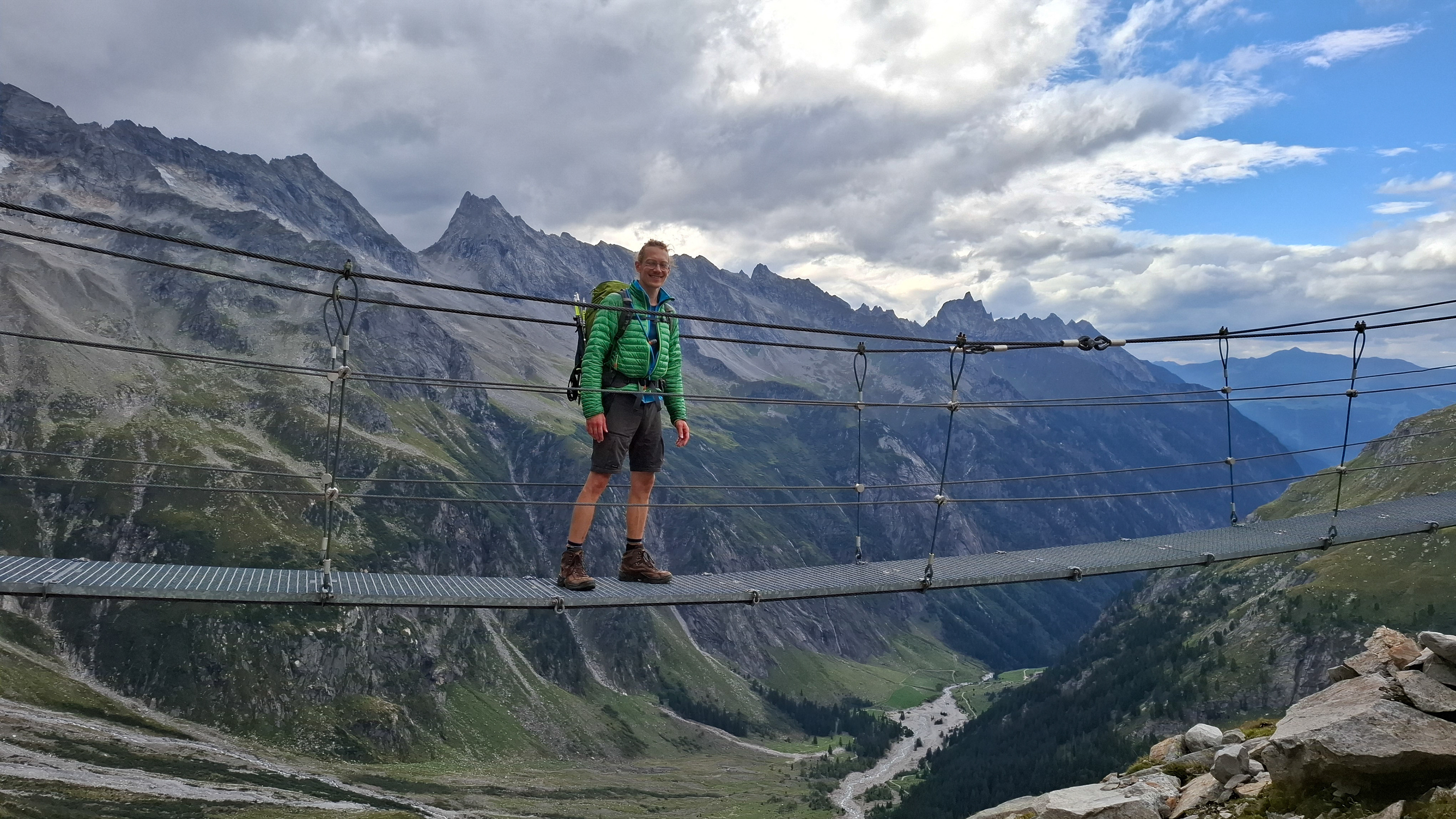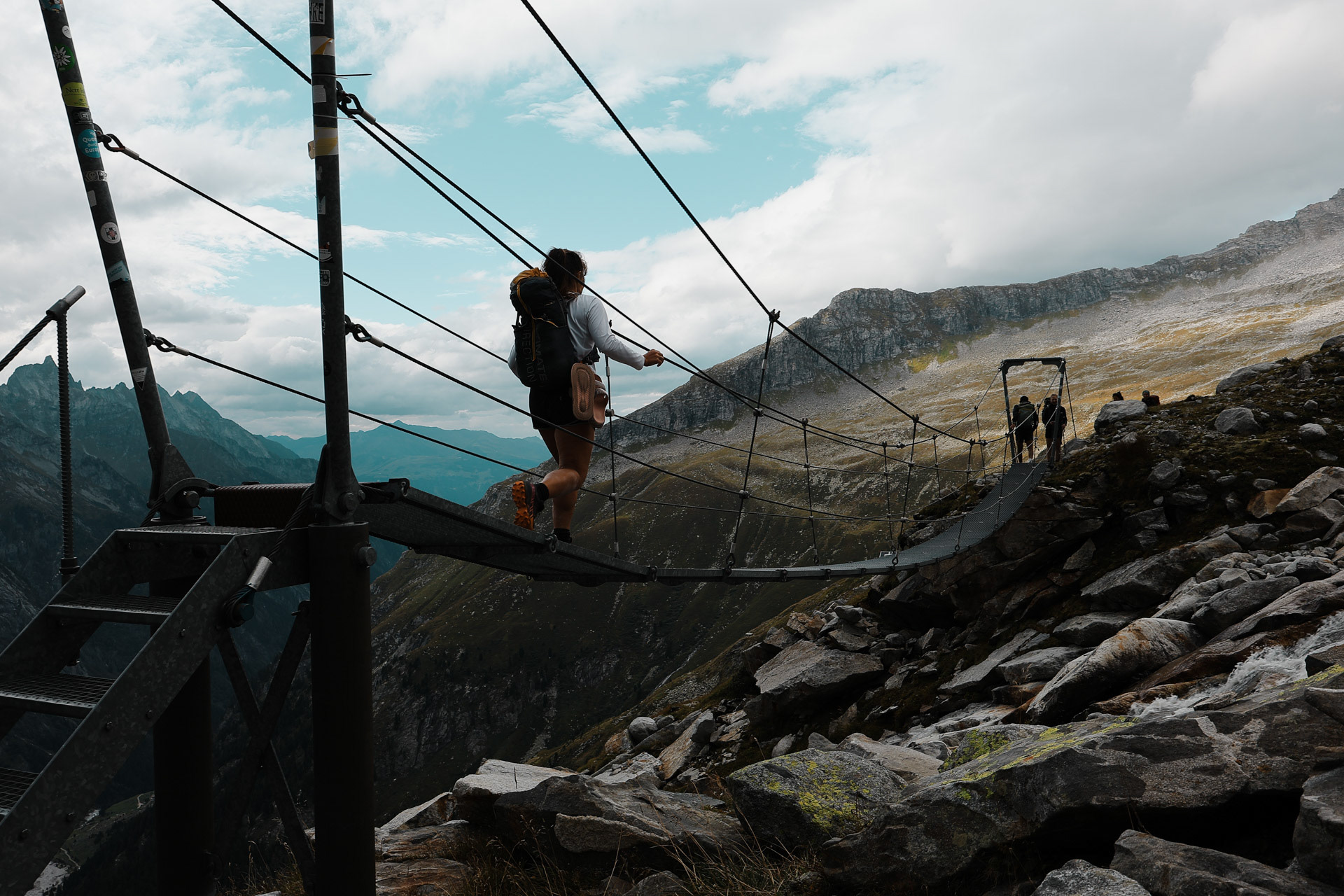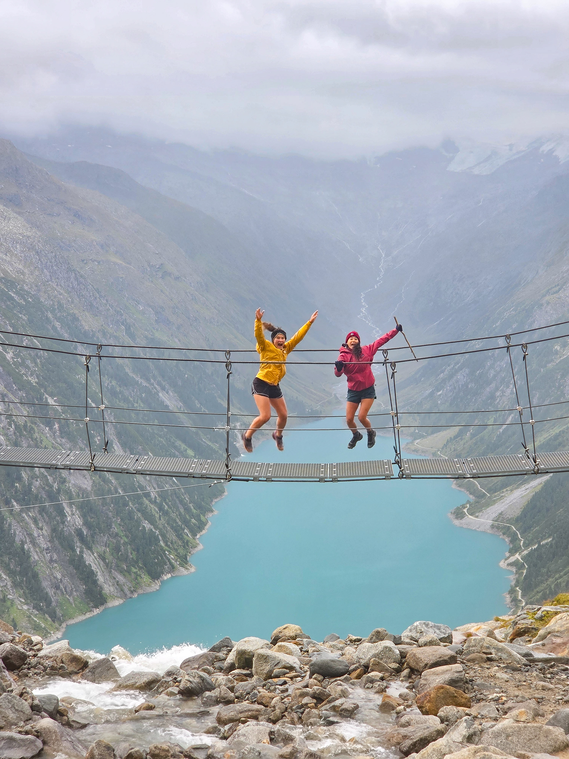 Another suspension bridge! This is constructed similar to the one by Olpererutte but not as famous probably since this is harder to get to, and there's no lake in the background. Han stayed back to take pictures of us.