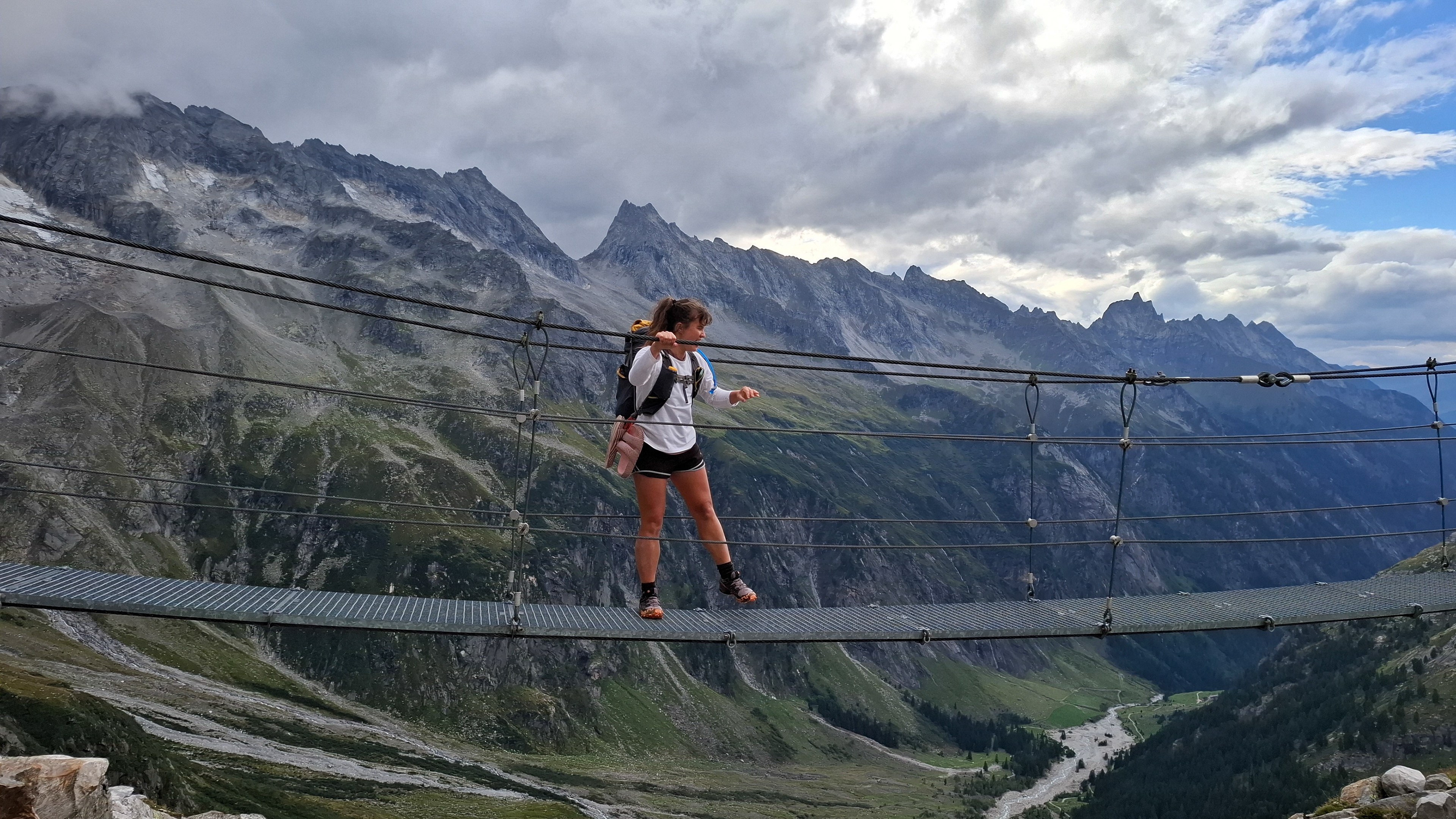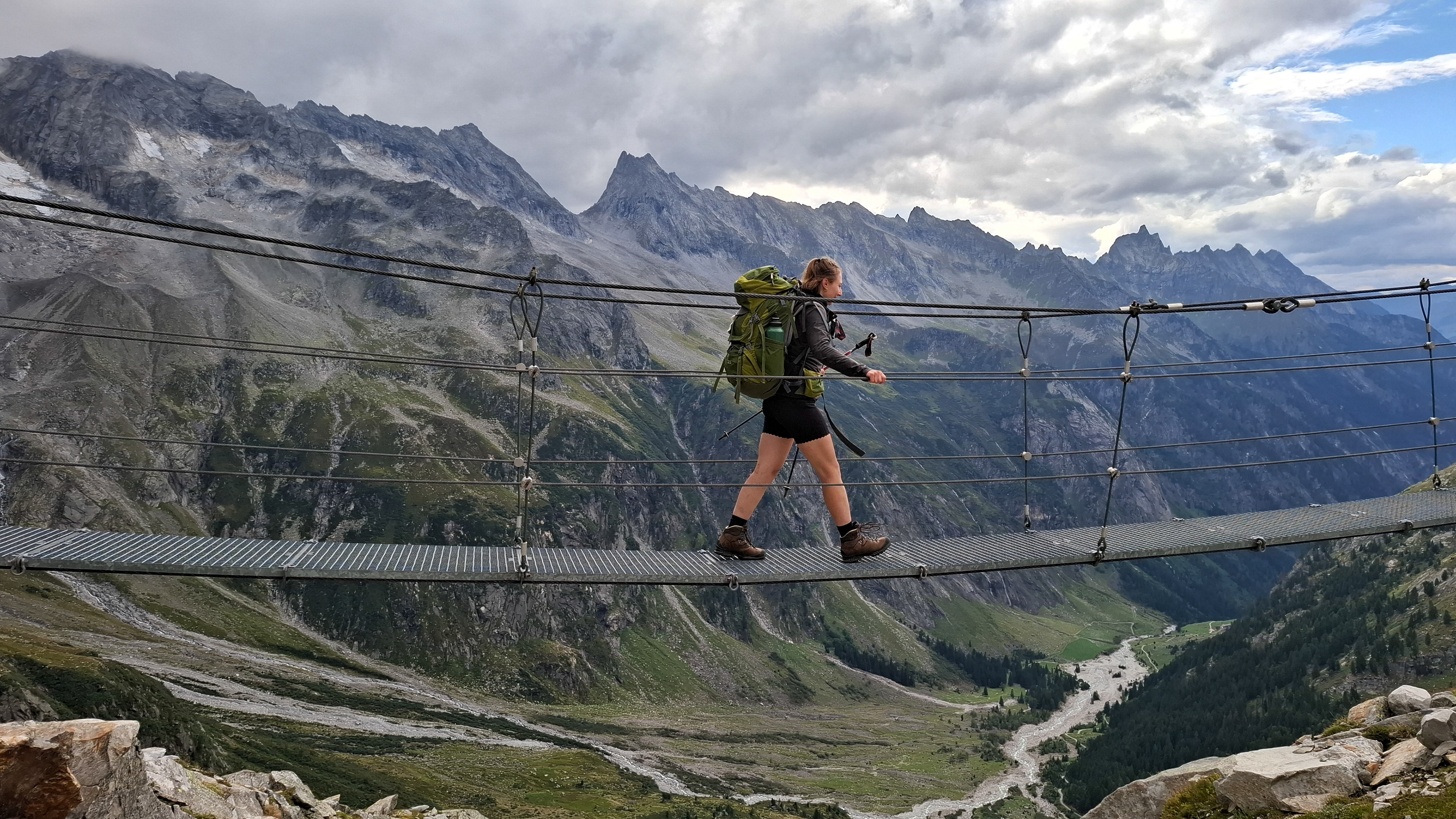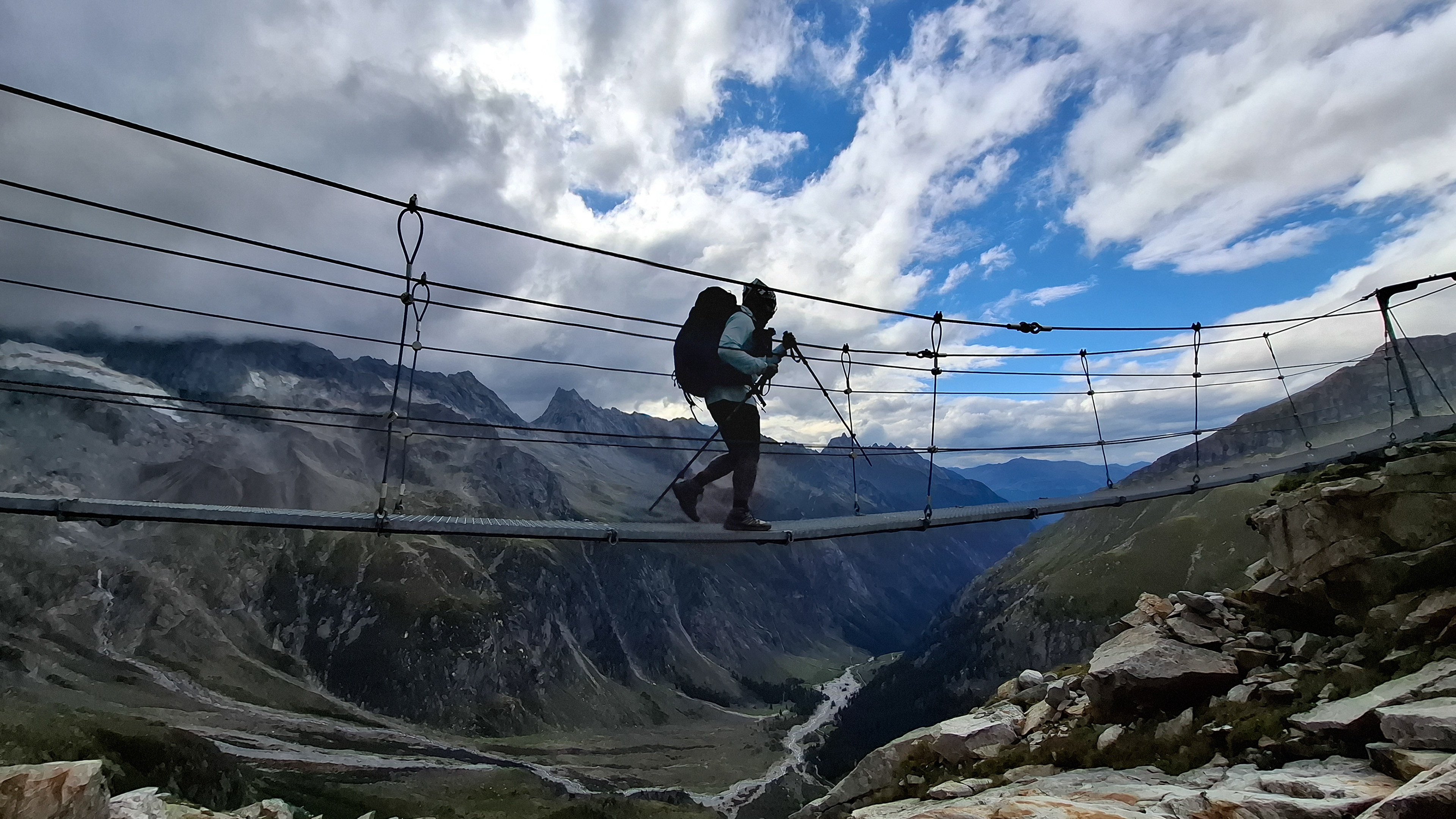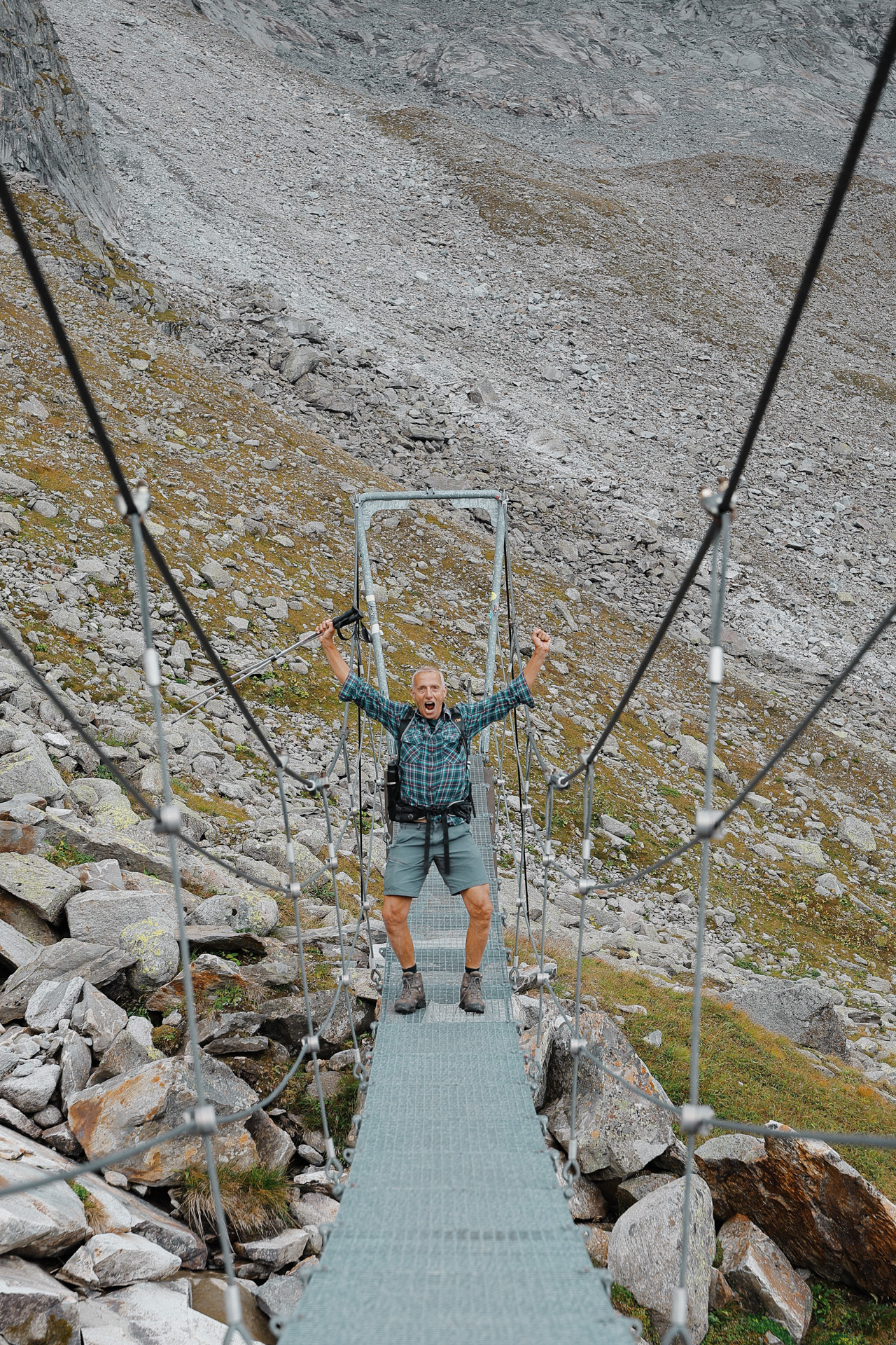 Another suspension bridge! This is constructed similar to the one by Olpererutte but not as famous probably since this is harder to get to, and there's no lake in the background. Han stayed back to take pictures of us.