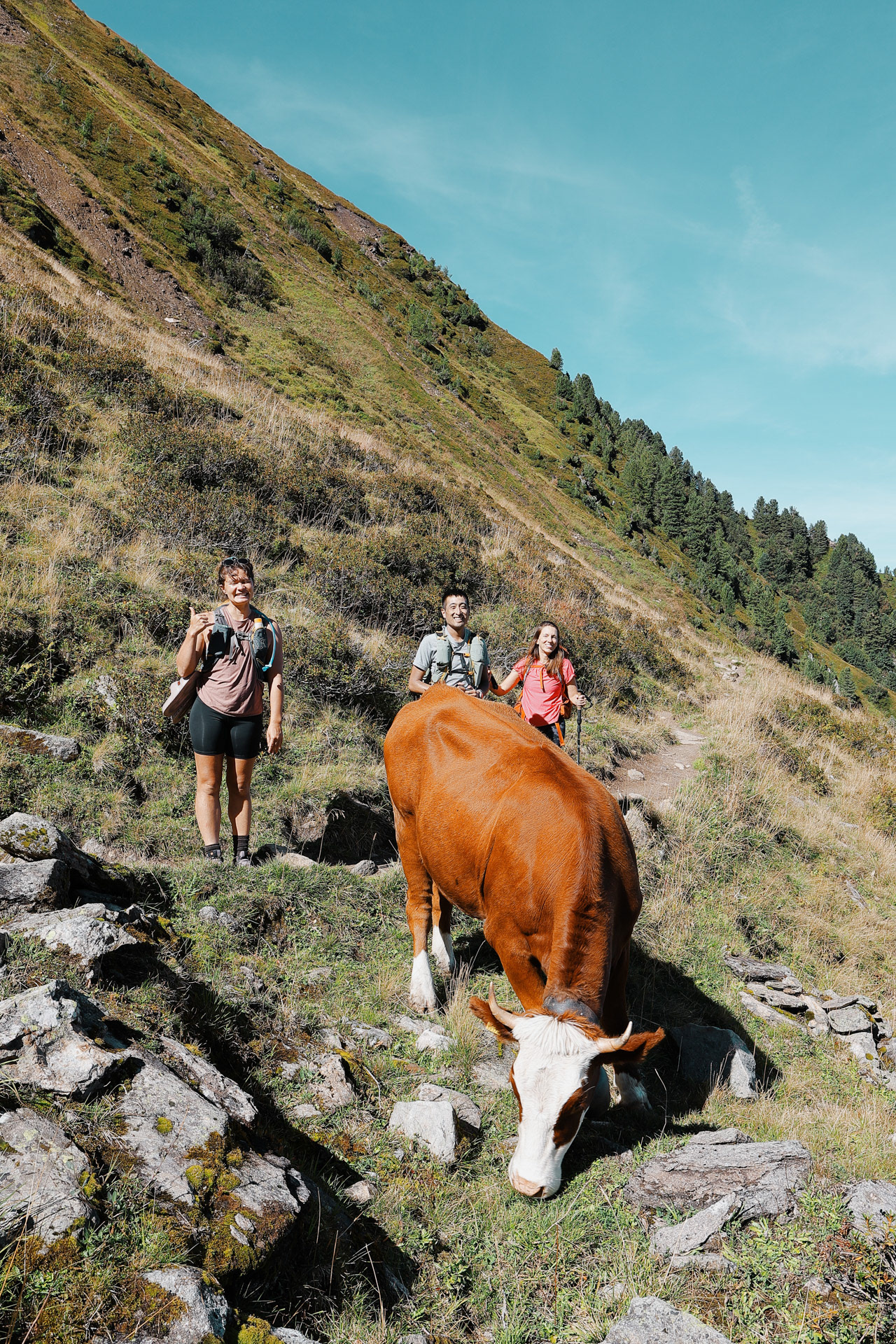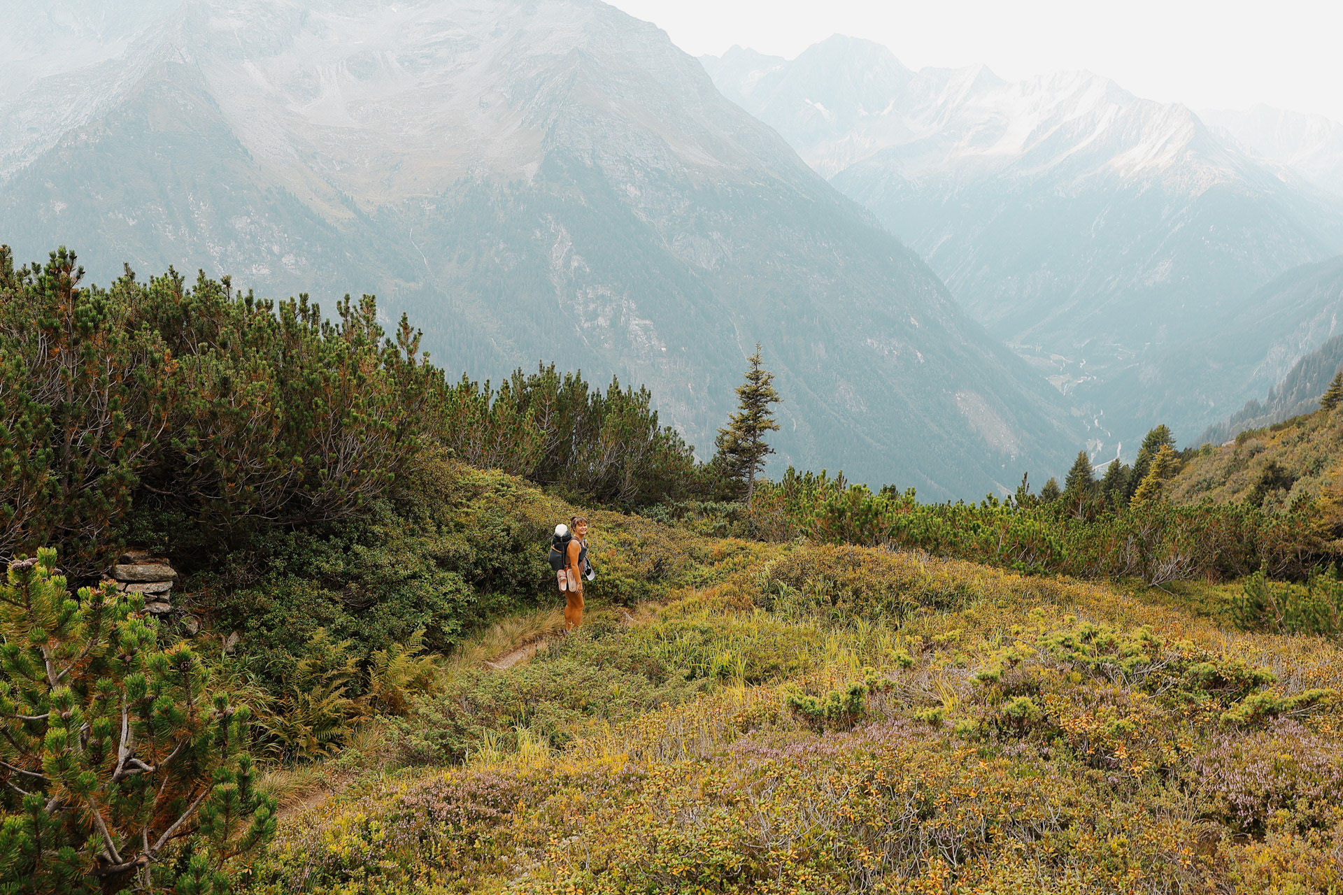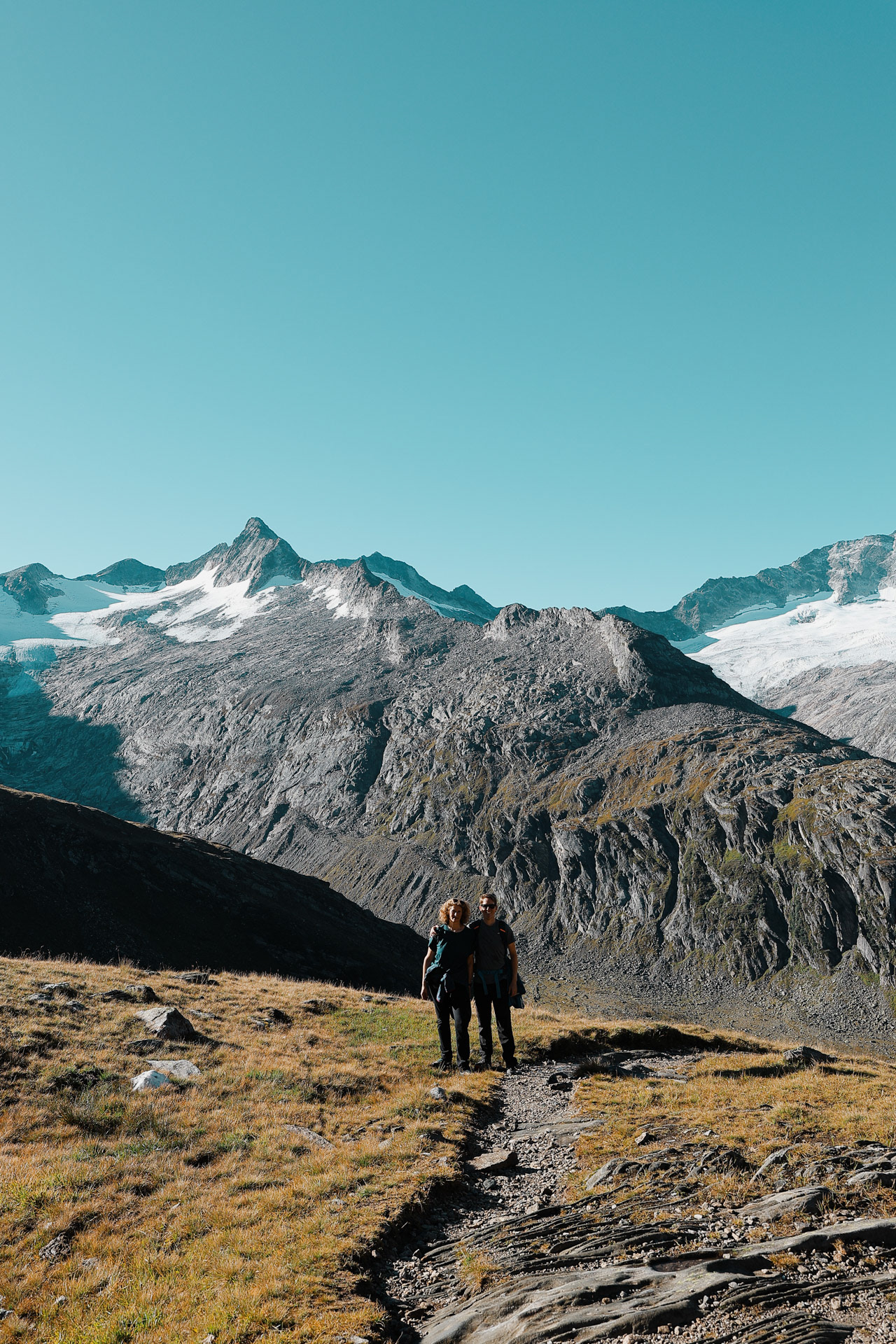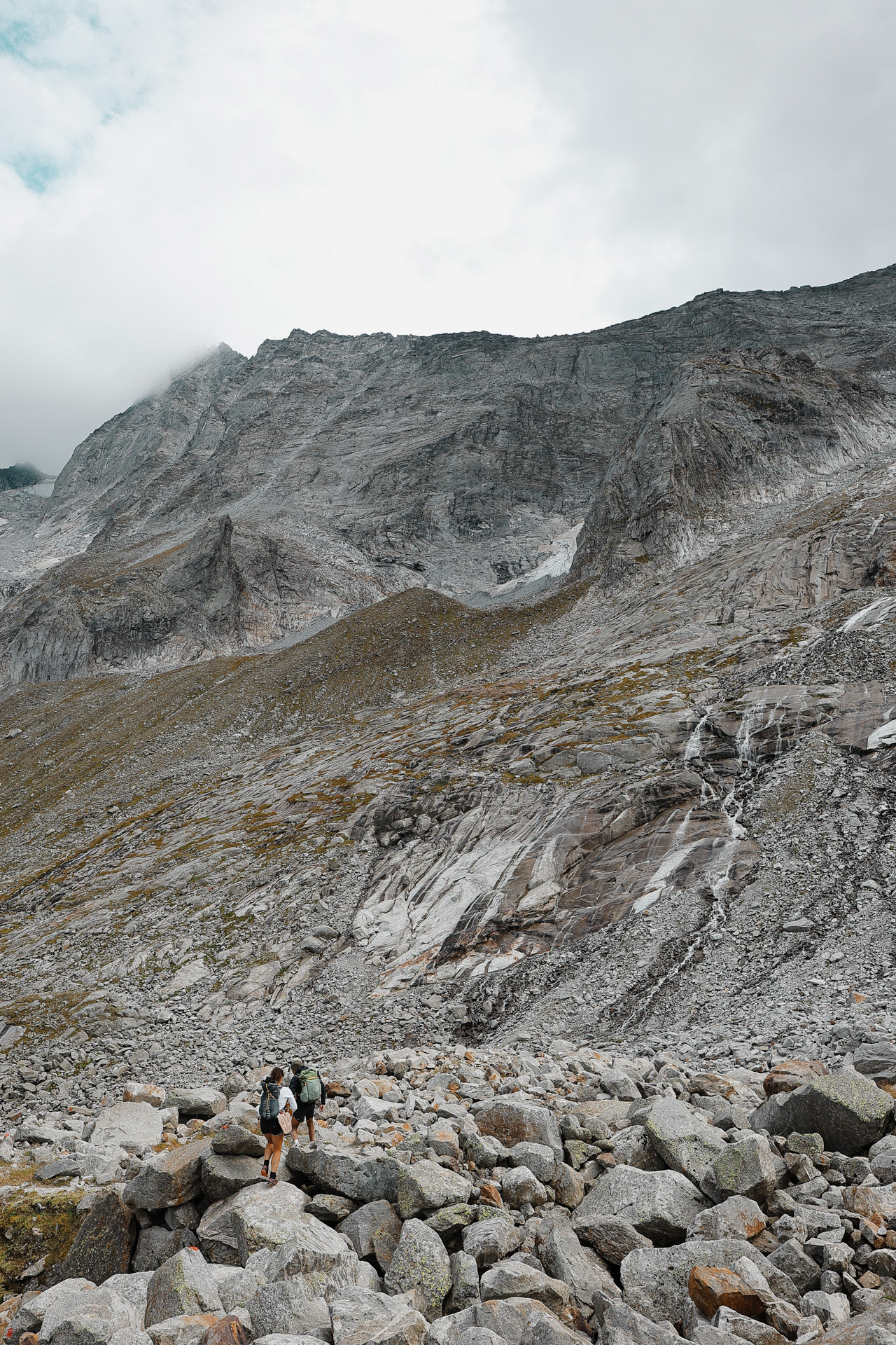 Slowly but surely heading down from Olpererhutte. This hike is all descent and you hike by a waterfall (pictured later) the whole time. We passed a lot of people who are day-hiking to the hut (probably to have some beer and Kaiserschmarrn).