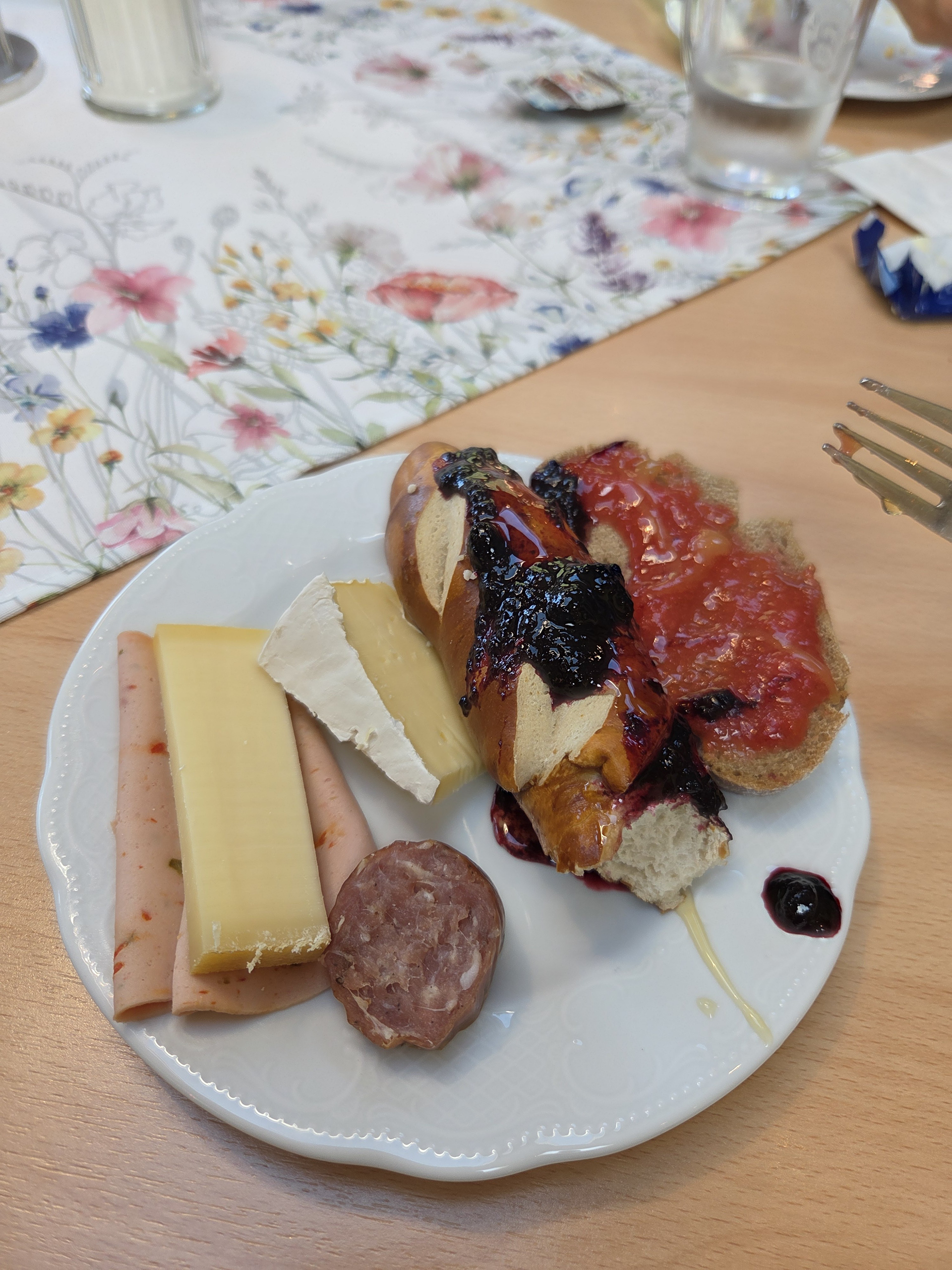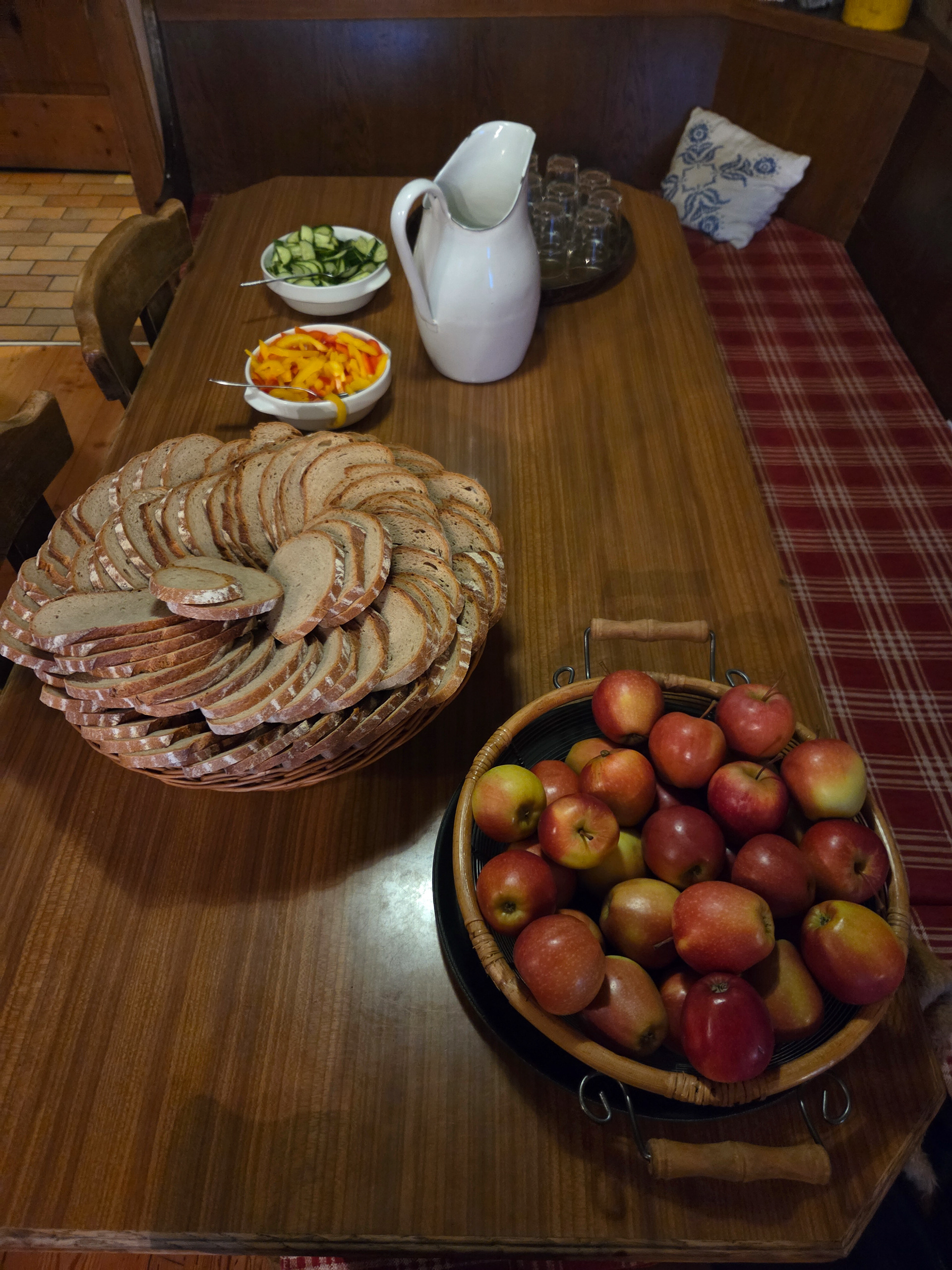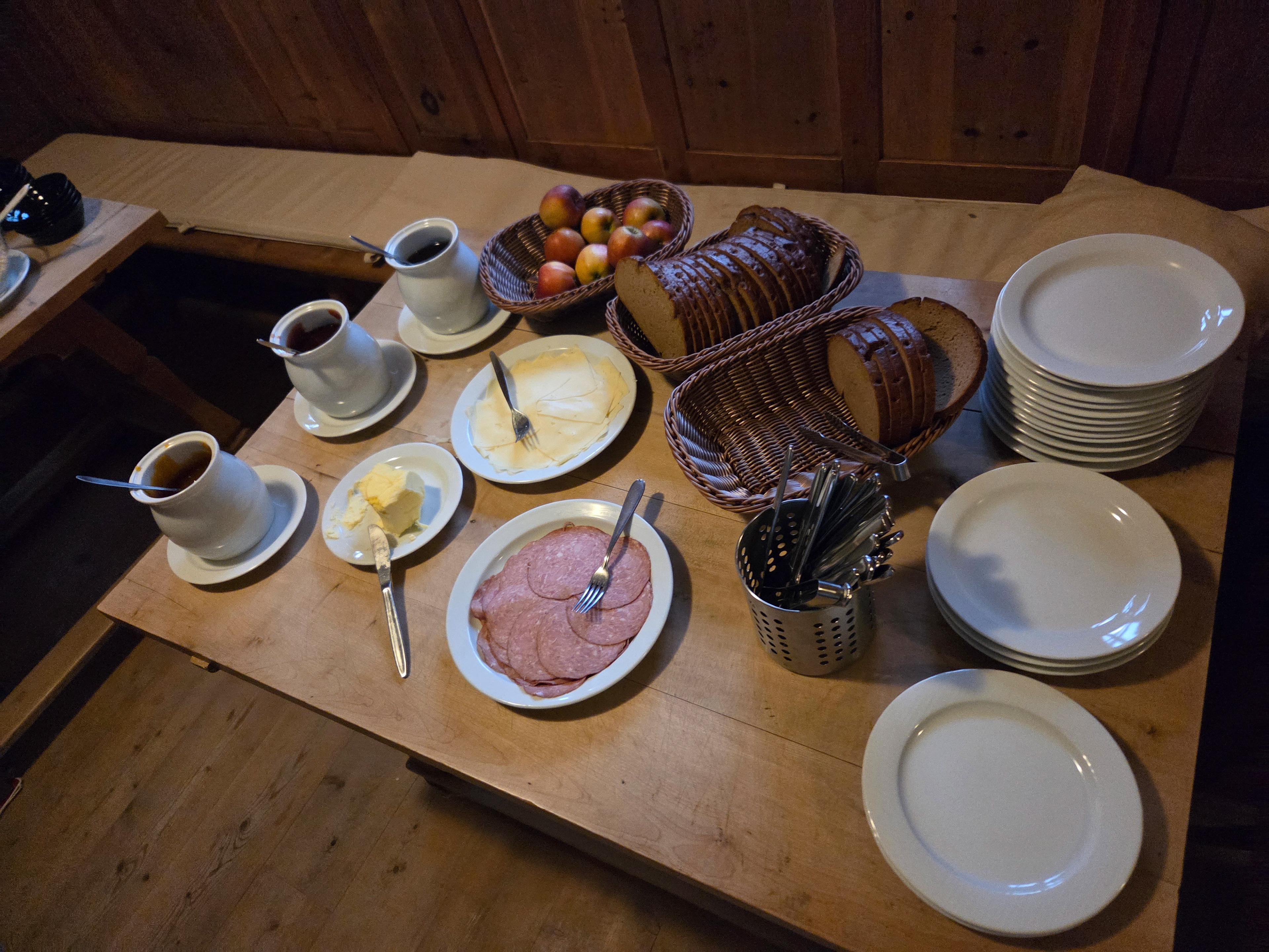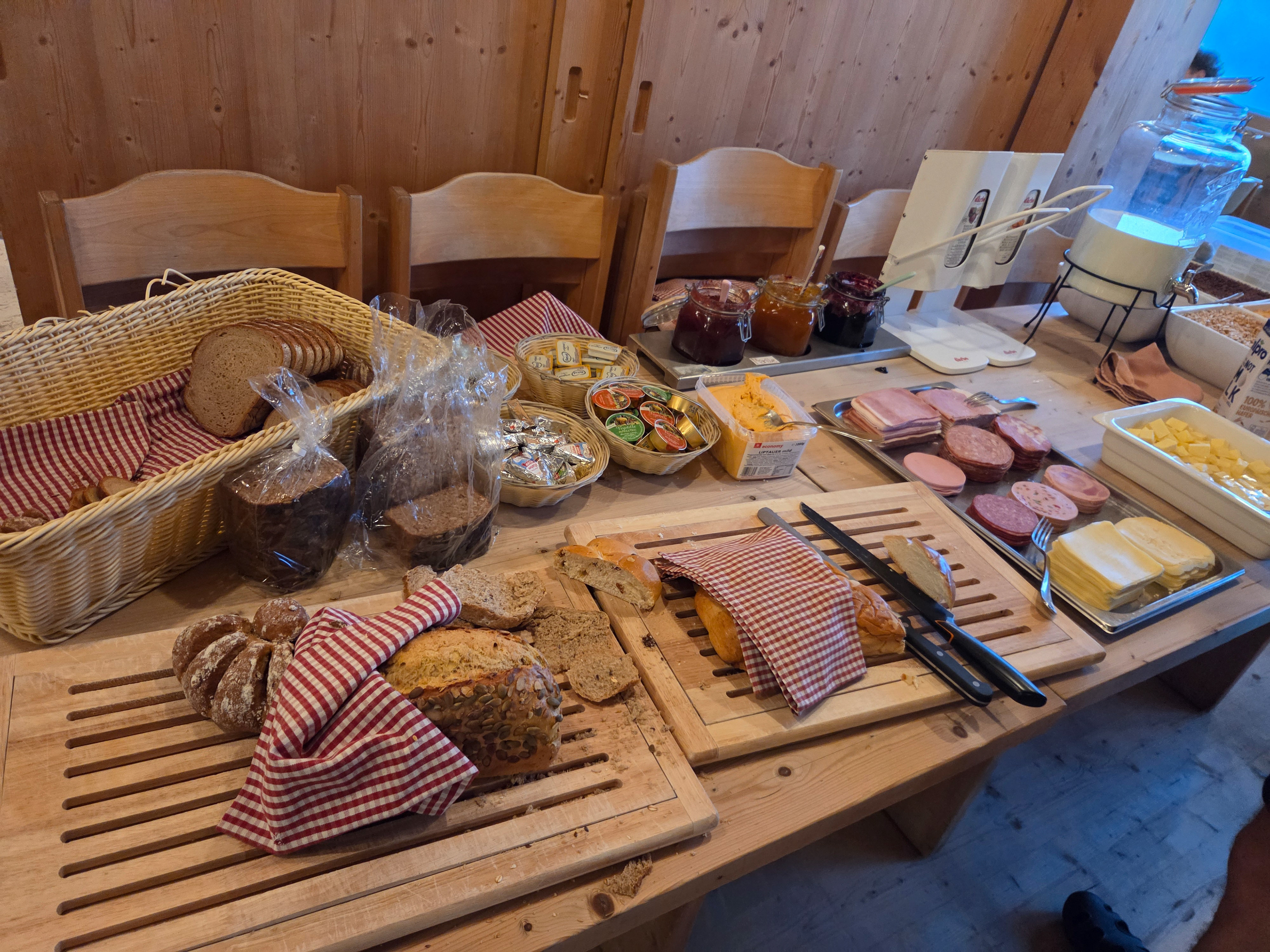 We start with breakfast at the Stoanerhof, with an amazing assortment of breads, cheeses, meats, and homemade jellies and jams. In the morning, we see the front desk/owner lady bring in 2 buckets of blueberries, some of which we ate moments later. Apparently she used the rest for jam.