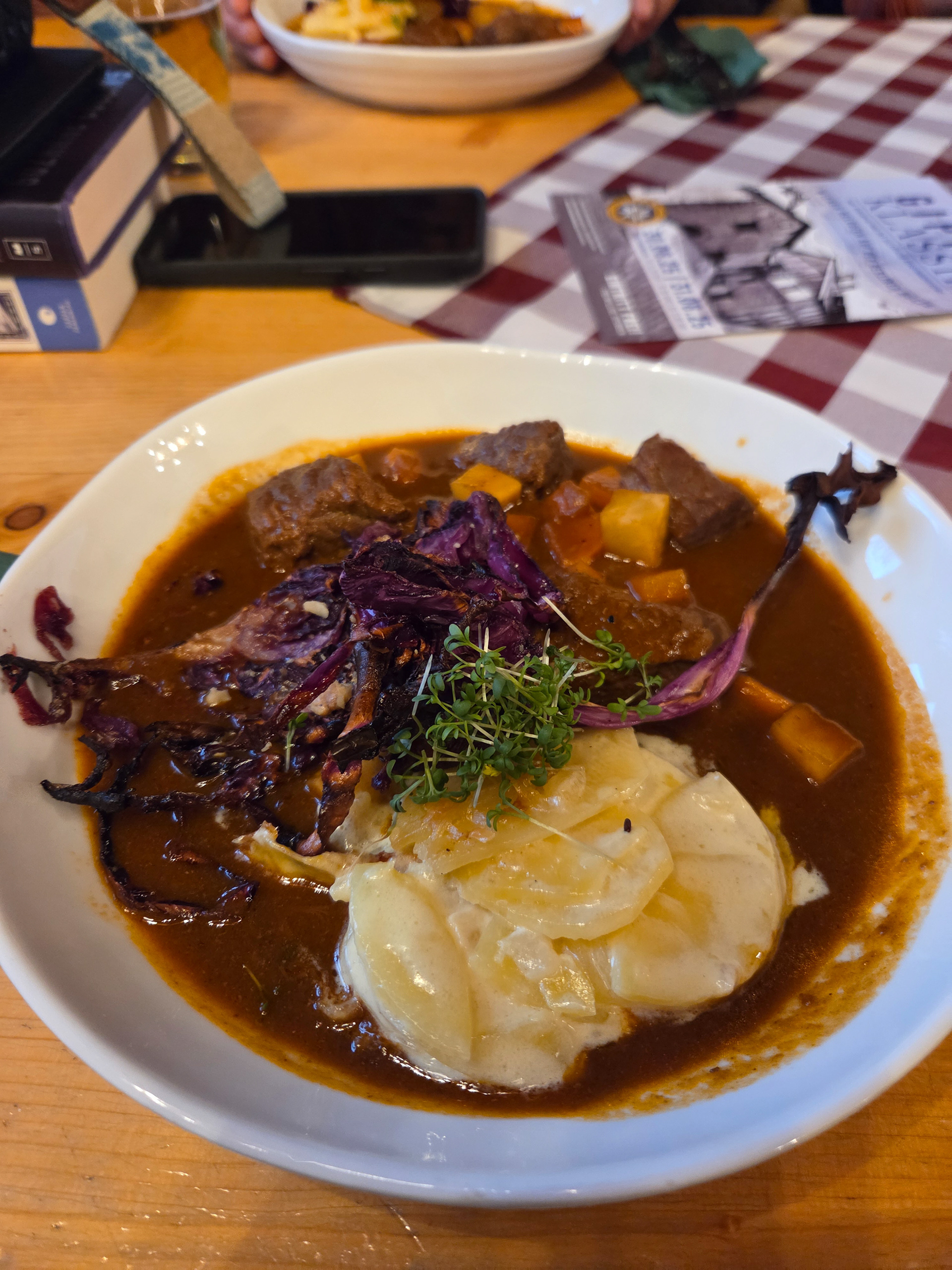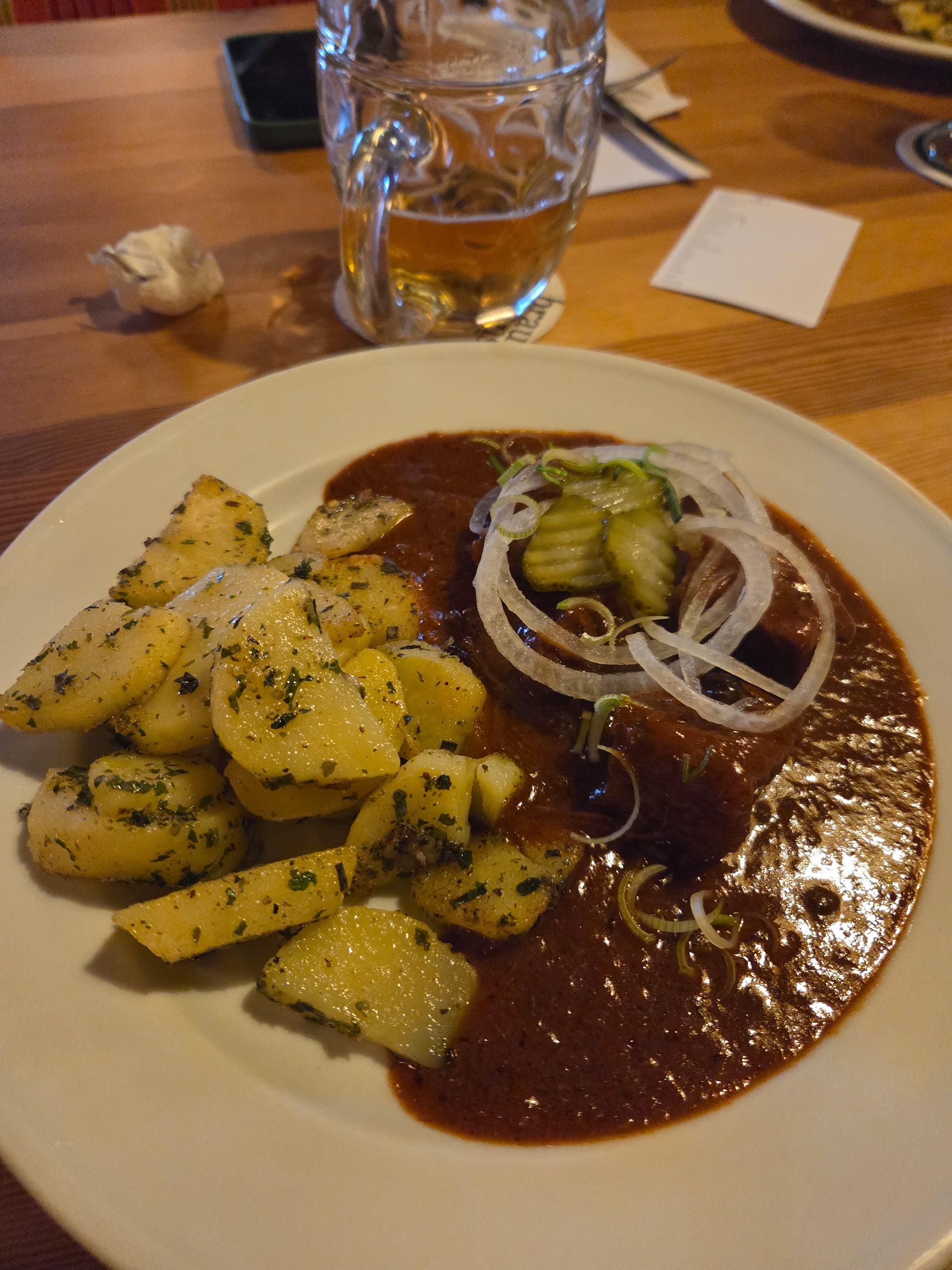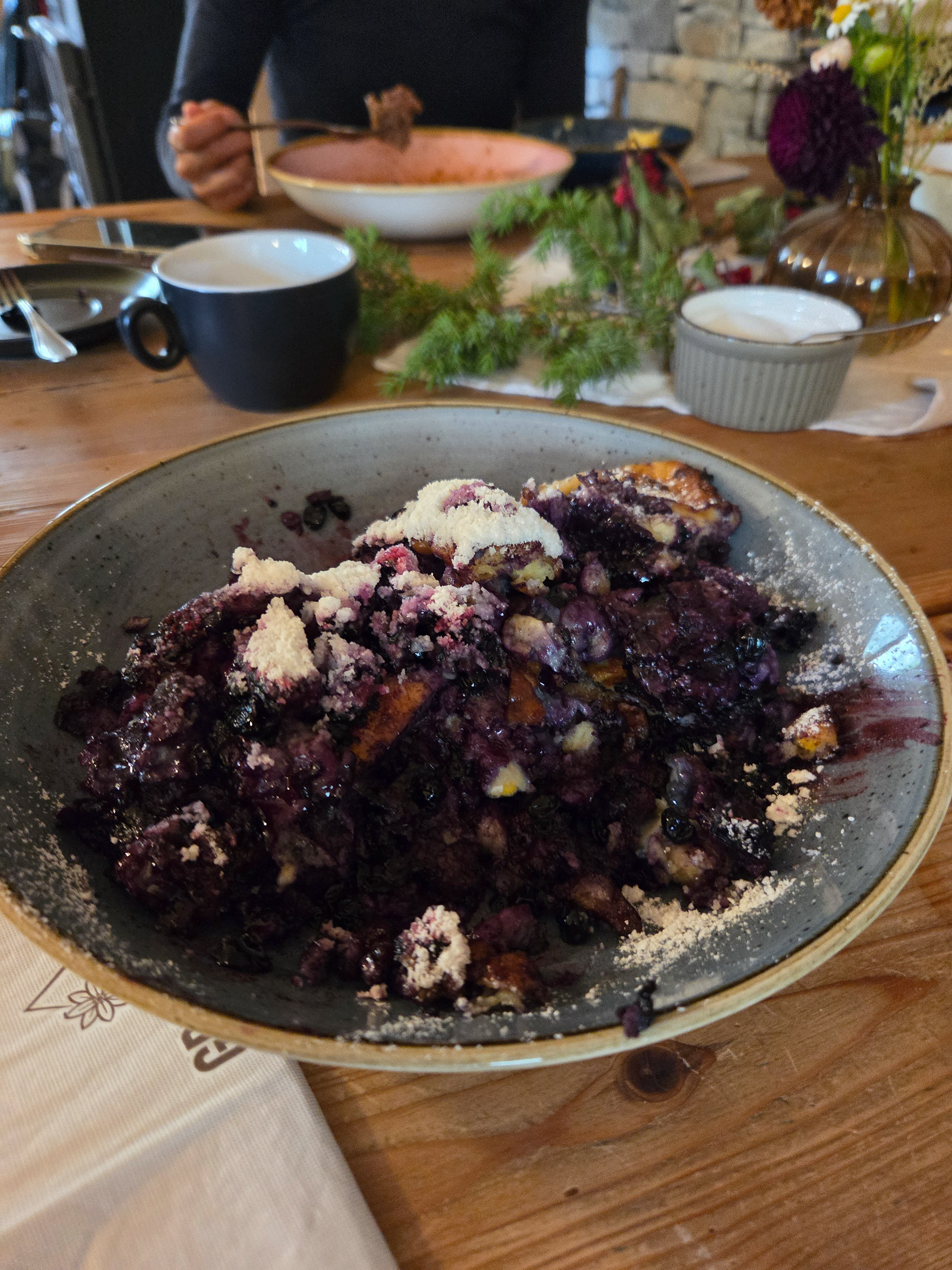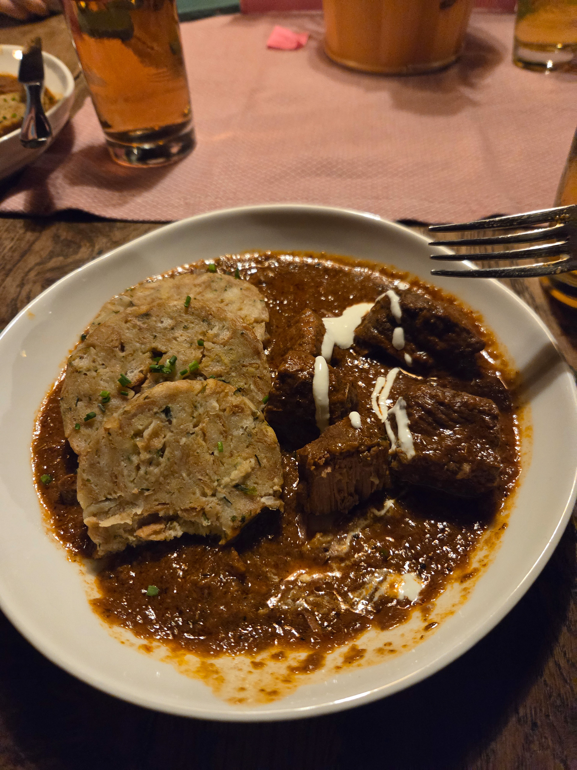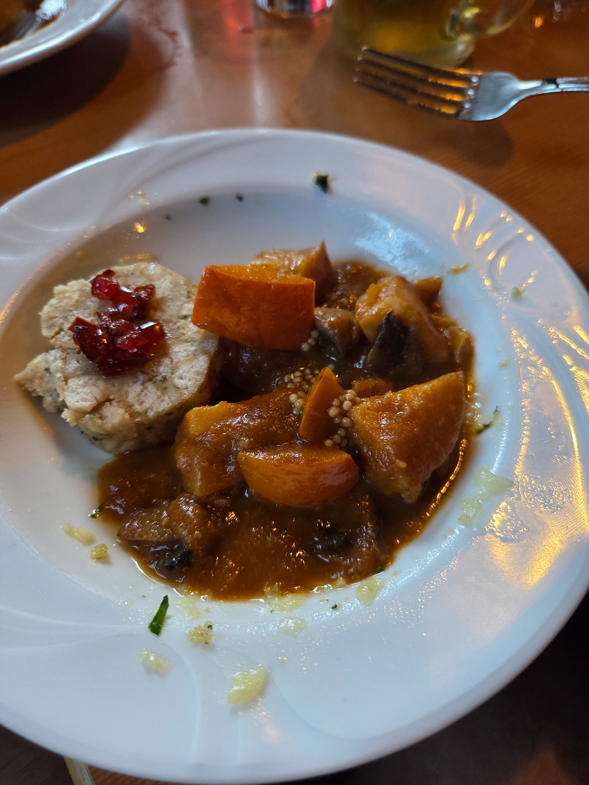 Our first Kaiserschmarrn! It is a pancake type snack/dessert that is fluffy and sometimes filled with fruit (blueberries is common) and also dipped in a sauce (apple is common). This is one of our favorite Austrian dishes. Great to share with friends but also finishable by yourself.