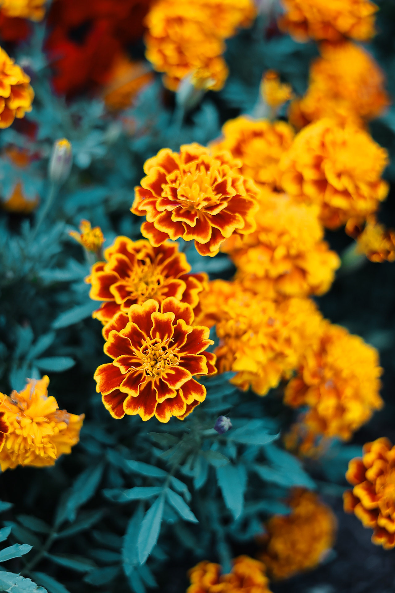 Marigolds in a flower bed.