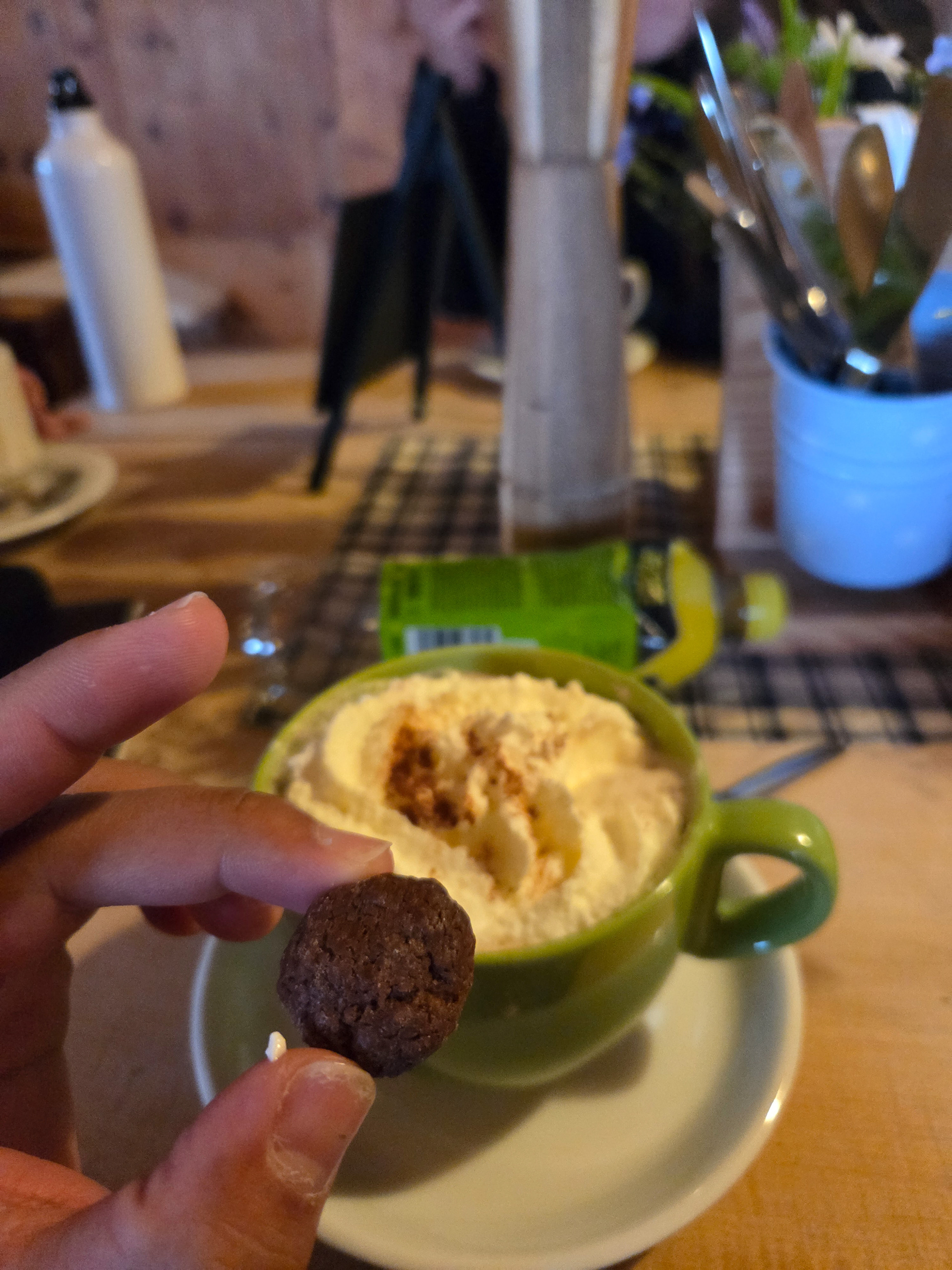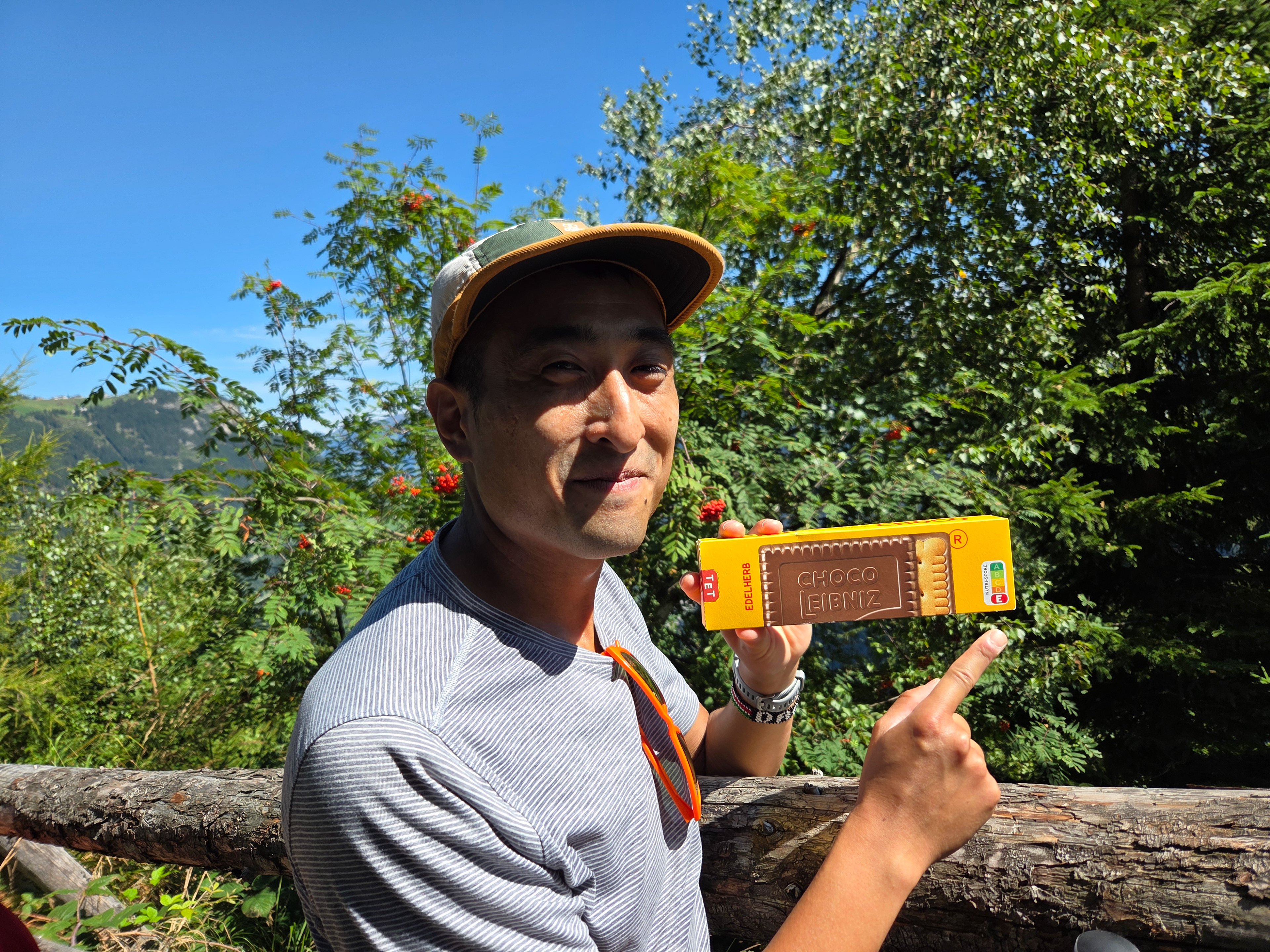 An afternoon snack! Note the people in the back between Eva and I's heads (click to zoom), might be important for later...