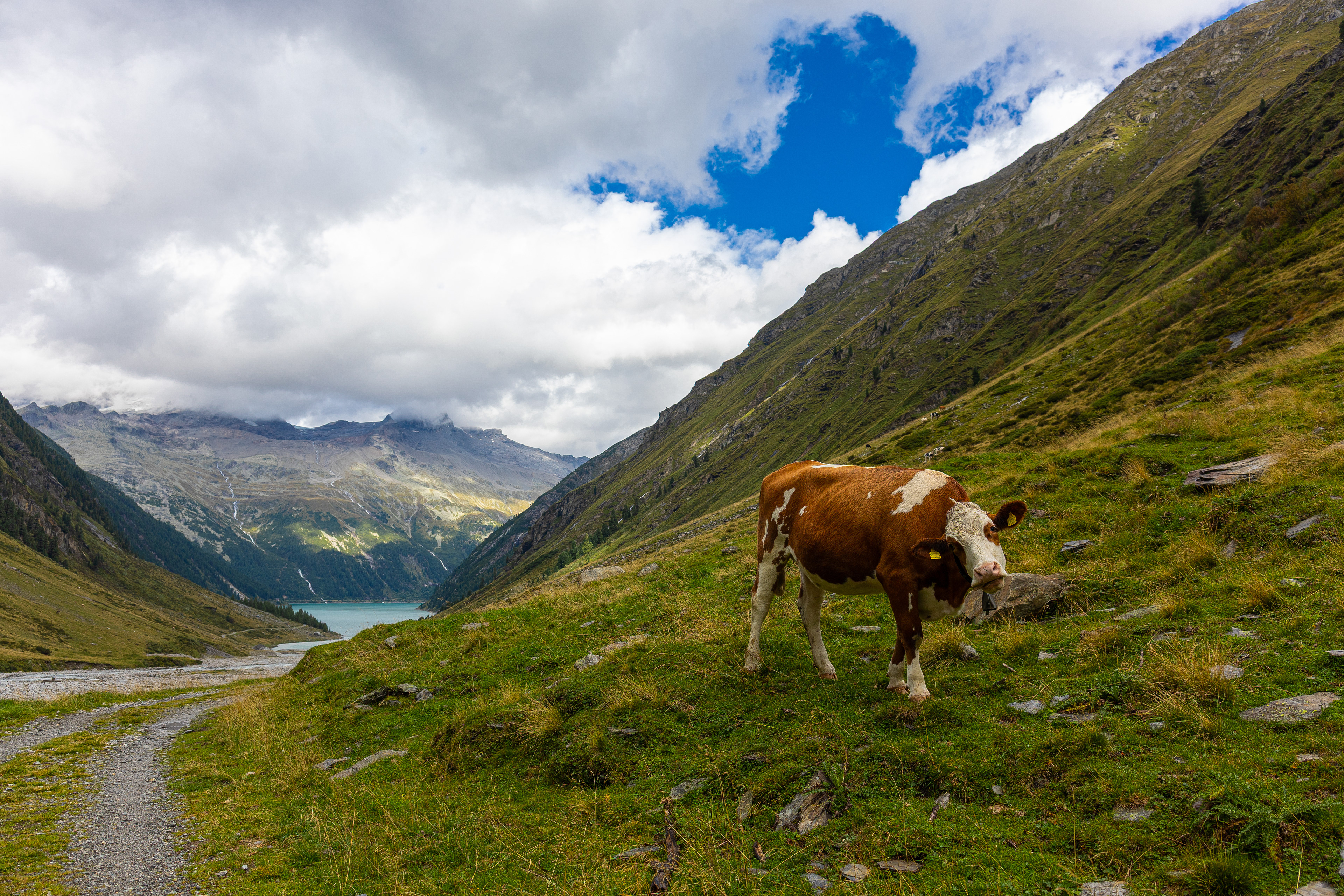 This section of the trail leads along the Schlegeis reservoir on a road southeast toward Furtschaglboden . Descent 600 m, ascent 500 m, walking time approximately 4 hours. -Wiki