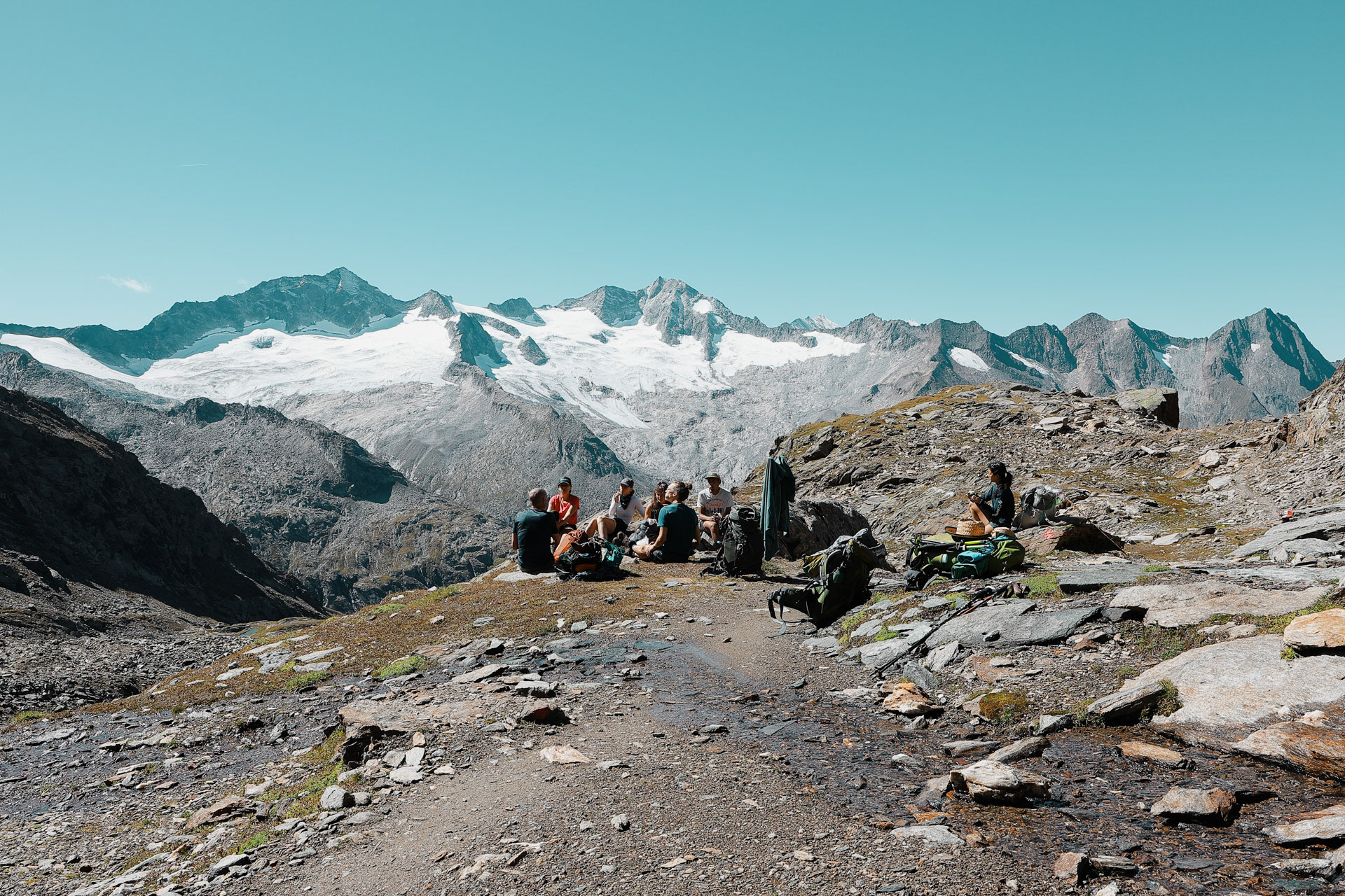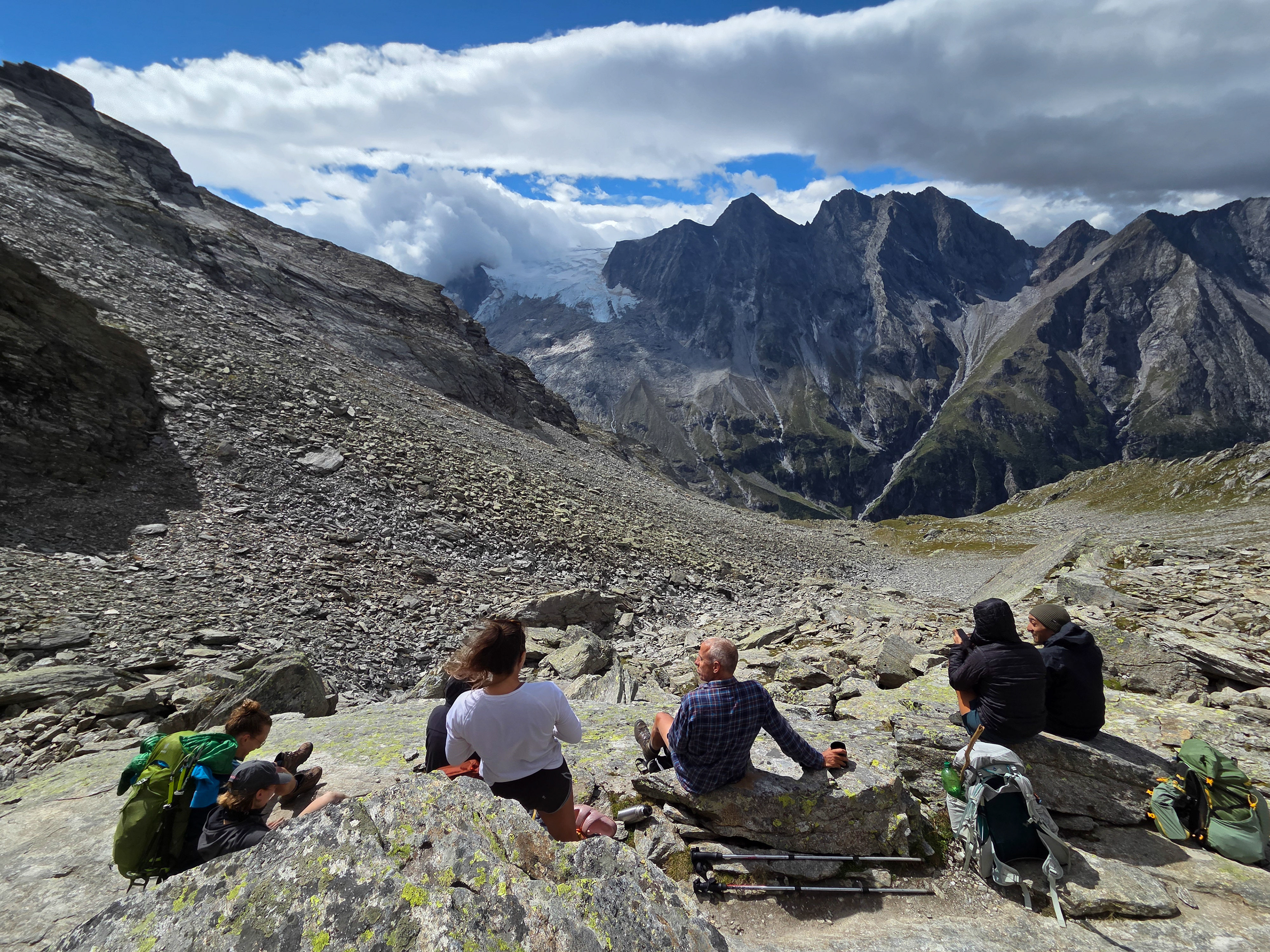 A view from behind everyone at lunch before we go over the pass.