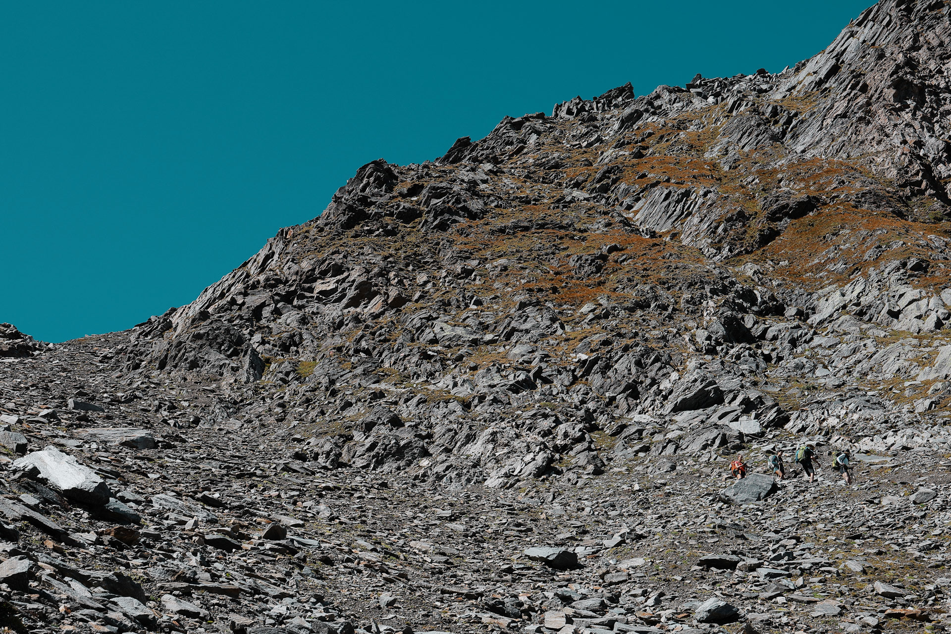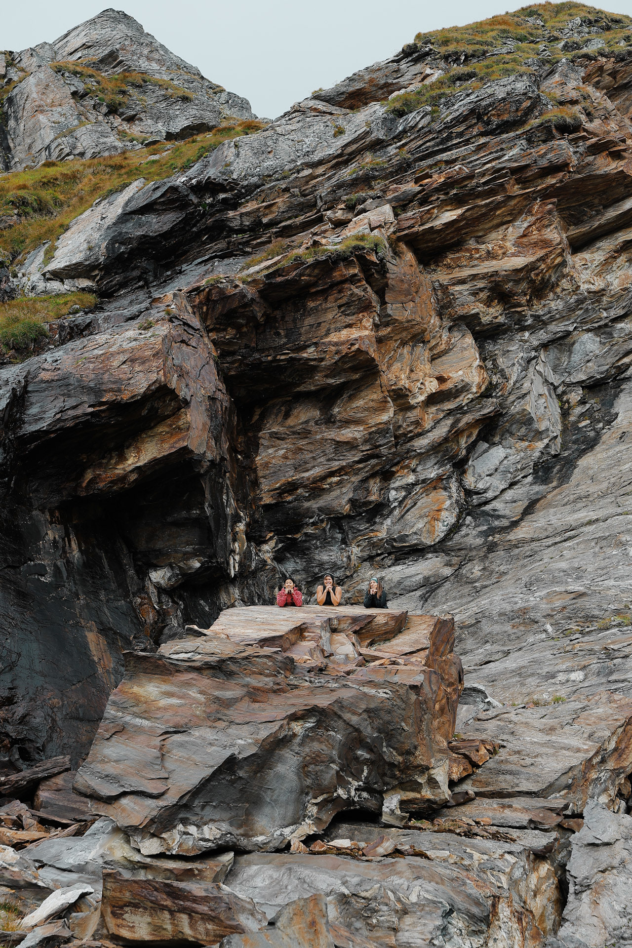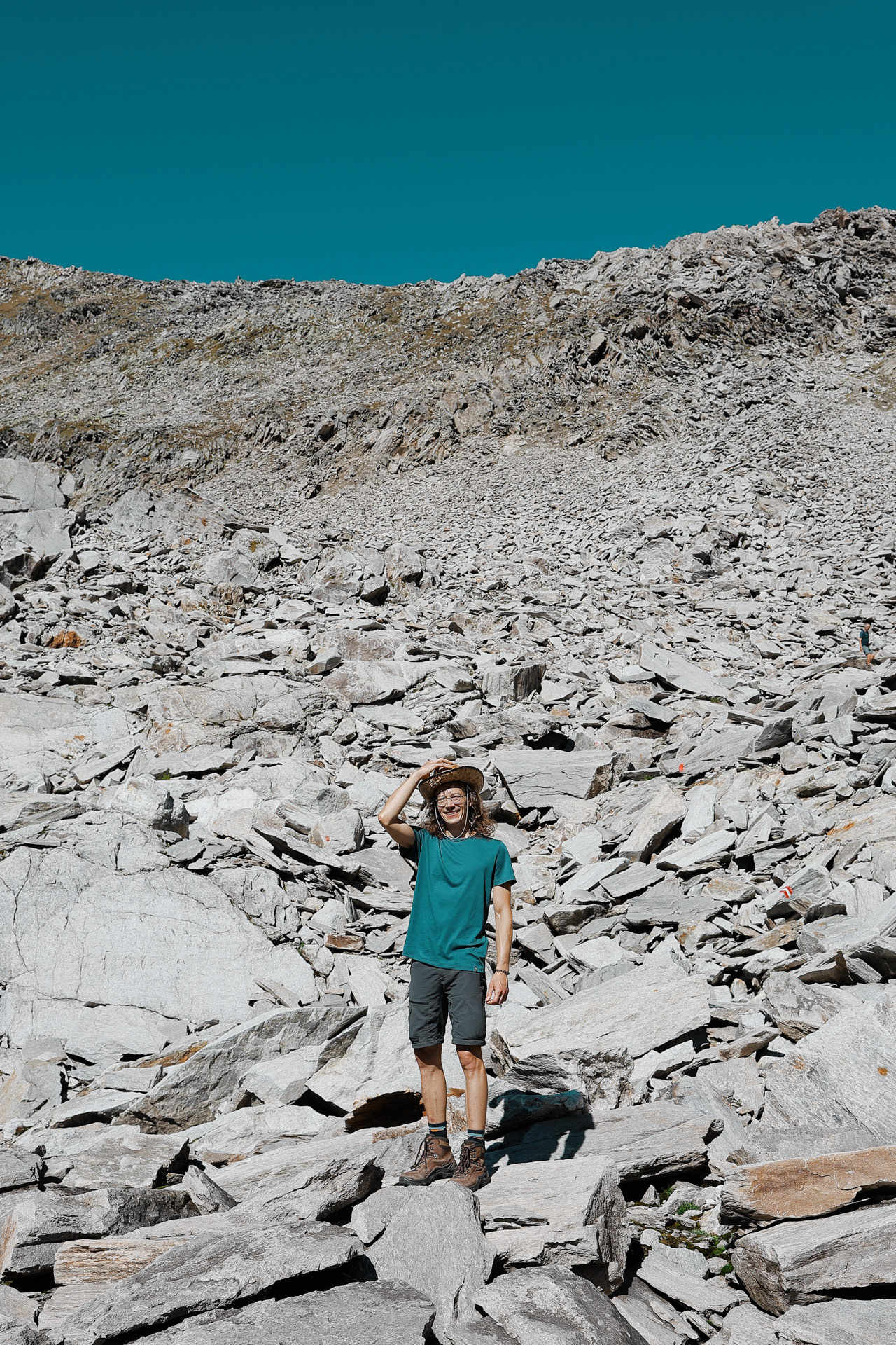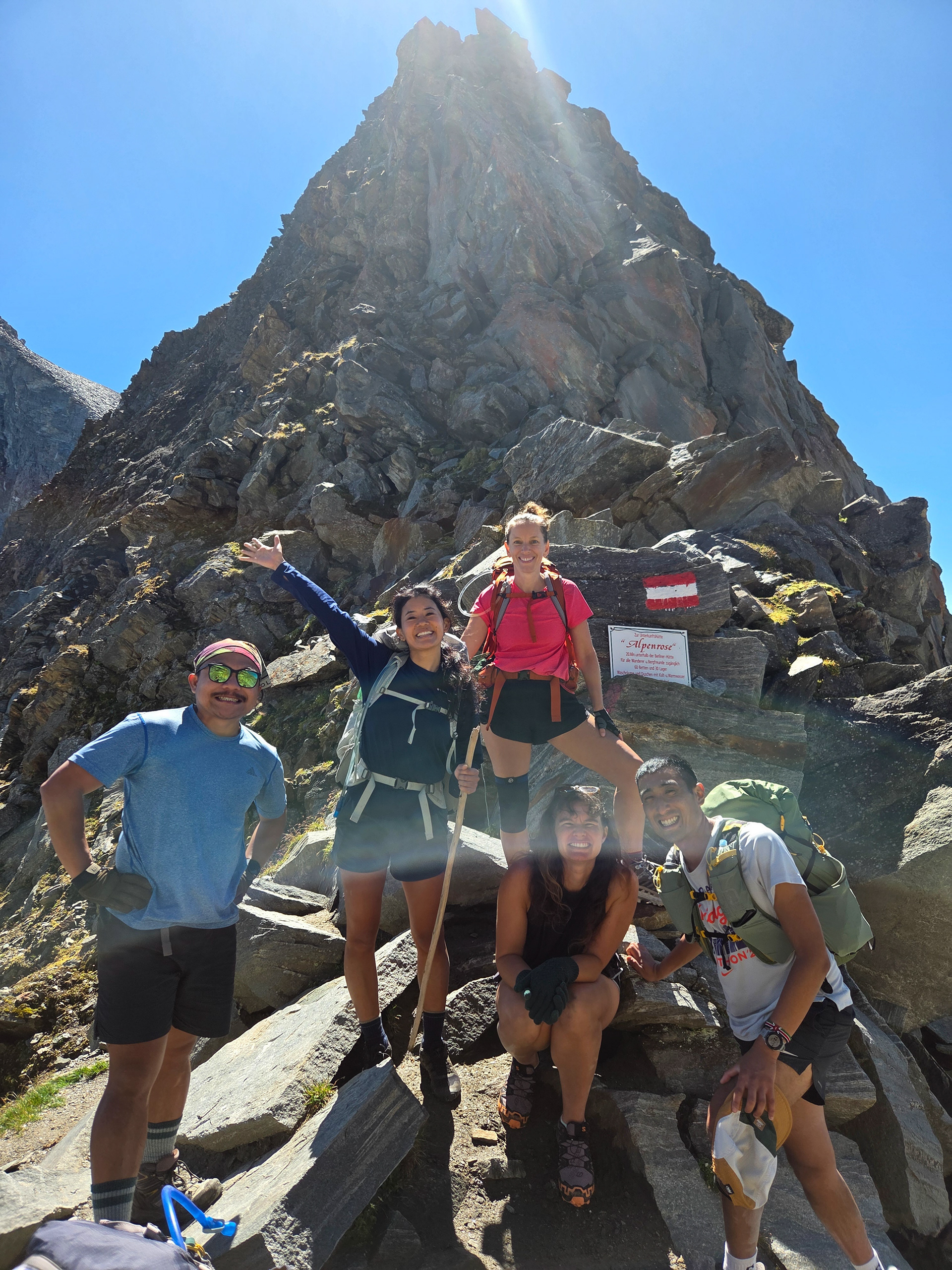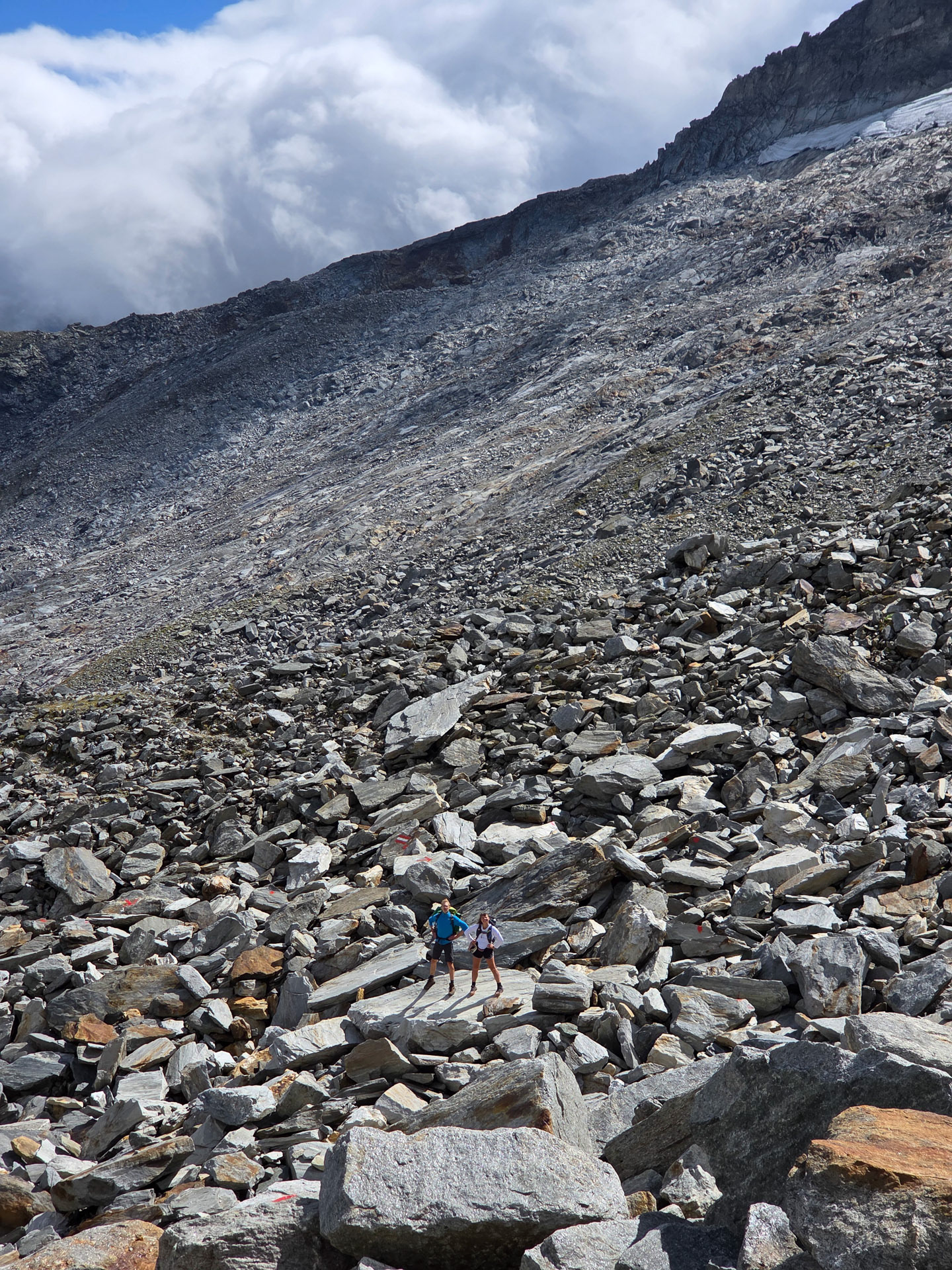 Malte and Morgan showing the scale of the rock trail. Though there are trail markers (the Austrian flags), you still have to figure out which rocks to step on, jump off of, skip, or be careful on as all of these rocks are loose. It made for a fun game though since you don't know if a rock will shake or be stable until you step on it. The person in the front became the guinea pig/minesweeper!