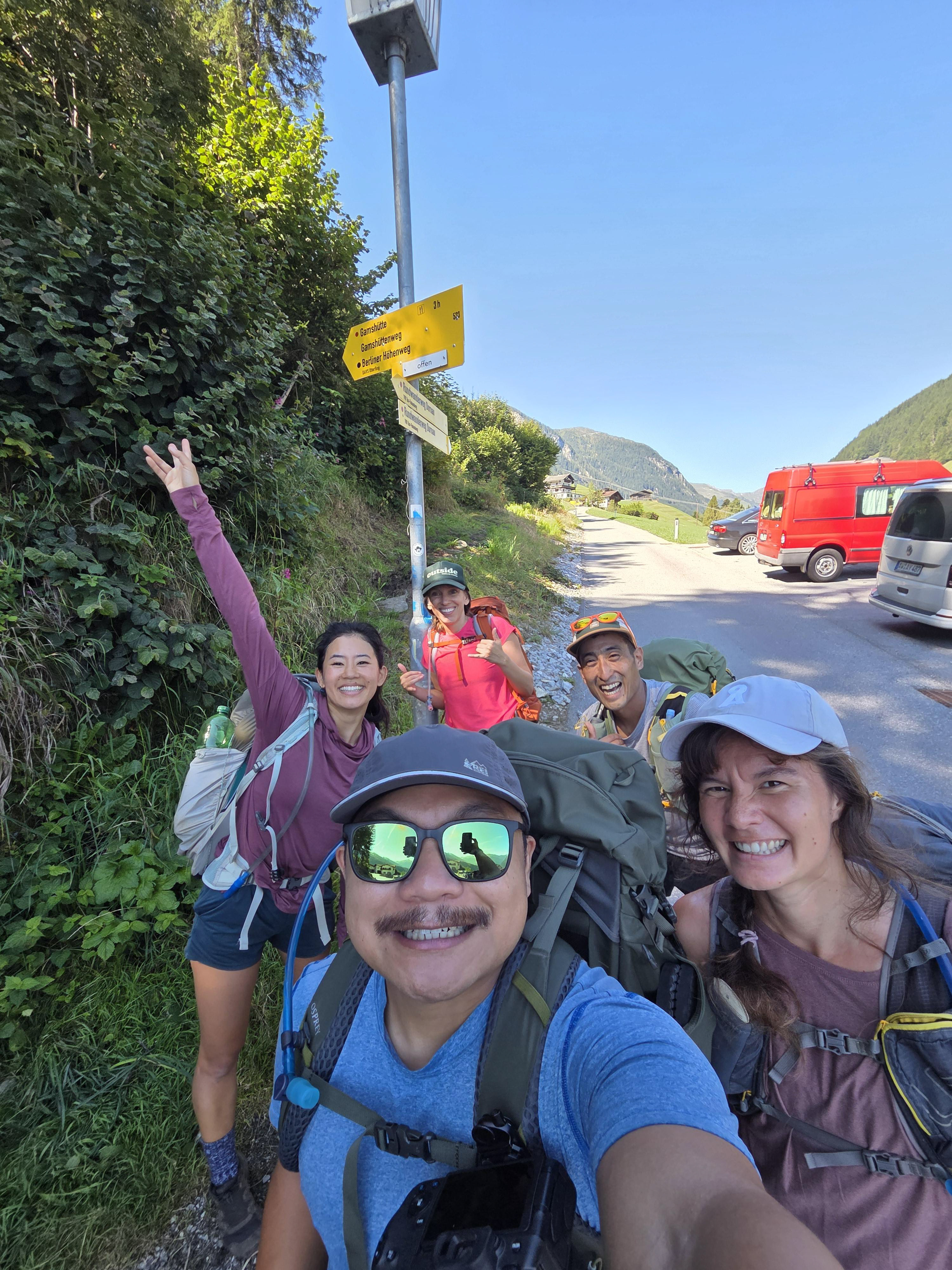 Our sign pic with Greizer. For this day we decided that we would do an extra hike: Gigalitz Peak which is an extra 4 hours. Eva and Einny decide to stay back and meet us at the path.