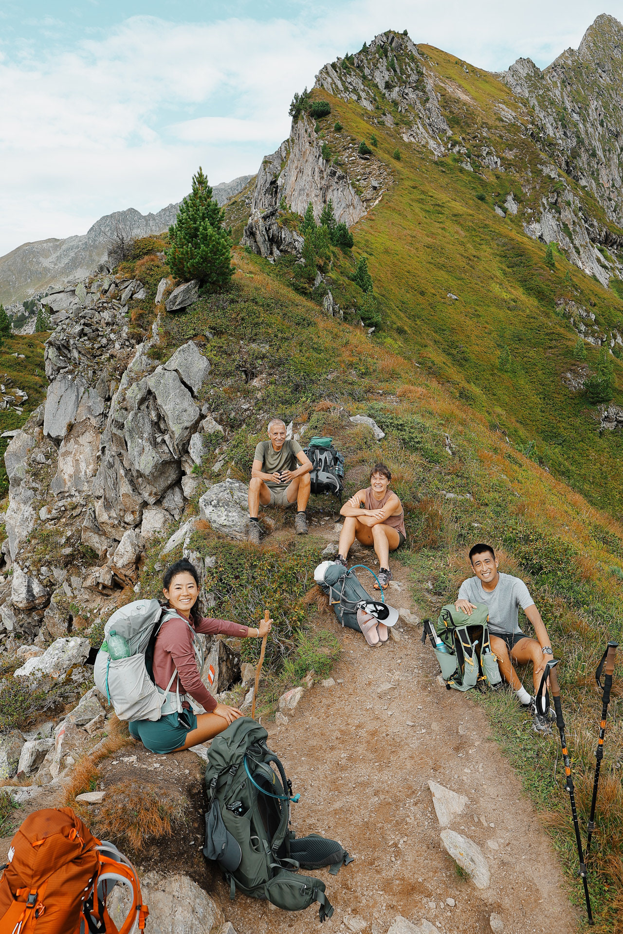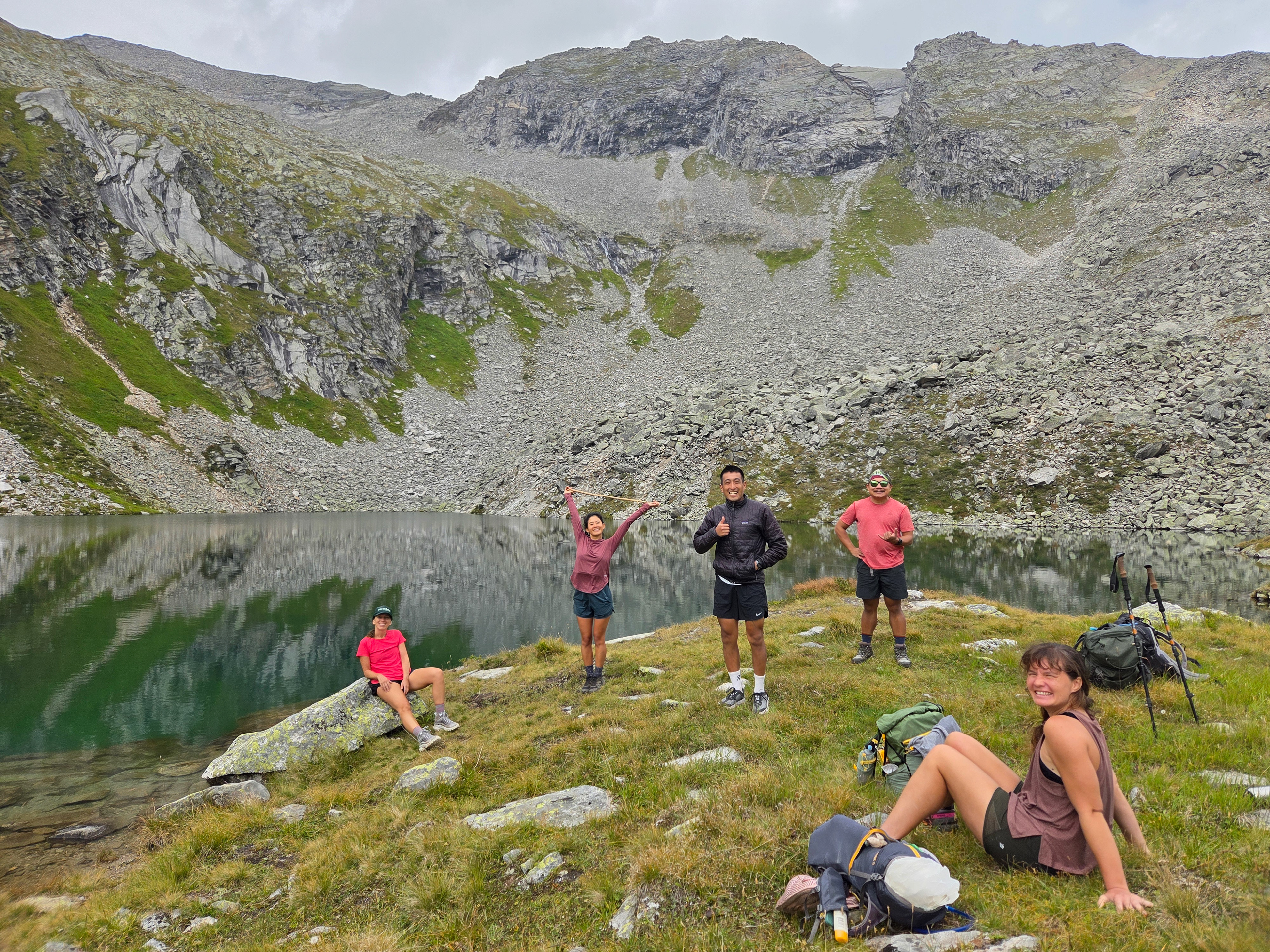 Mountain passes hit different when you don't have hail and rain. Since Eva's knees have been bothering her, especially on the downhills, Han, Malte, and I took some stuff from her pack to help her with the weight. Though I was really slow on the uphills, I could run downhill pretty easily! Falling with style, as one famous astronaut would say.