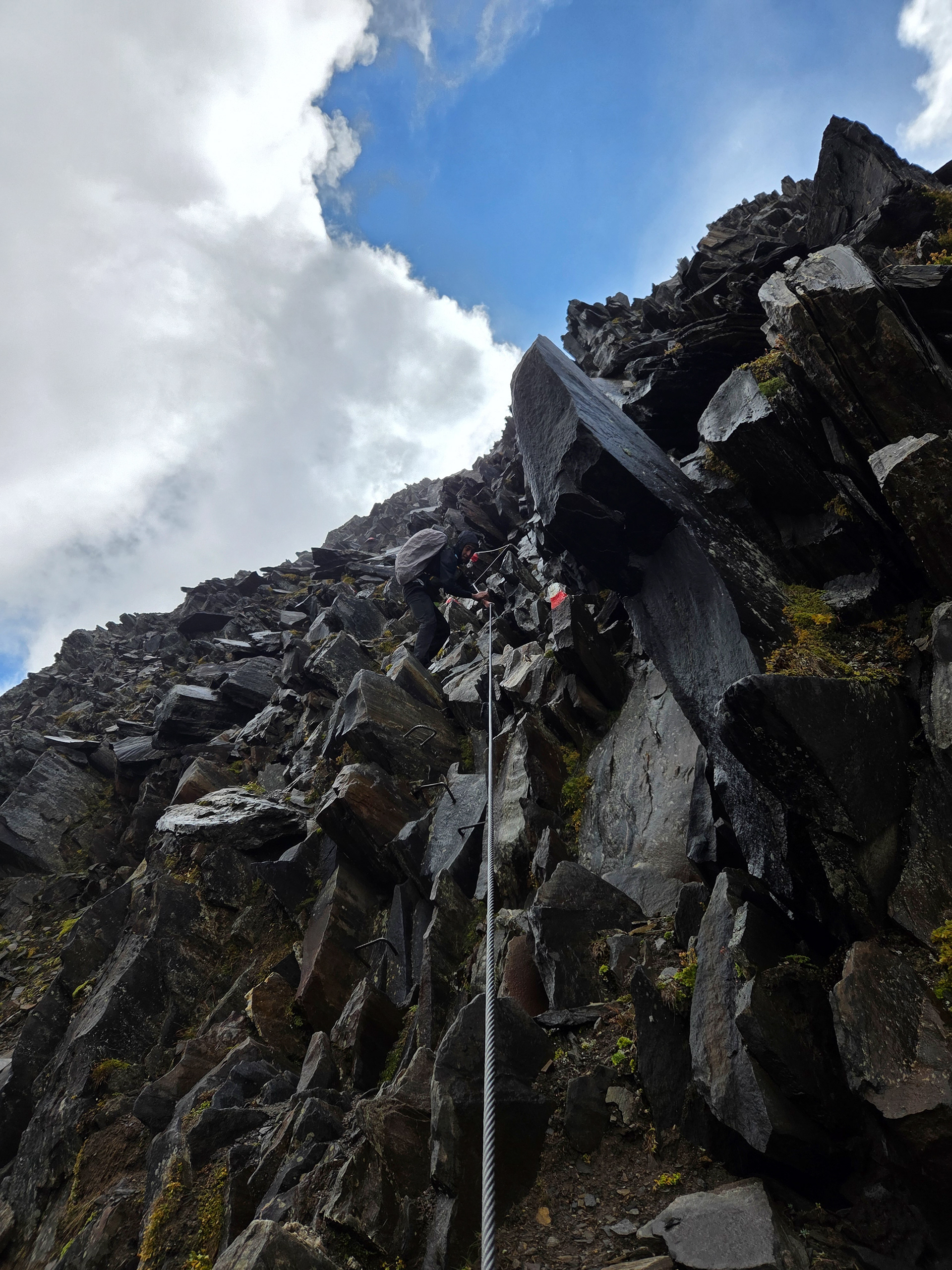 Looking back to the Mörchenscharte. You can't see from this picture but there are two metal cables to go down from the saddle and half of the group picked the top and half of the group picked the bottom one. The ones who picked the top cable are pictured here.