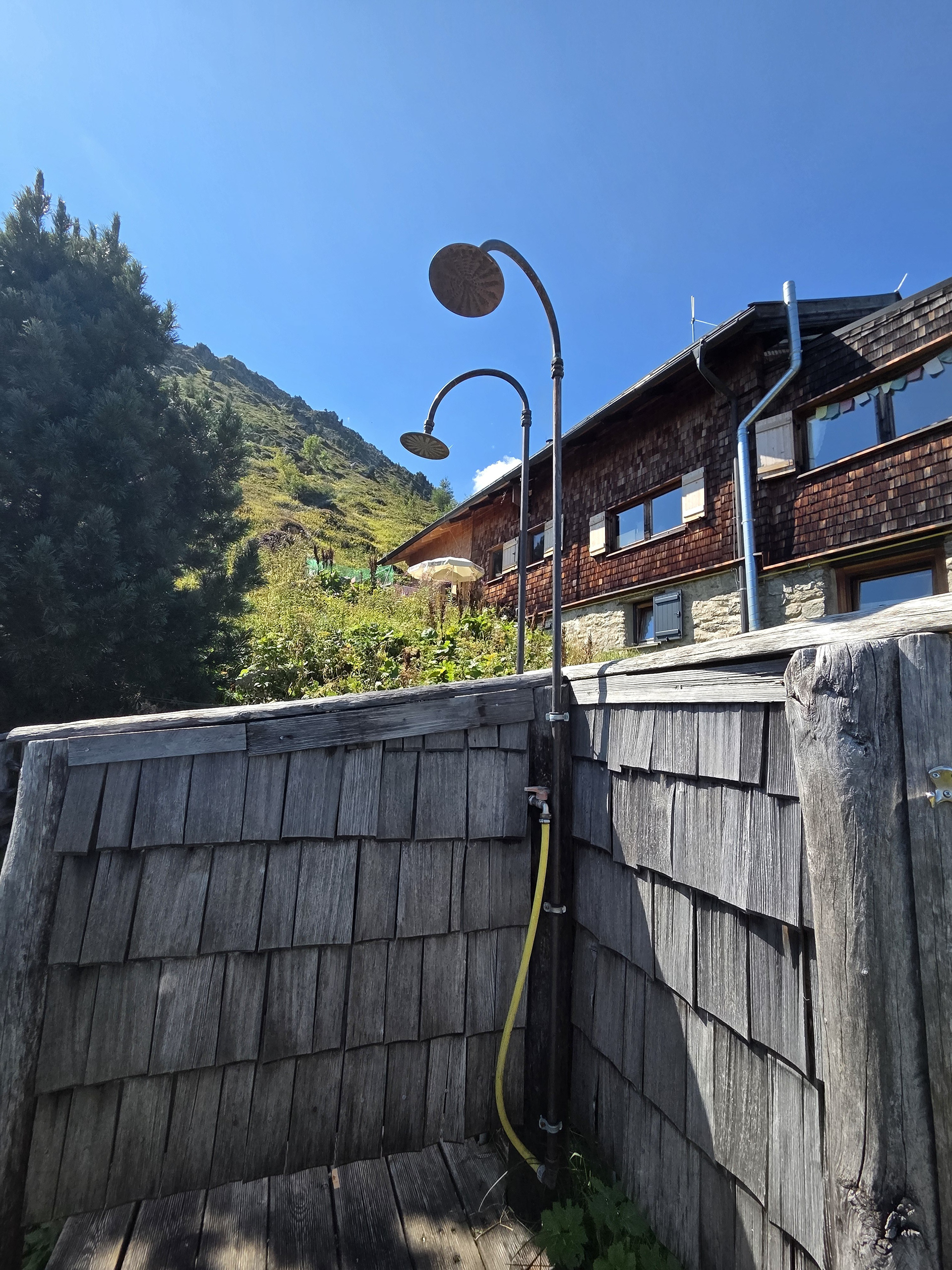 Karl-von-Edel-Hütte in its clear-sky-glory! The outside shower (that I used in the rain the day before is in the shed to the right).