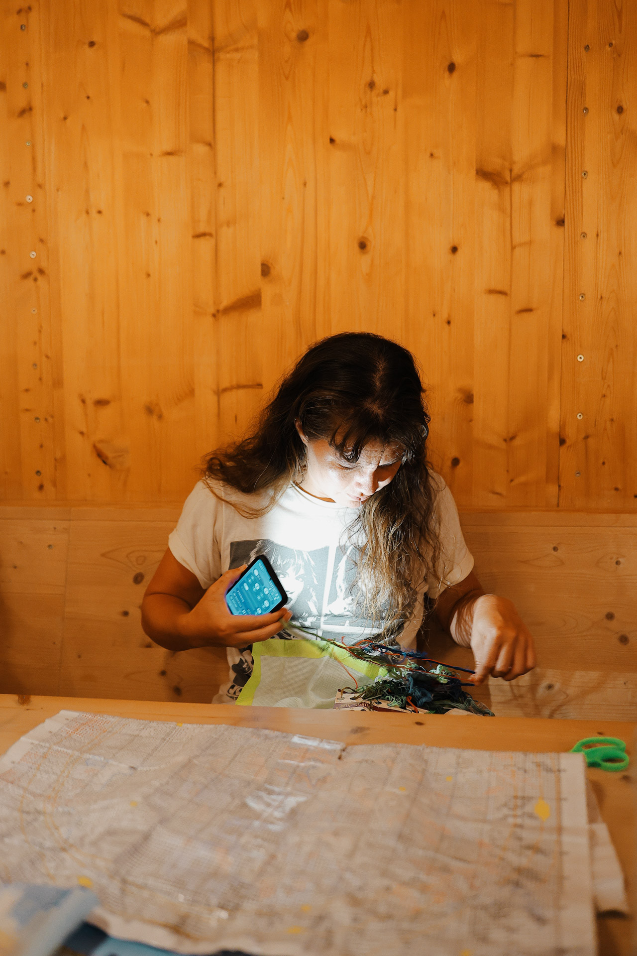 Most of us brought some sort of past time/hobby: Morgan brought her embroidery kit!