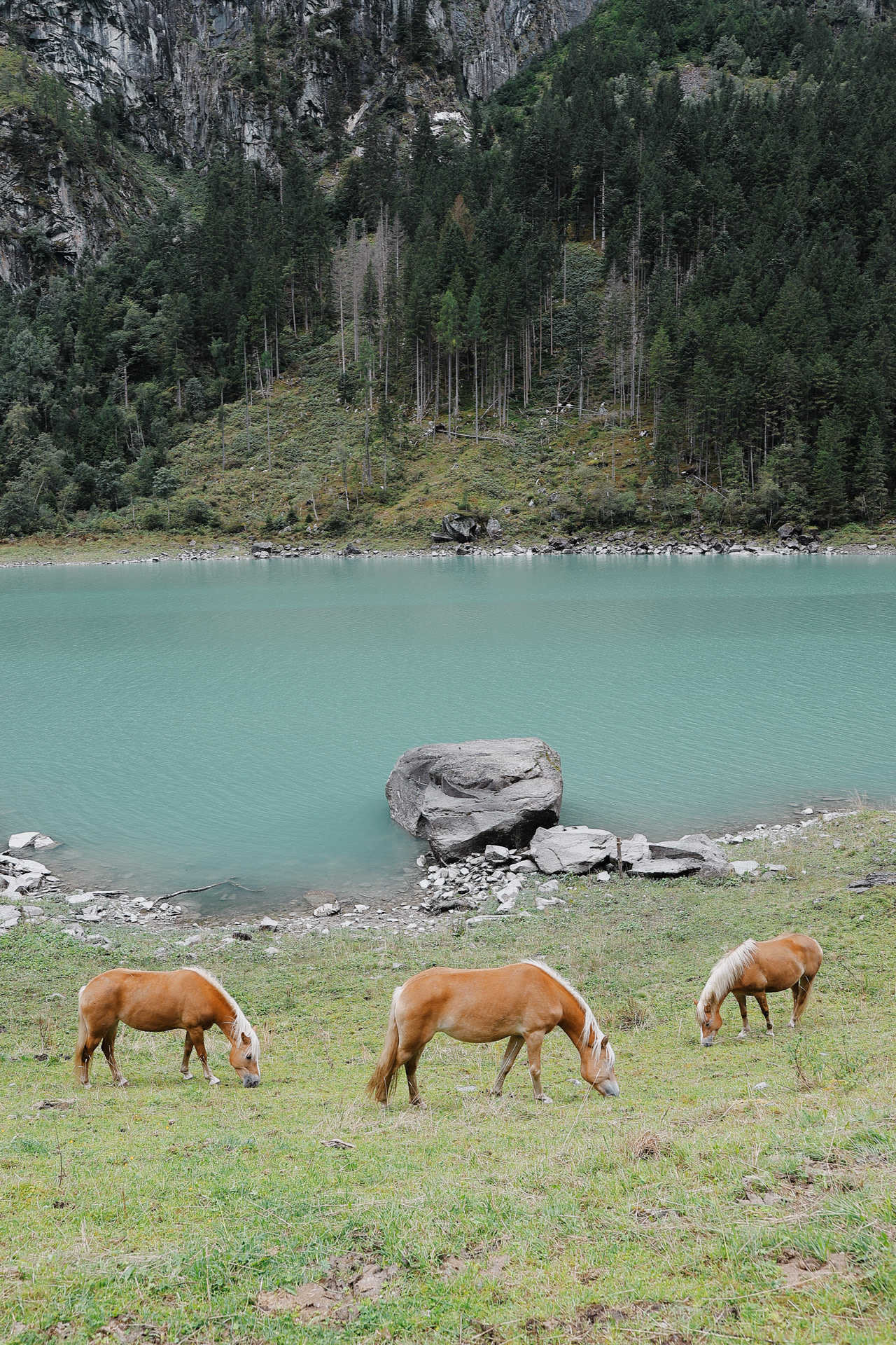 Horses by the lake! Our first regular-sized equestrian friends.