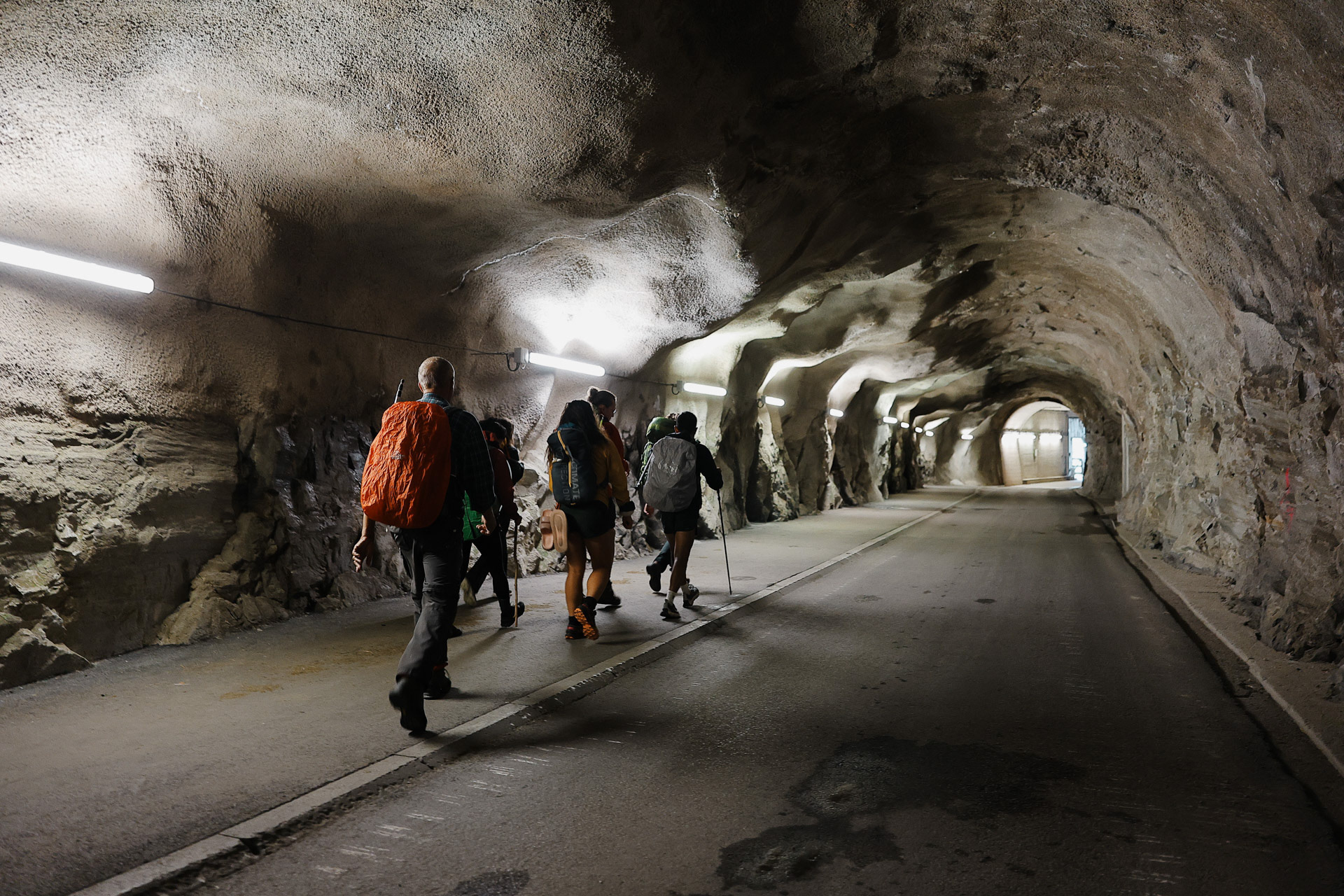 As you go down the valley, you go beside the road for cars. Here is a tunnel where there's only one lane. We weren't sure how they figure out who has the right of way before entering the tunnel. Signal lights perhaps? Or do they just have to reverse if there's 2 opposing drivers in the tunnel?
