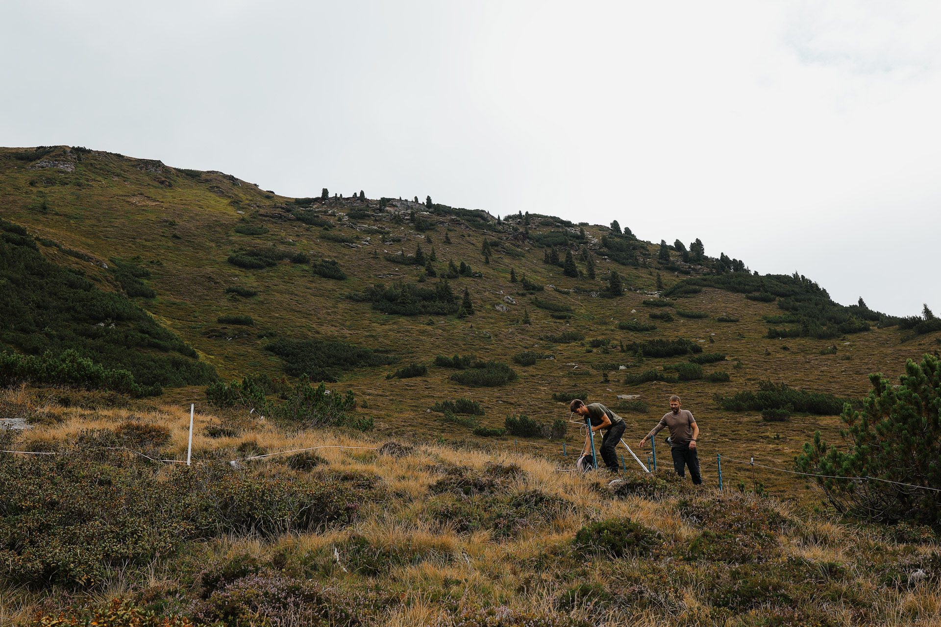 Farmers repairing their fence.