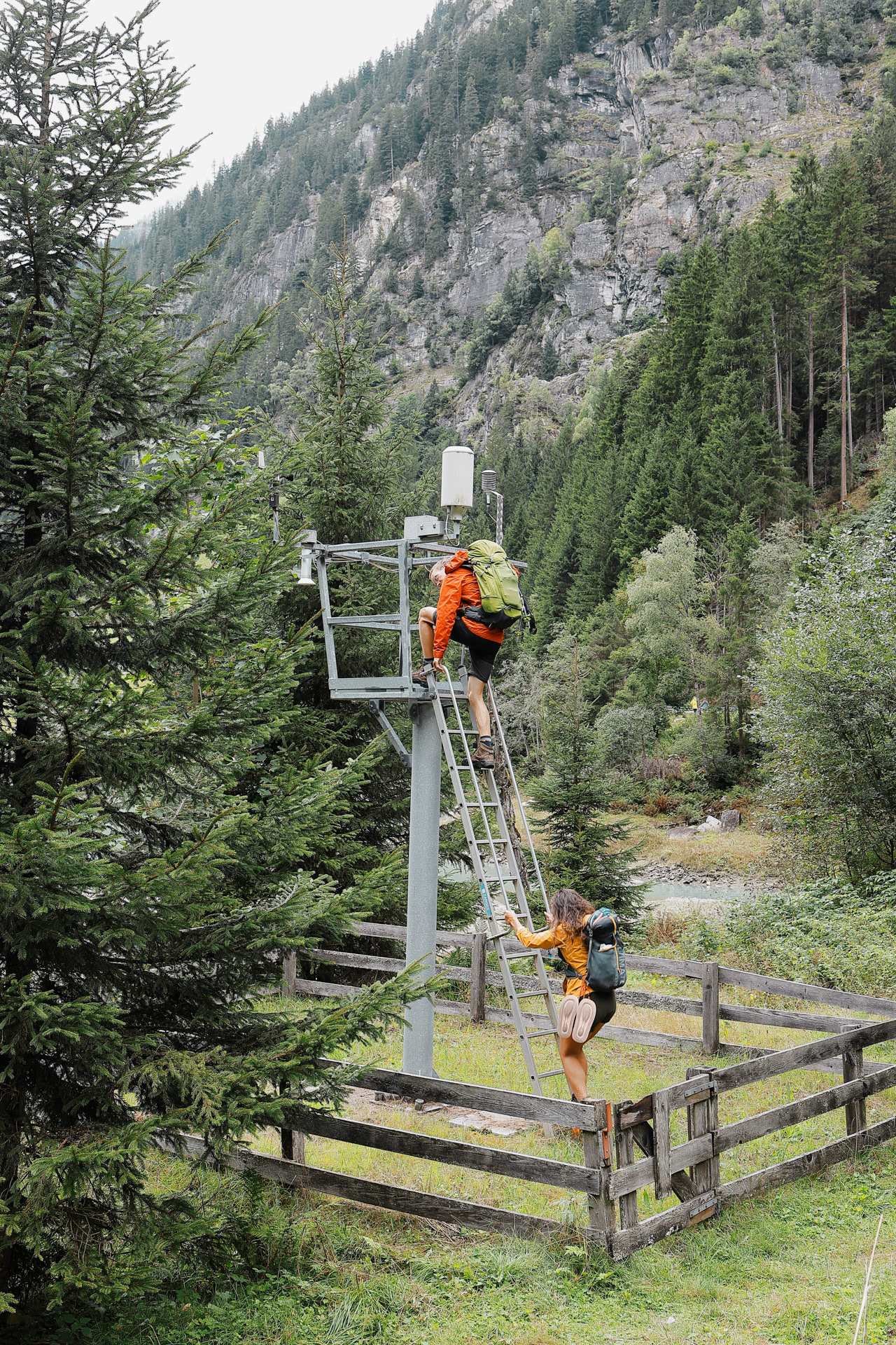 Malte and Morgan found a tower to climb by the lake, of course they're going up.