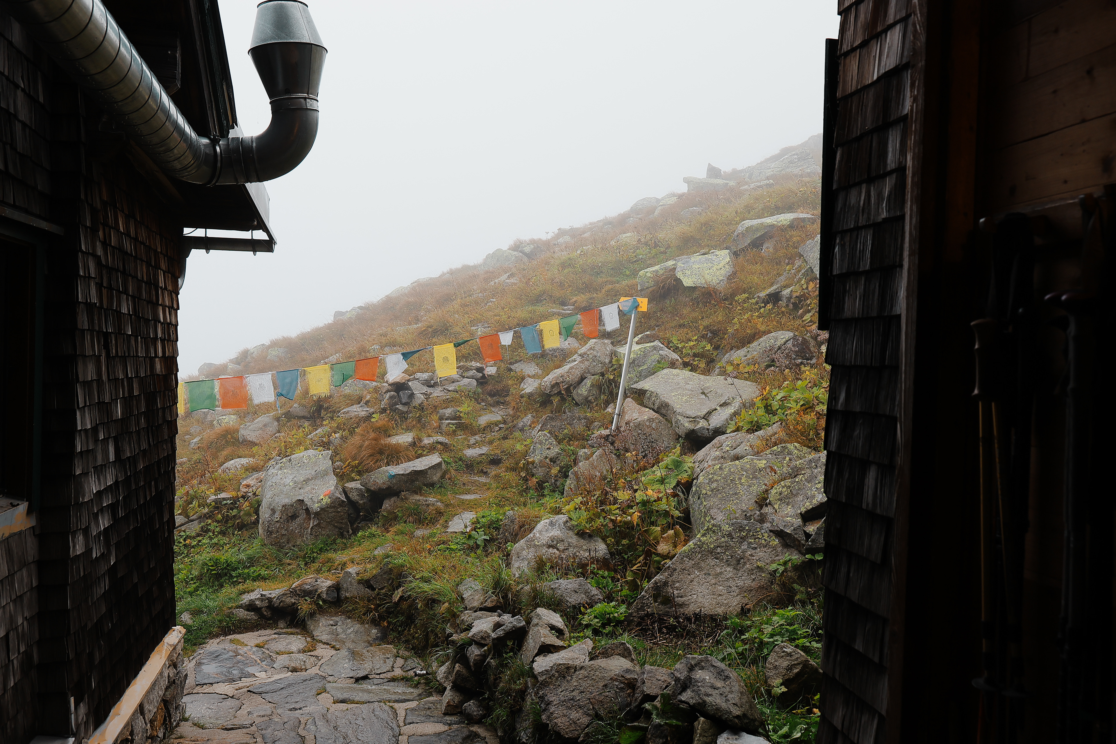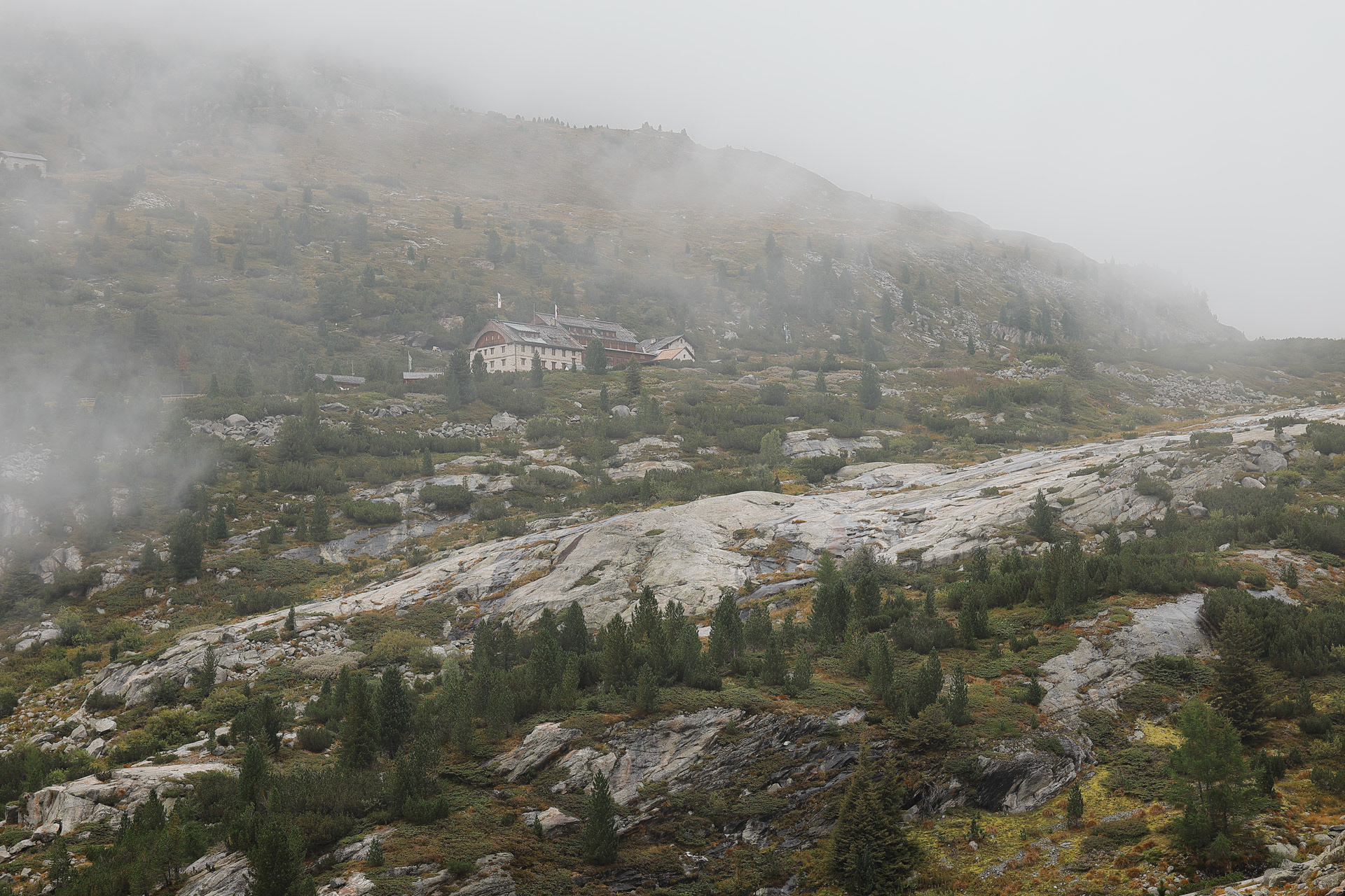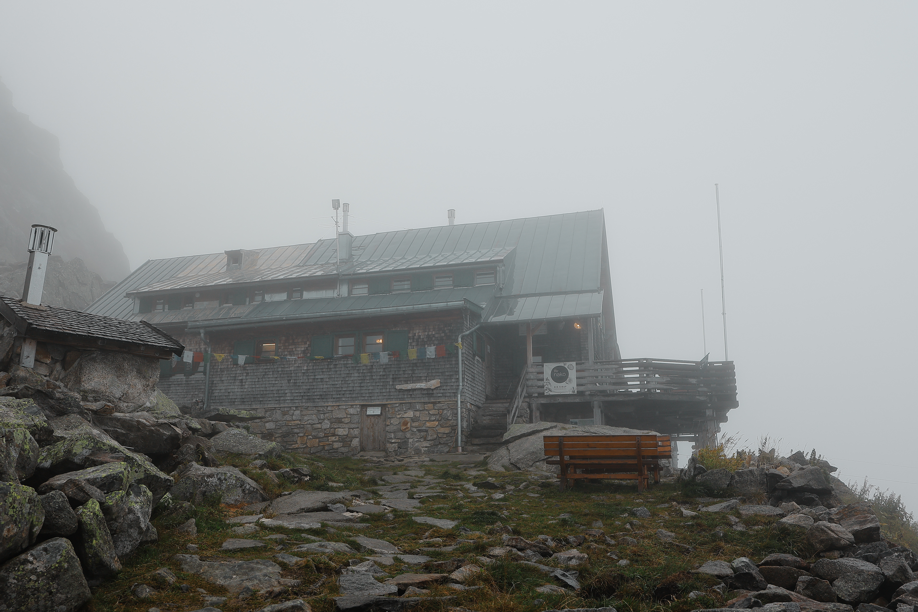 The Kasseler Hutte in morning mist.