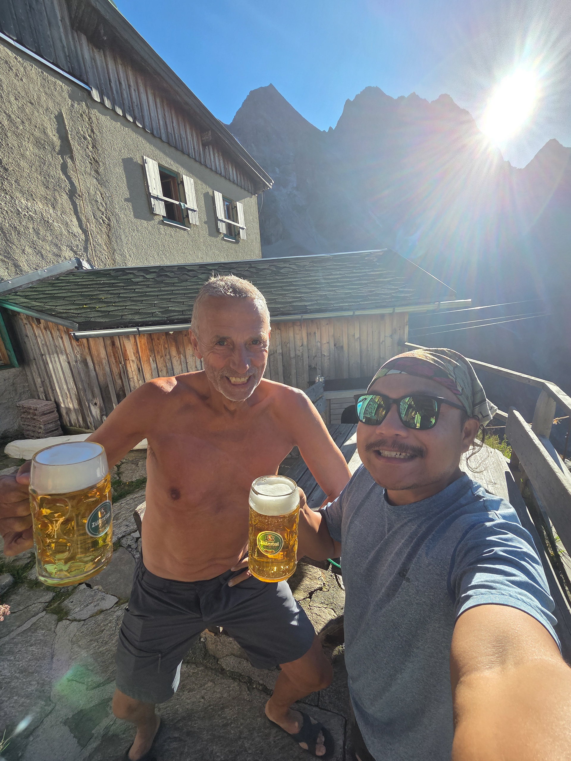Gamshütte! Made it to our first hut! Gamshütte is named after Gams or Chamois, a type of mountain goat found in the region. Ironically, it is one animal we did not see on the whole trek! Also from here on out, cellphone signal was pretty sparse. We were pretty off the grid until we returned to Mayrhofen.