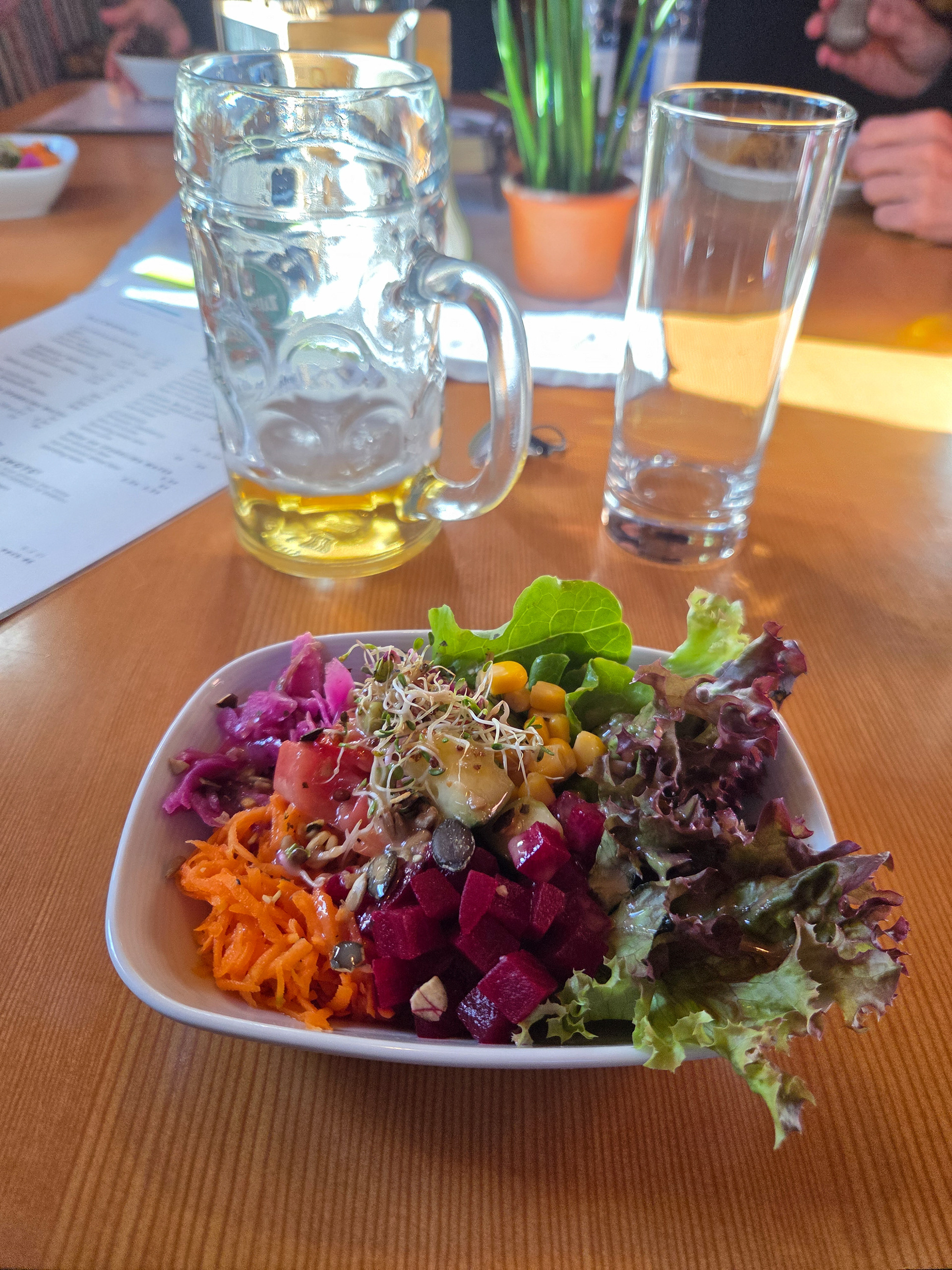 For the one night we are in town, we stayed at this hotel that's more of a farm house (a very nice farmhouse) at the edge of town. It's called Stoanerhof and they really do farming and they also have a restaurant that you reach by walking 200 meters through an open grass field.