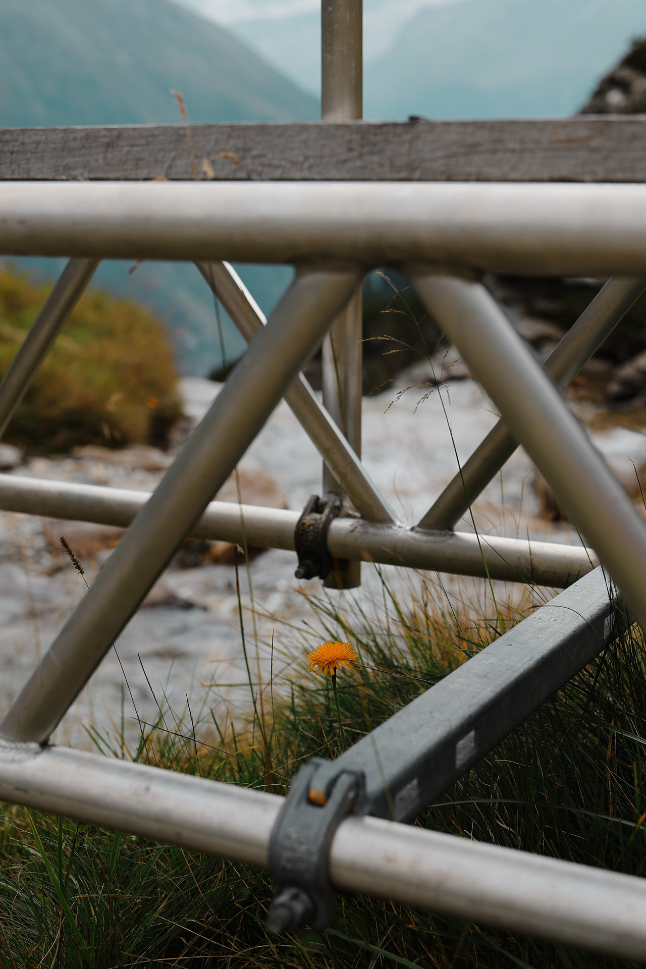 A flower under a bridge.
