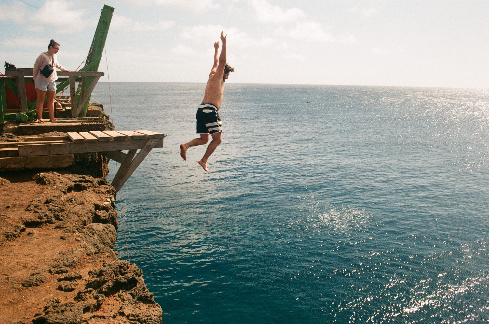 Nick jumps off of South Point Cliff Dive as Allie watches. I went after after him and it took me a couple minutes of hesitation before taking the plunge. Allie took 3 secs.