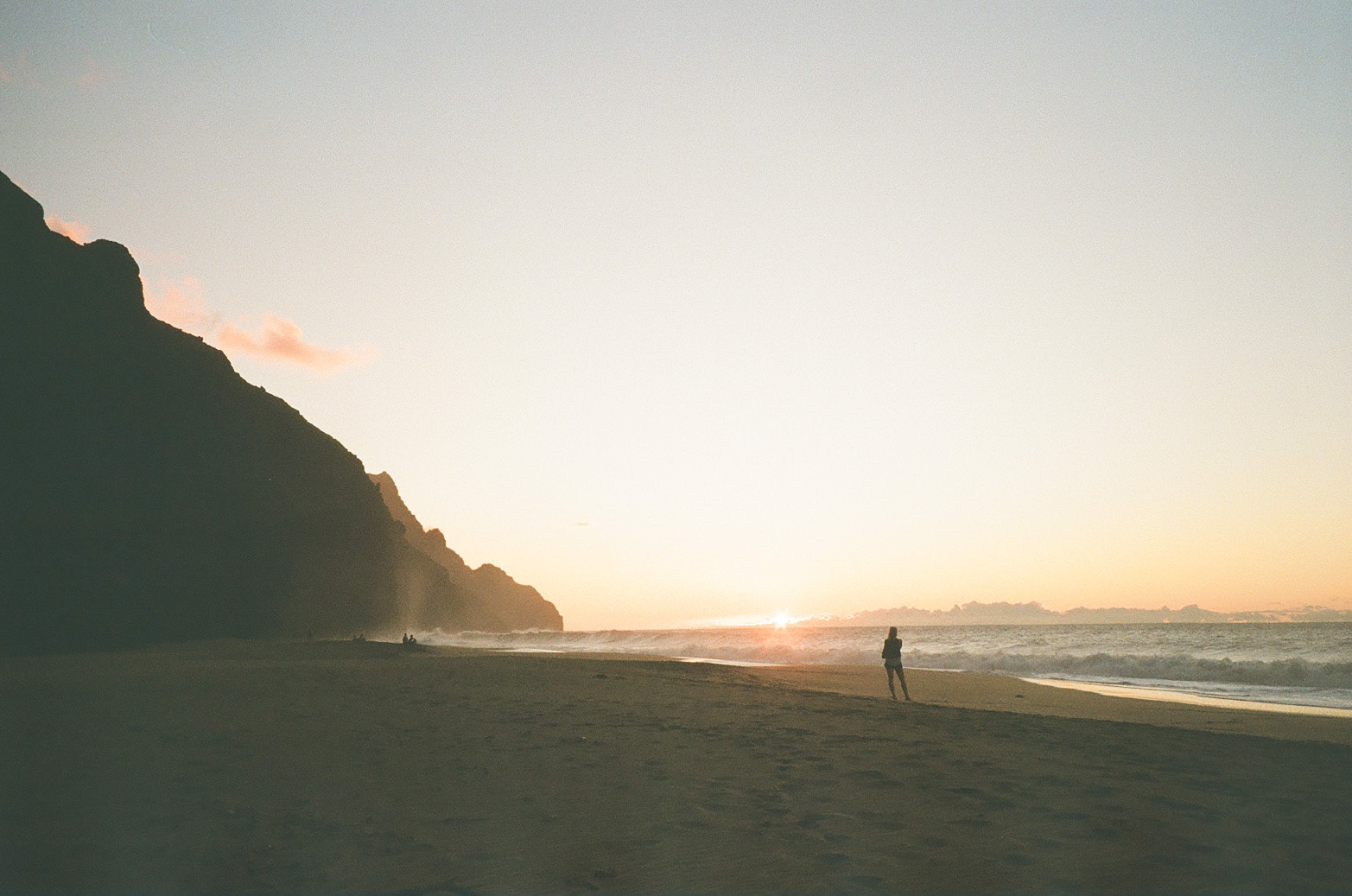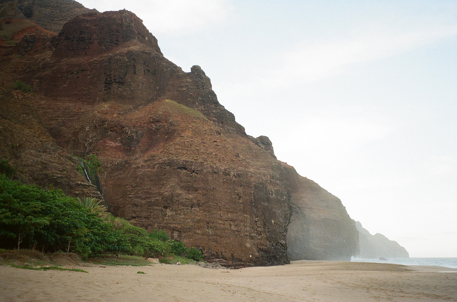 From Kalalau Beach, facing west. You can see the camp waterfall on the left. If you walk down the beach there are some alcoves and caves you can walk into. At the time we went, the caves were not accessible due to the water being too high. It's still a nice walk along the cliffs though!