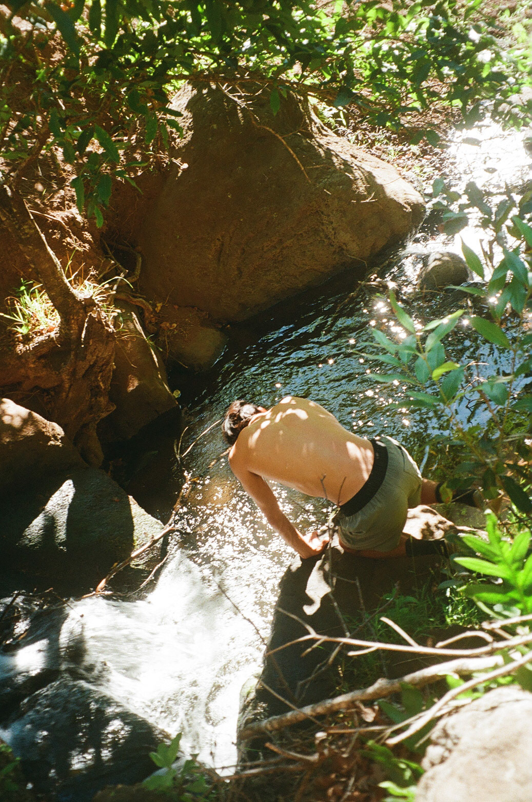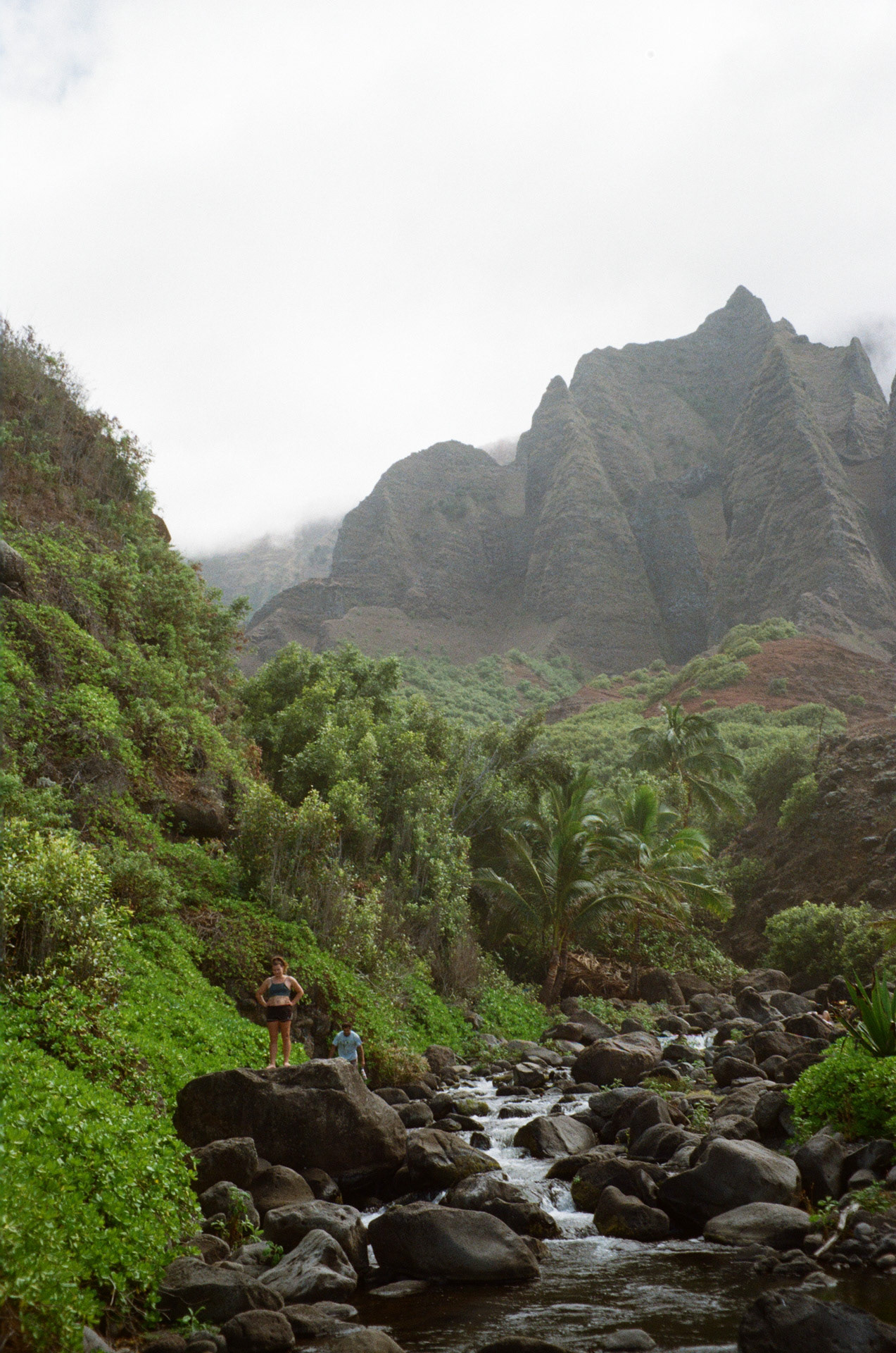 Exploring the freshwater ponds/pools on the Kalalau stream. Right behind me is where the stream feeds into the ocean. We saw lots of crabs.