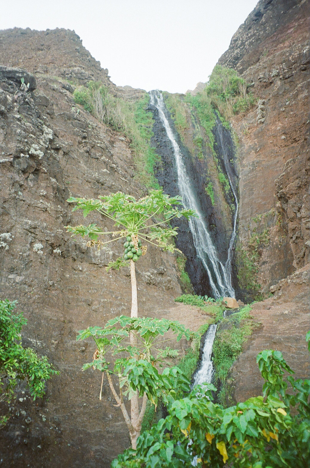 This is the waterfall at the end of the campsite and is the only source of running freshwater unless you go back to the Kalalau Stream 20 minutes back. This is used for drinking water, showering, washing clothes, and washing dishes. If you're lucky, there might be some ripe papayas.