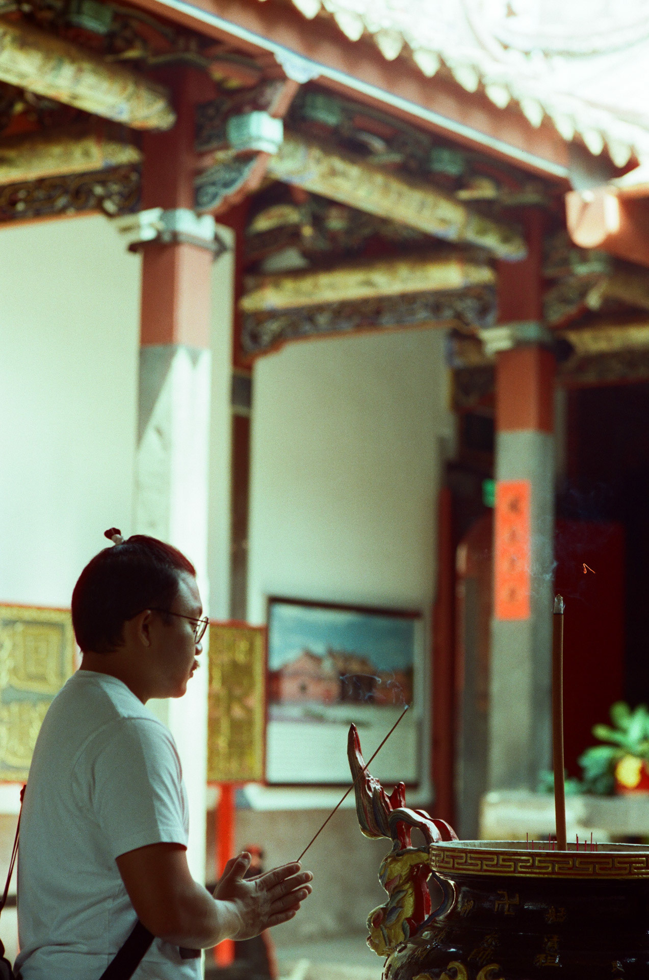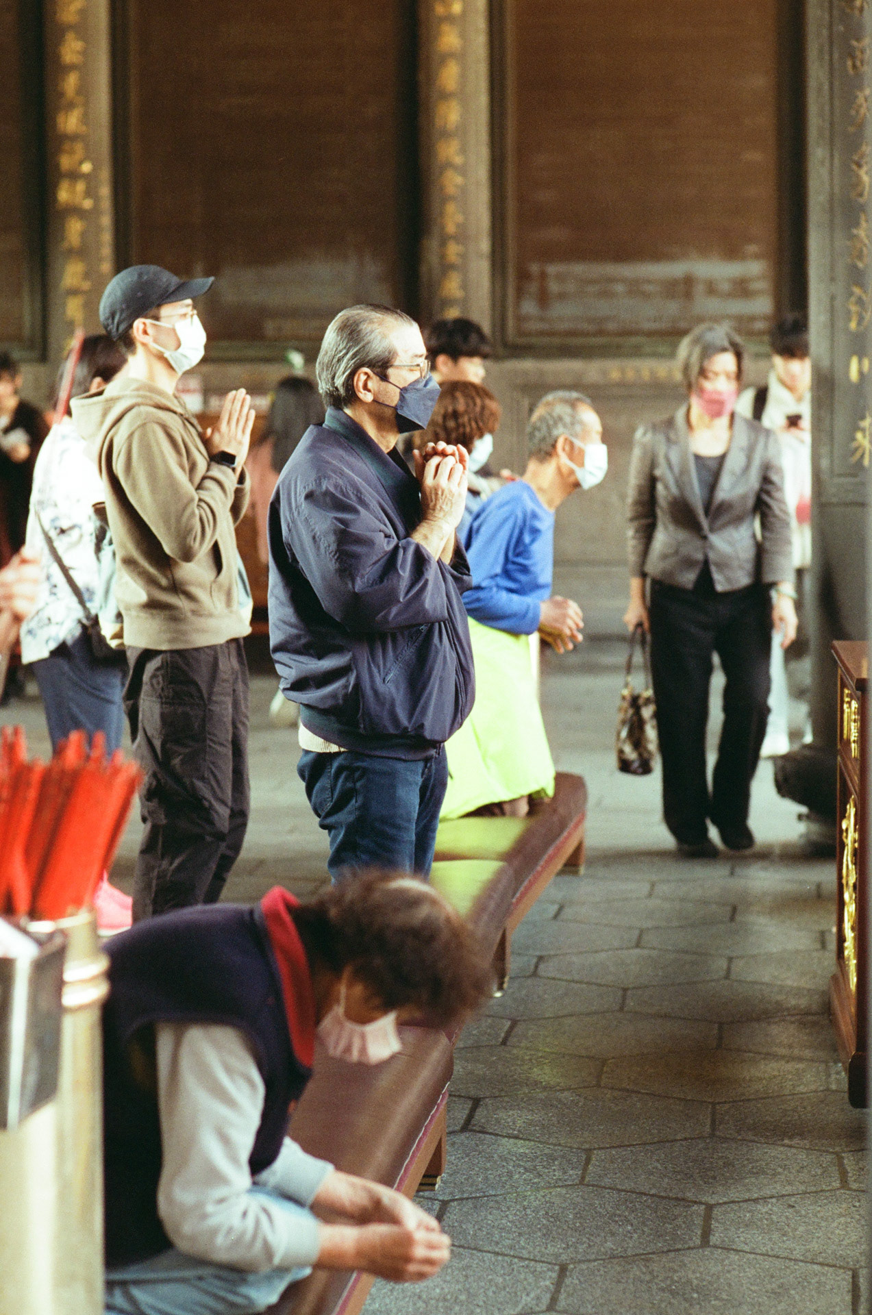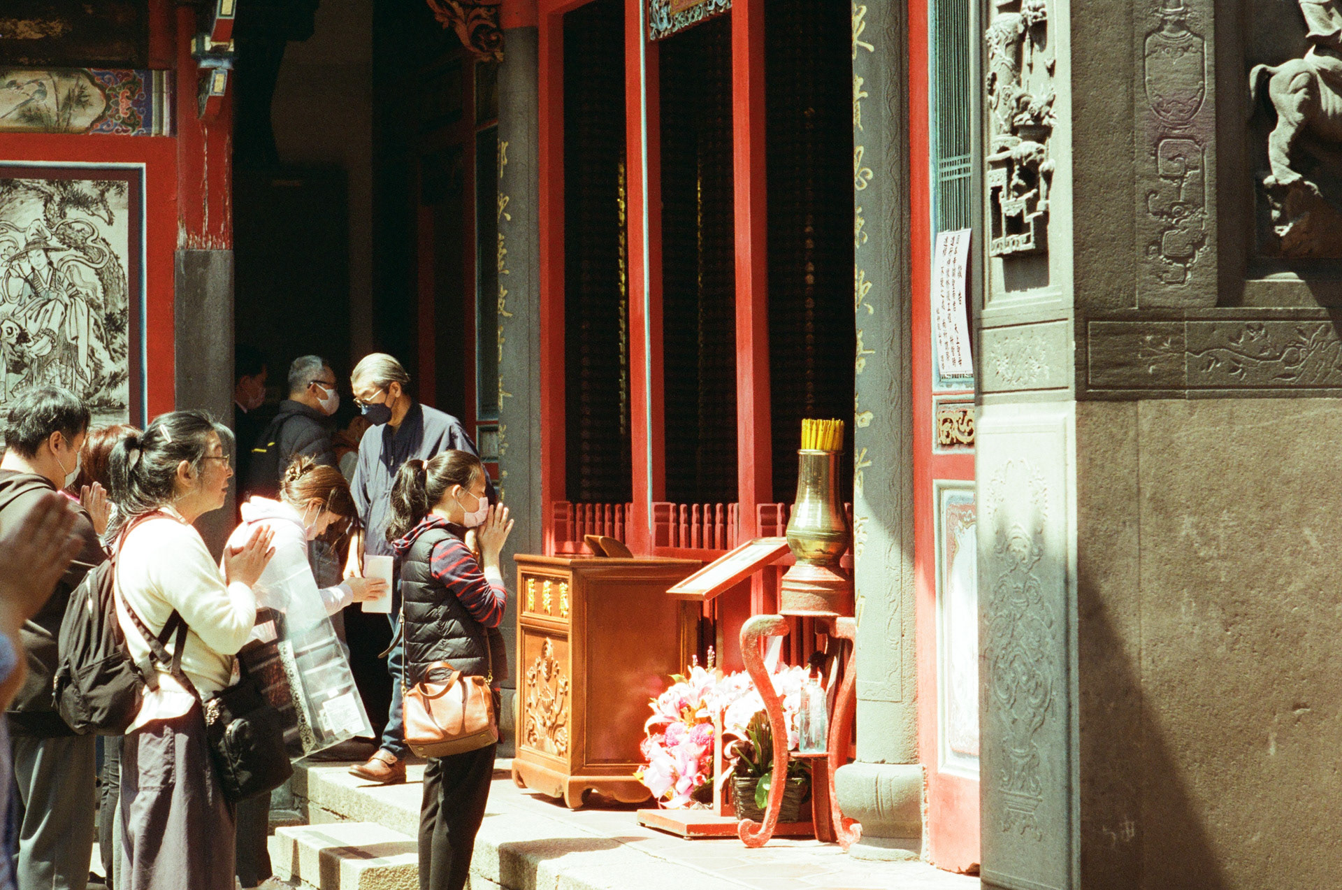 Woman praying in front of Qingshui Temple (艋舺清水巖).