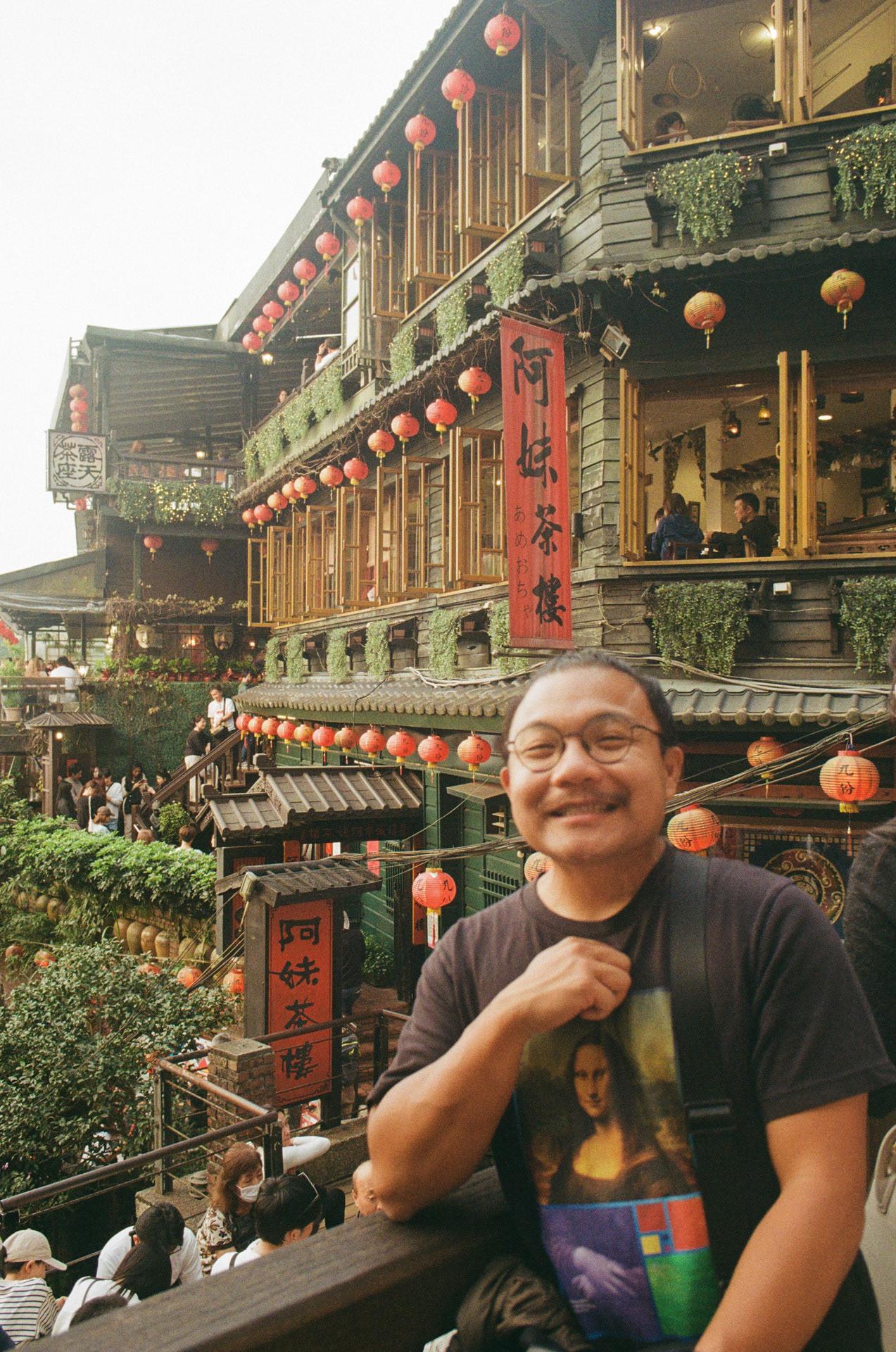 A pic of me in front of A-Mei teahouse taken by Yi-Hsuan.