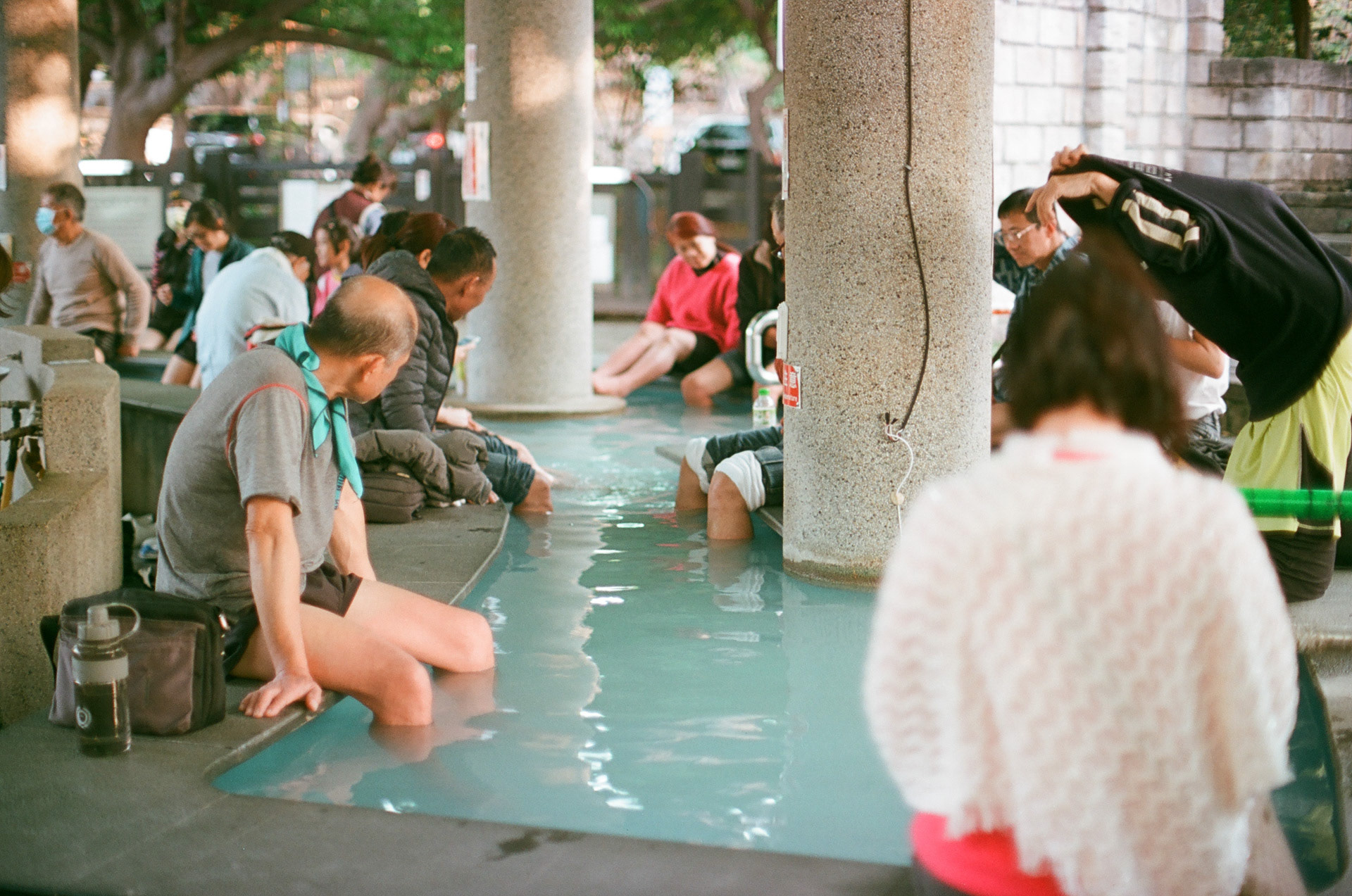 Just down the road from the sulfur hots springs are community pools where the public can come and put their feet in (no full body baths) pools heated by the natural springs. We saw people of many ages but mostly elderly. You put place your shoes and belongings in small cubicles to the side, then they have a feet washing station to clean your feet/legs before you dip it into the communal water. One of the old uncles was singing nursery rhymes in different languages very passionately. I remember 'twinkle twinkle little star'.